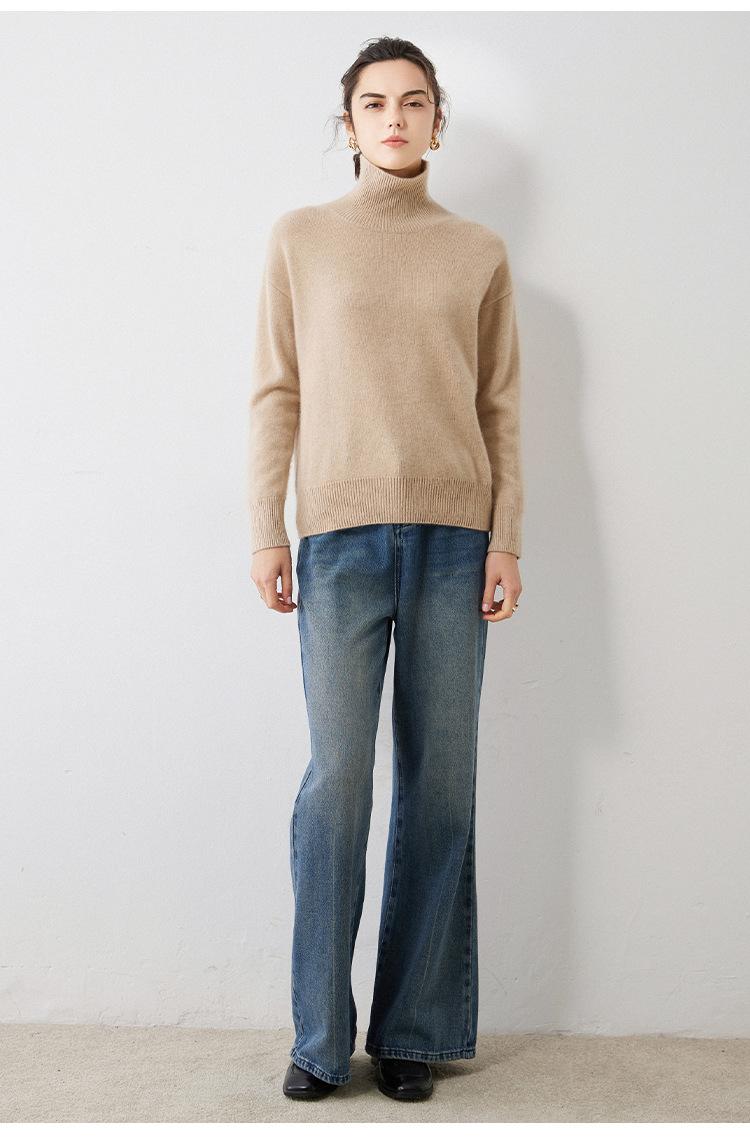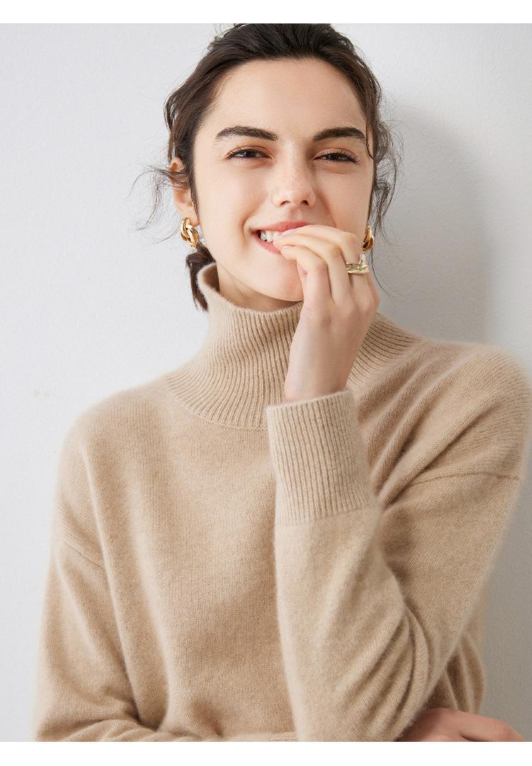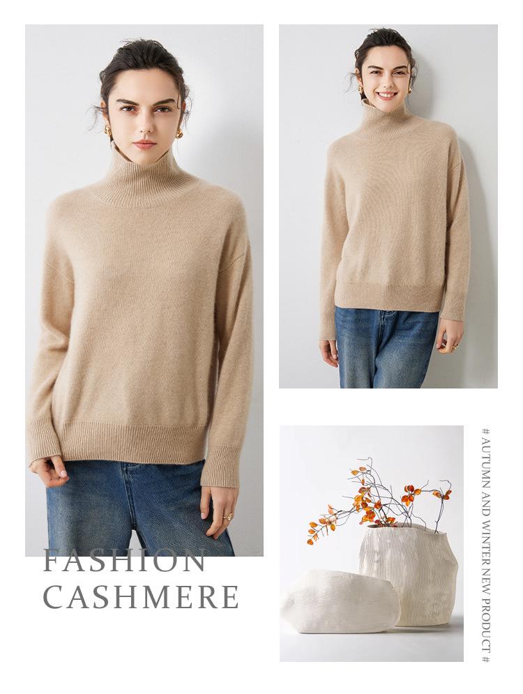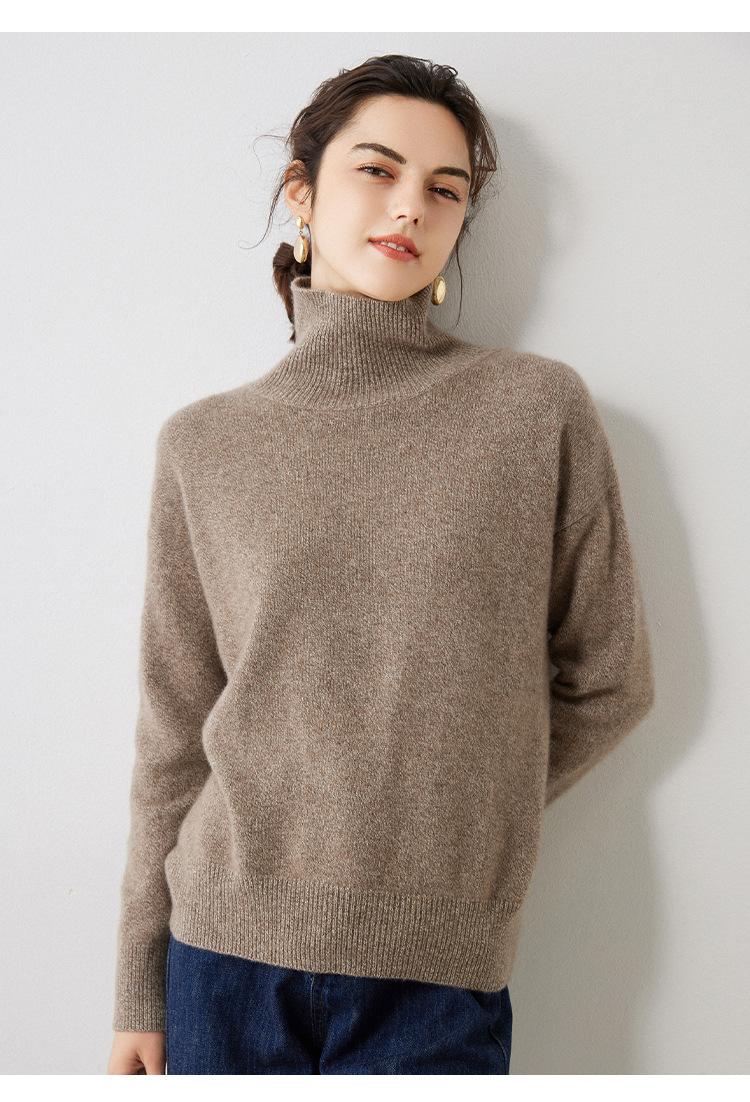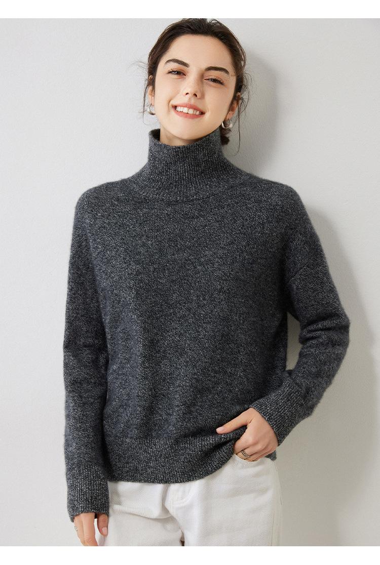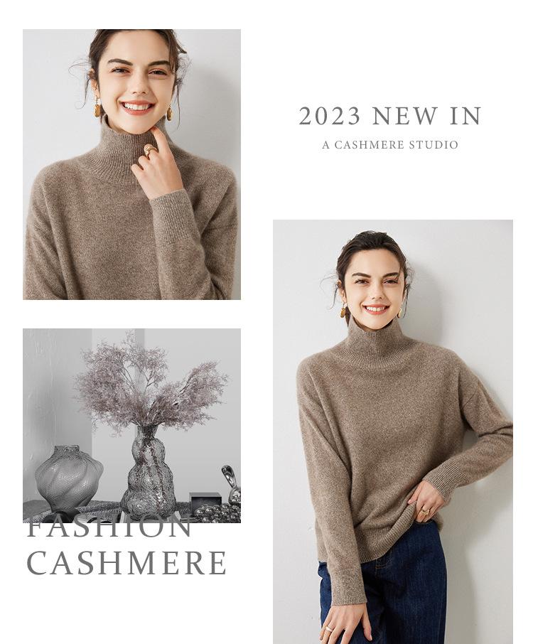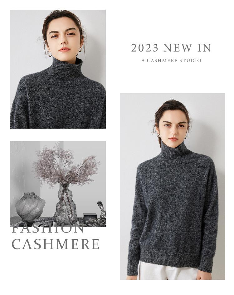 Outono e Inverno 2023 novo meia gola tartaruga cashmere suéter feminino manga comprida pullover caxemira solto camisa de malha de malha