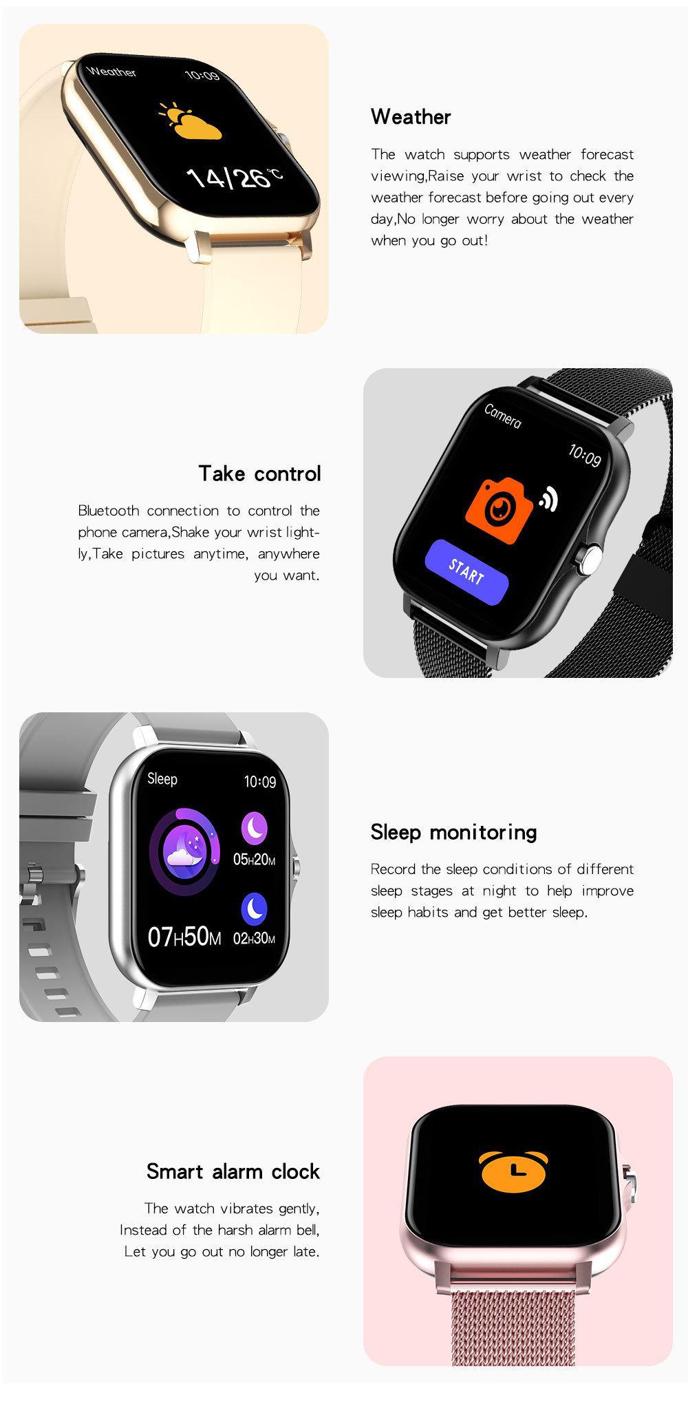 Waterproof, Step counting, Heart rate monitoring, Blood pressure measurement, Smart reminder, Remote control s...