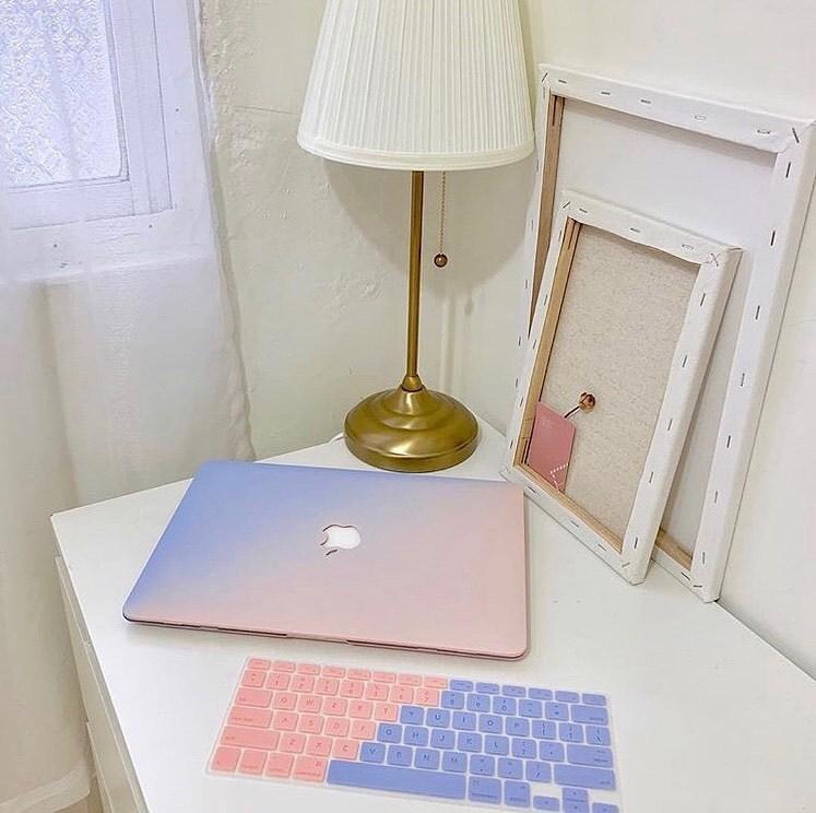 Rose powder + quiet blue gradient (hollow)