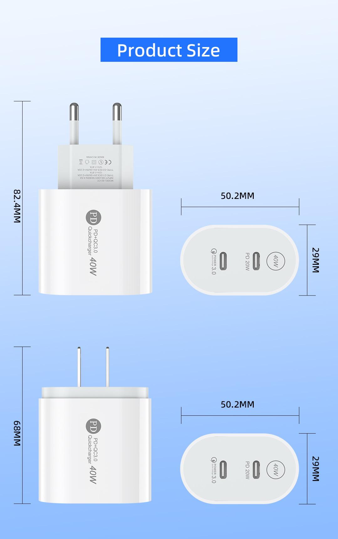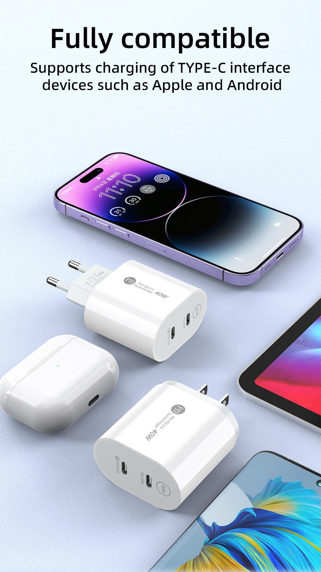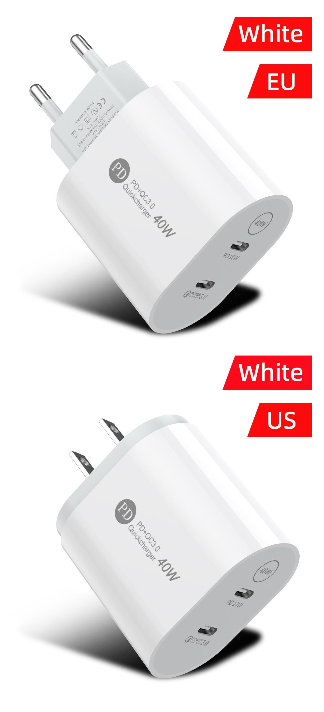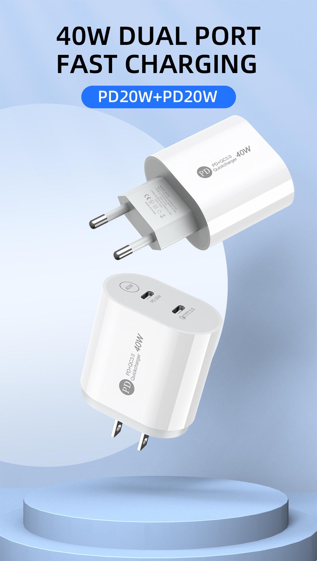 Regulamentos europeus e americanos duplo PD40W carregador rápido tipo-c carregador rápido duplo para Apple 13 12 telefone móvel duplo C