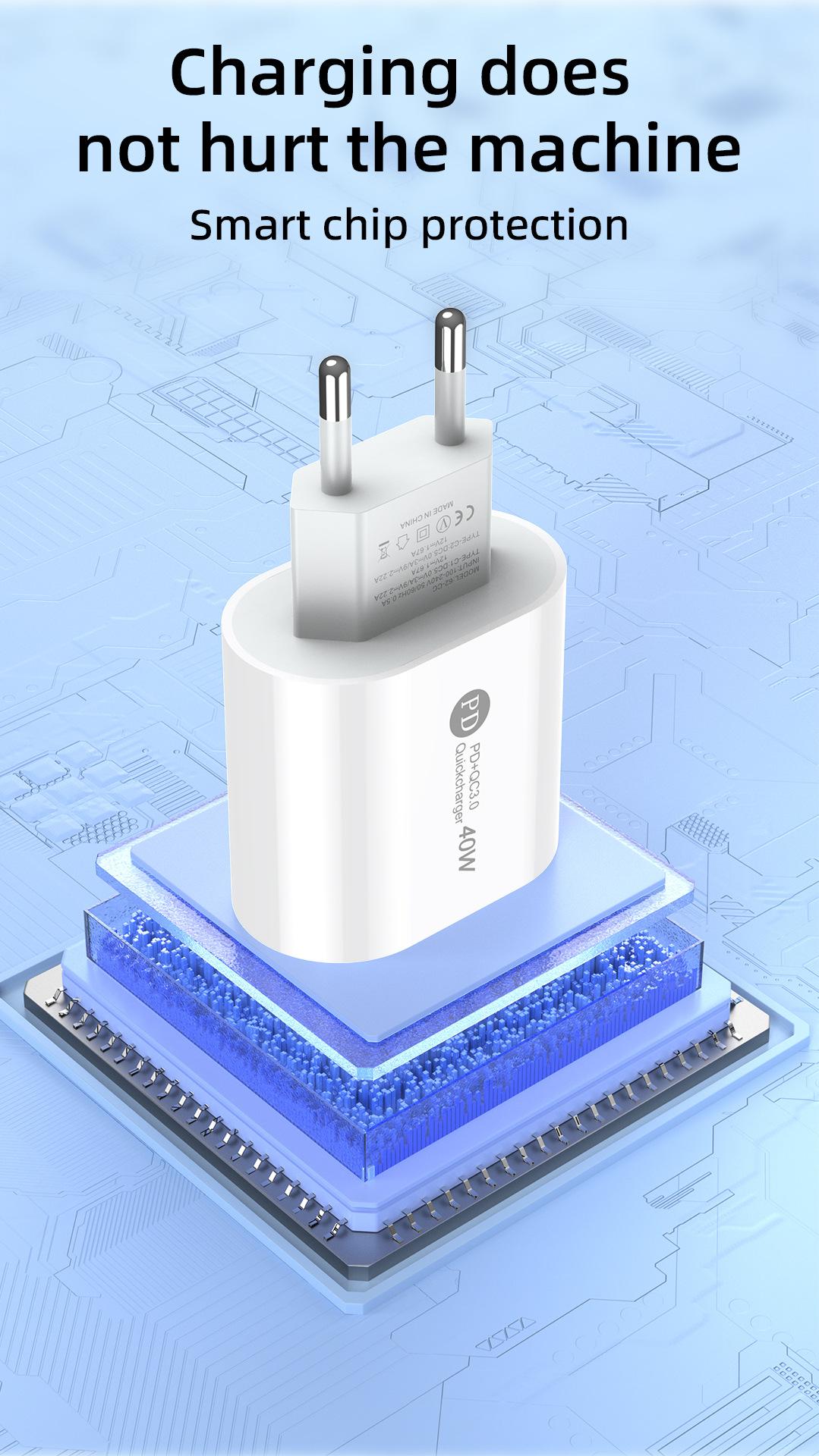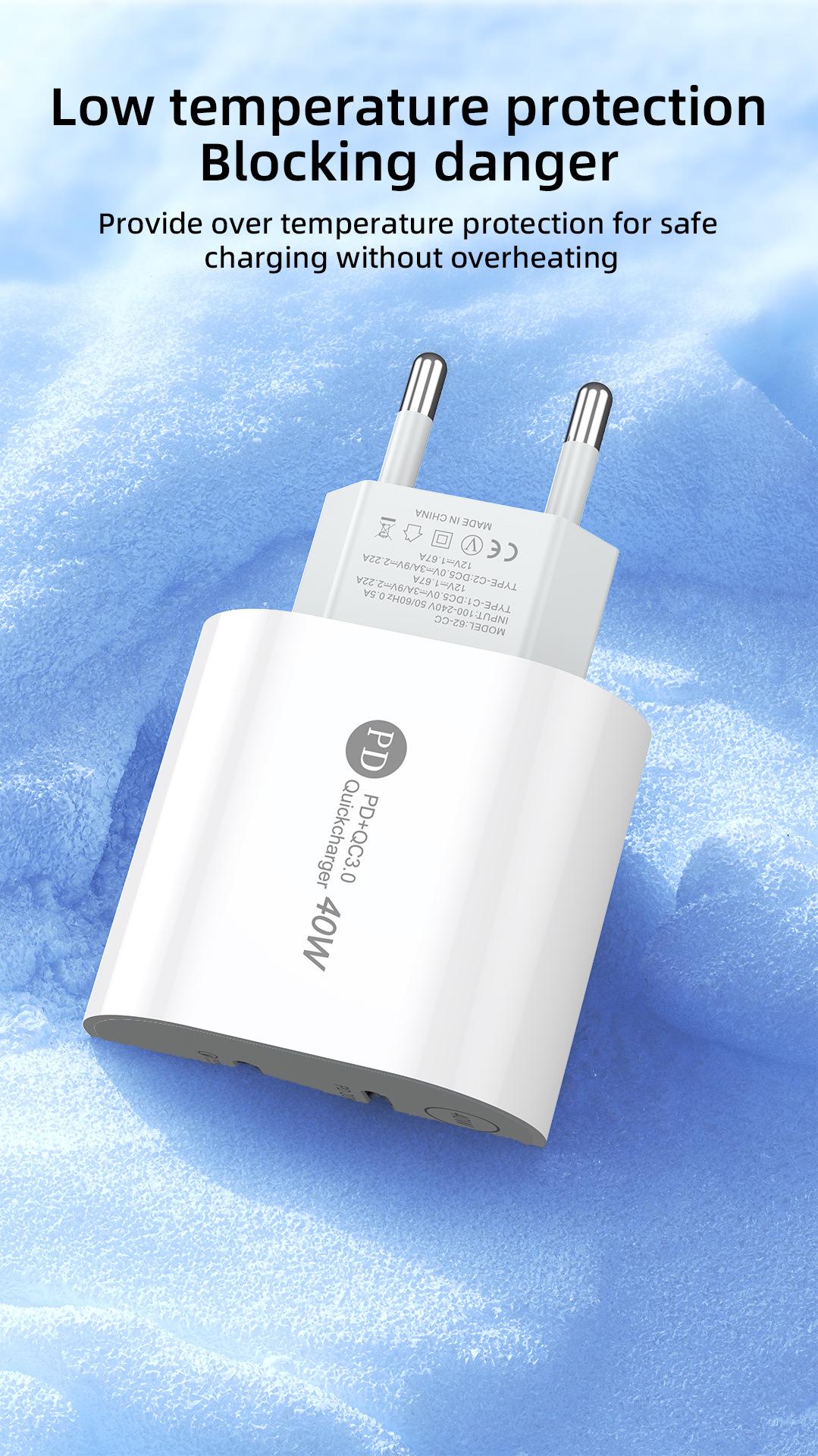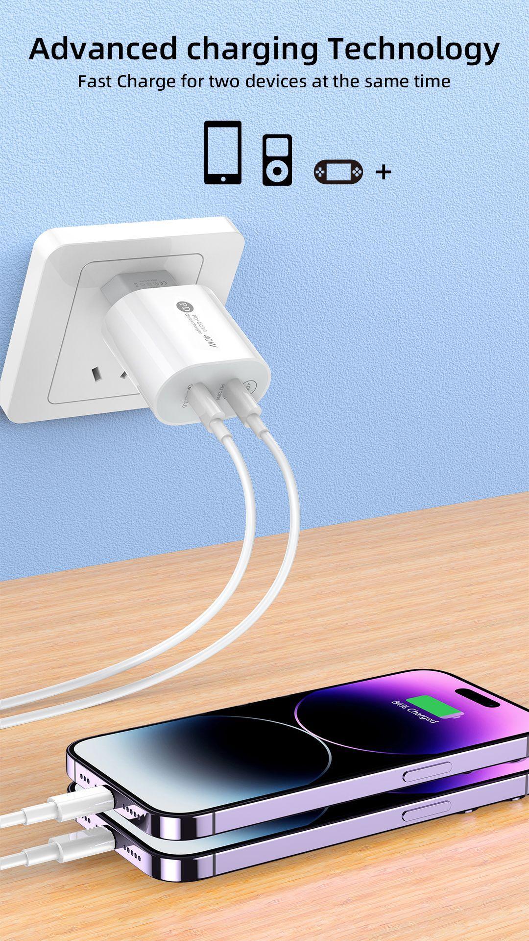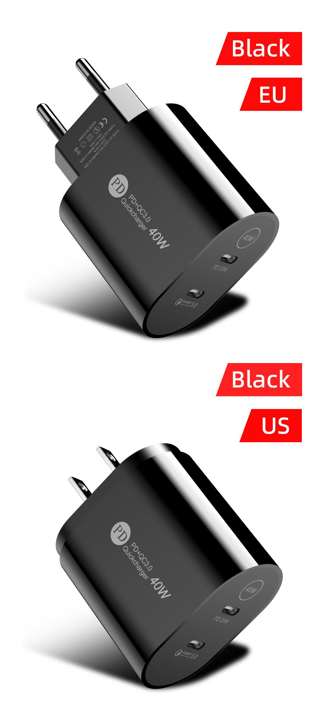Regulamentos europeus e americanos duplo PD40W carregador rápido tipo-c carregador rápido duplo para Apple 13 12 telefone móvel duplo C