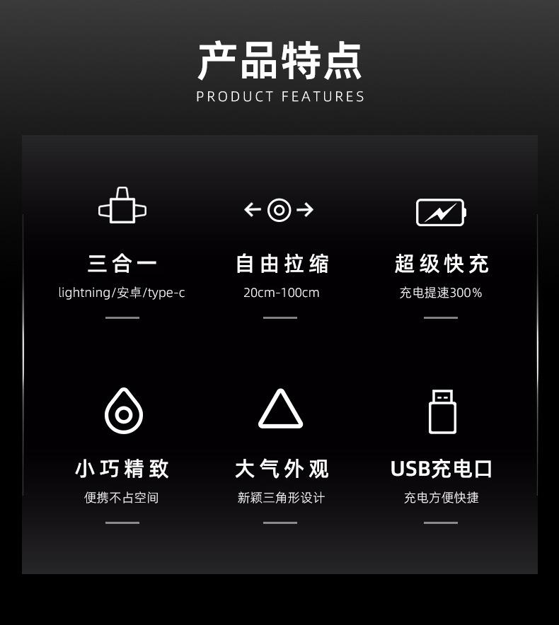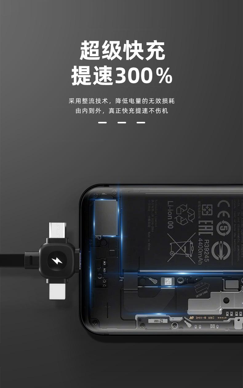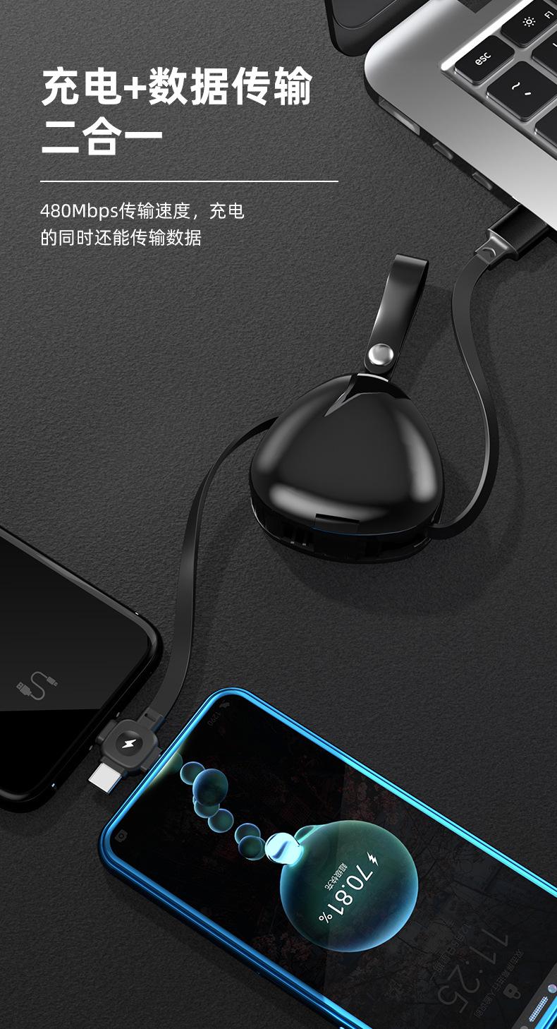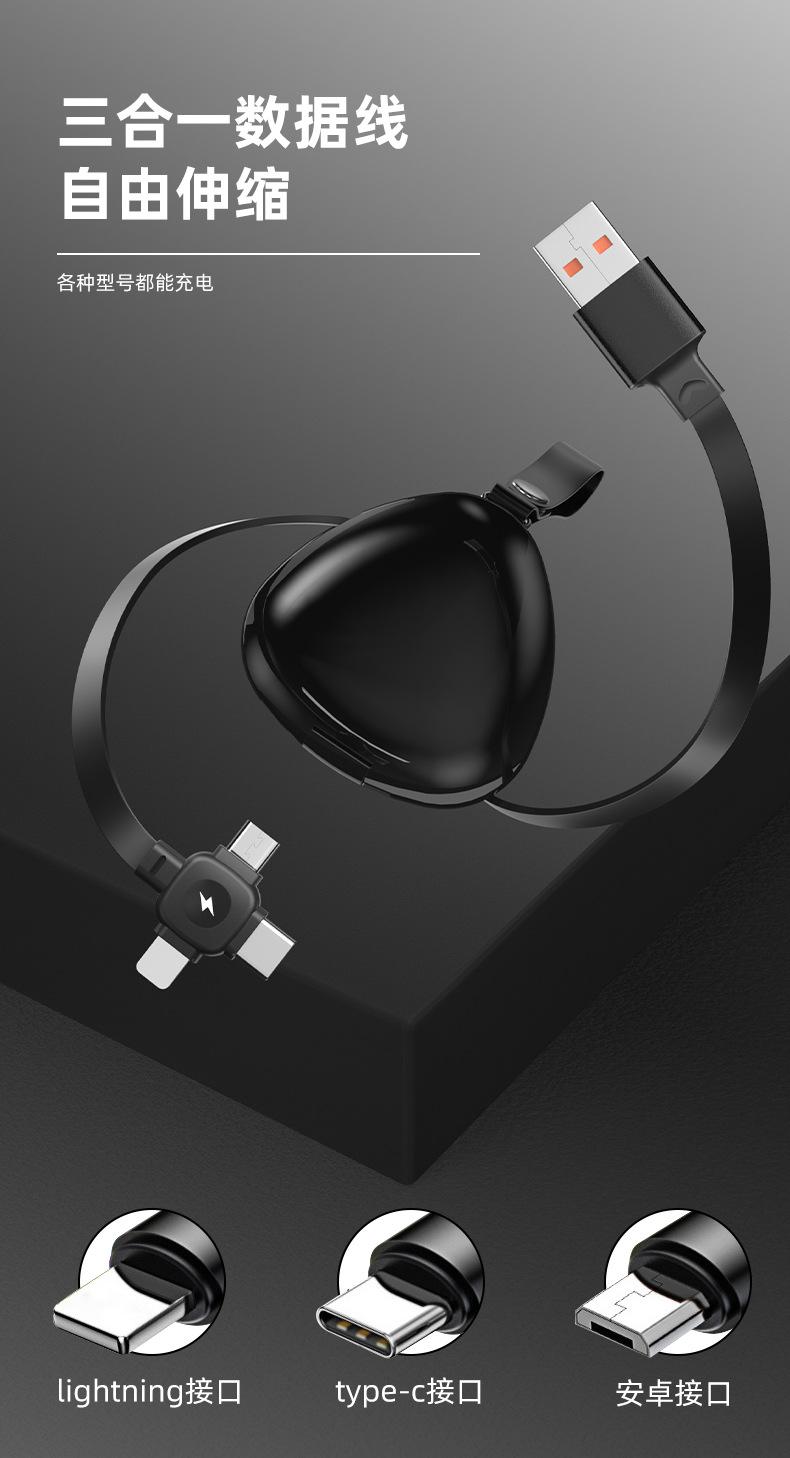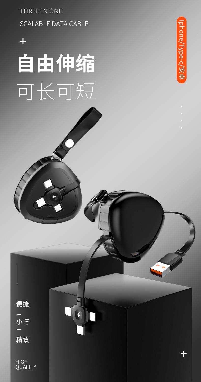 Triângulo de presente telescópico linha de carregamento três-em-um é adequado para Android Huawei Apple 6A linha de dados de carregamento rápido 120W