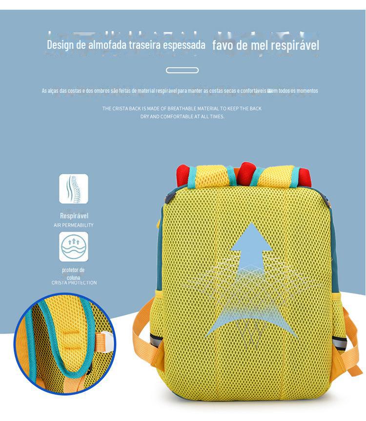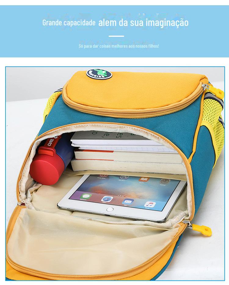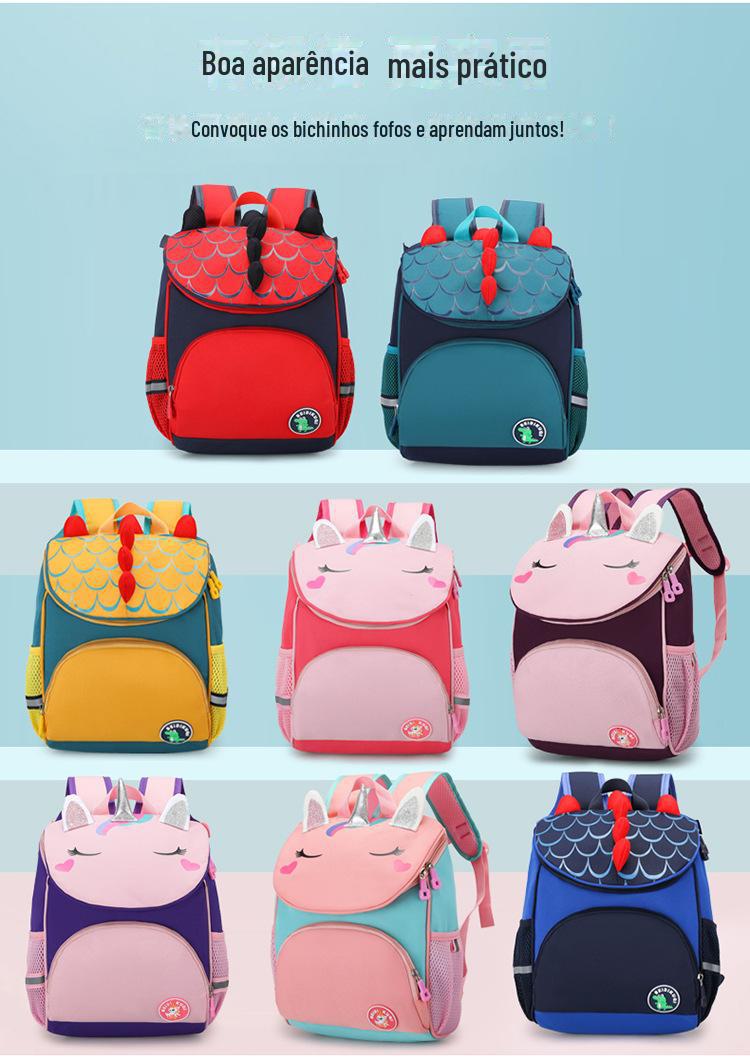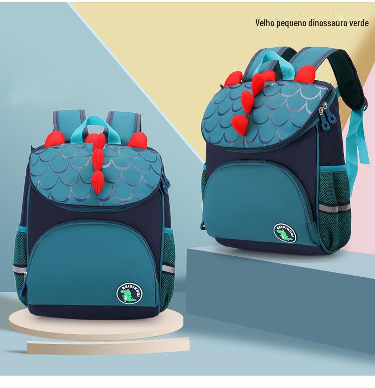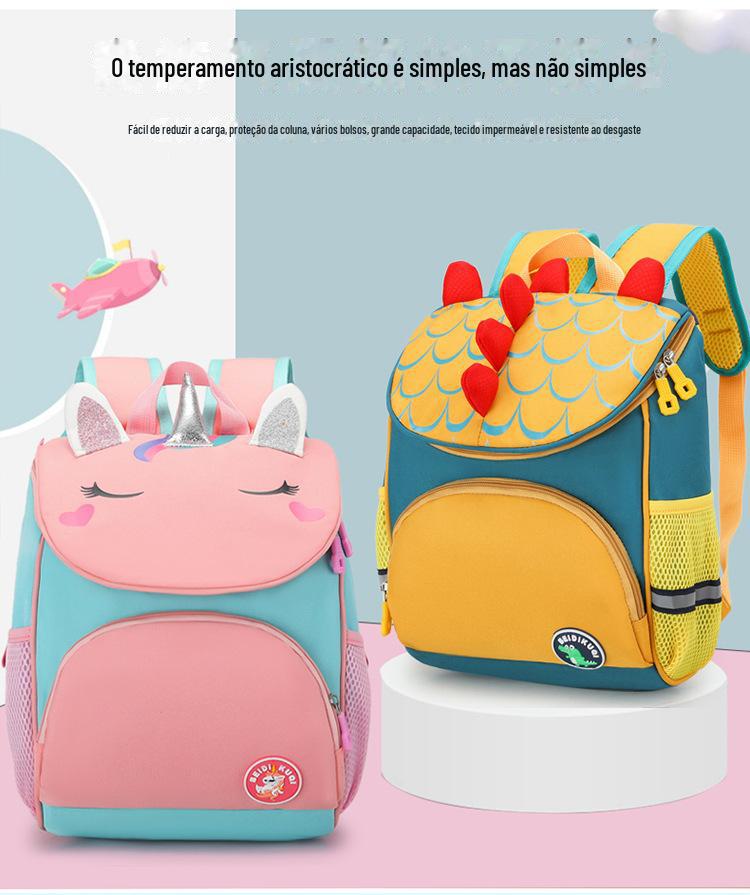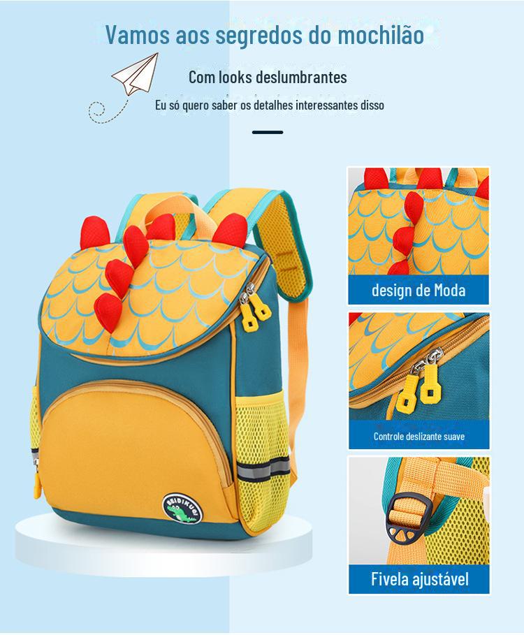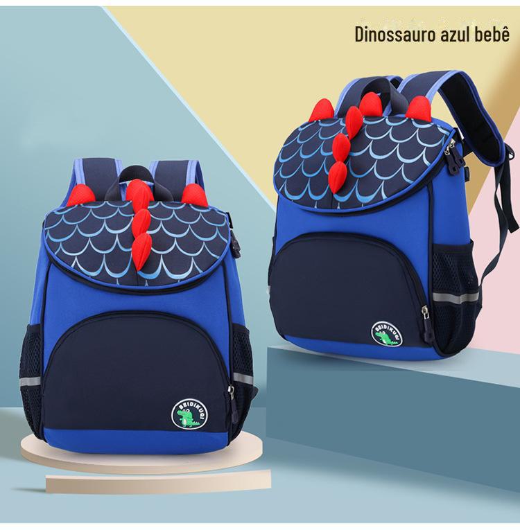 Mochila Escolar Nova Desenho Animado Dinossauro Mochila Infantil Jardim de Infância Alunos do Ensino Fundamental Meninos e Meninas Grande Capacidade Redução de Carga