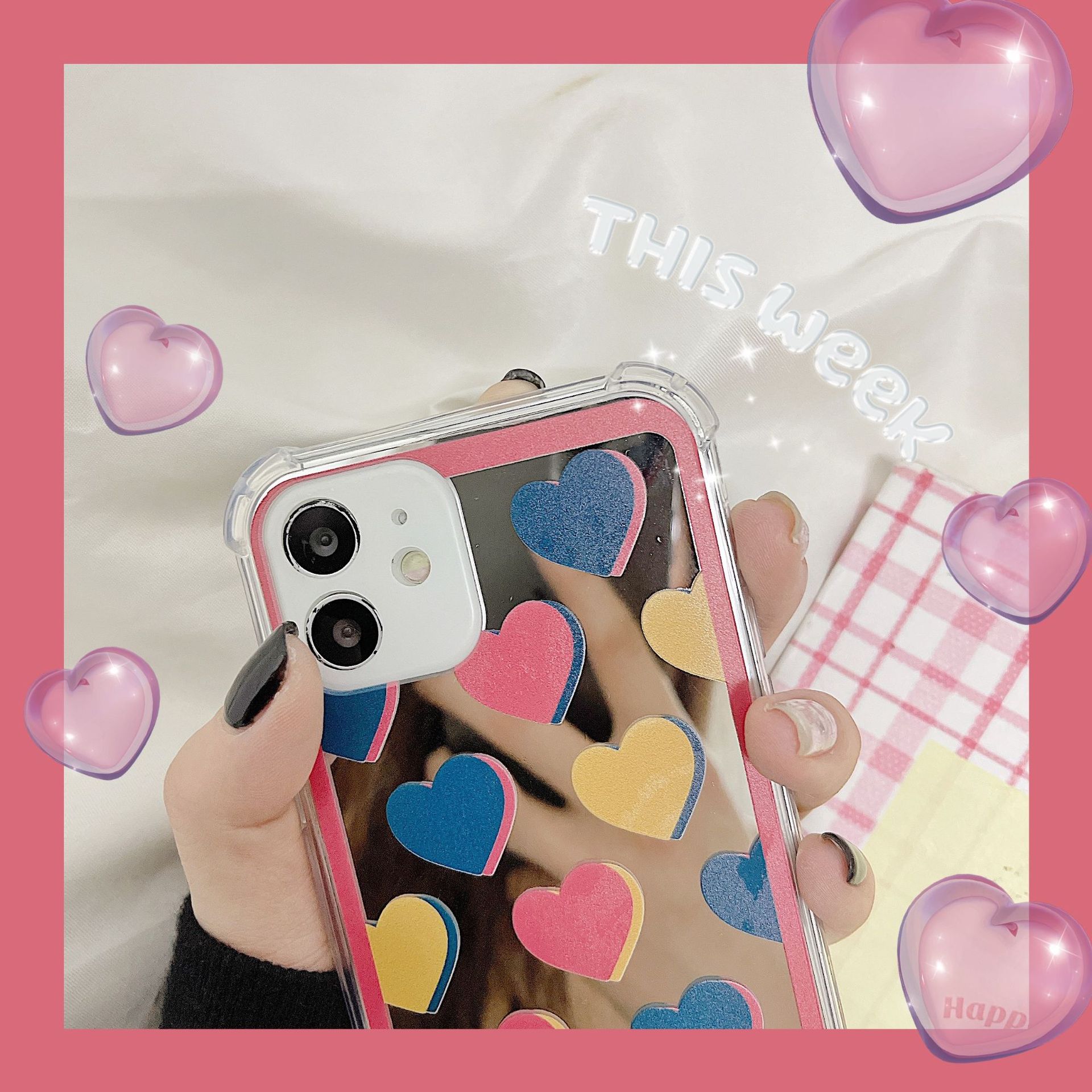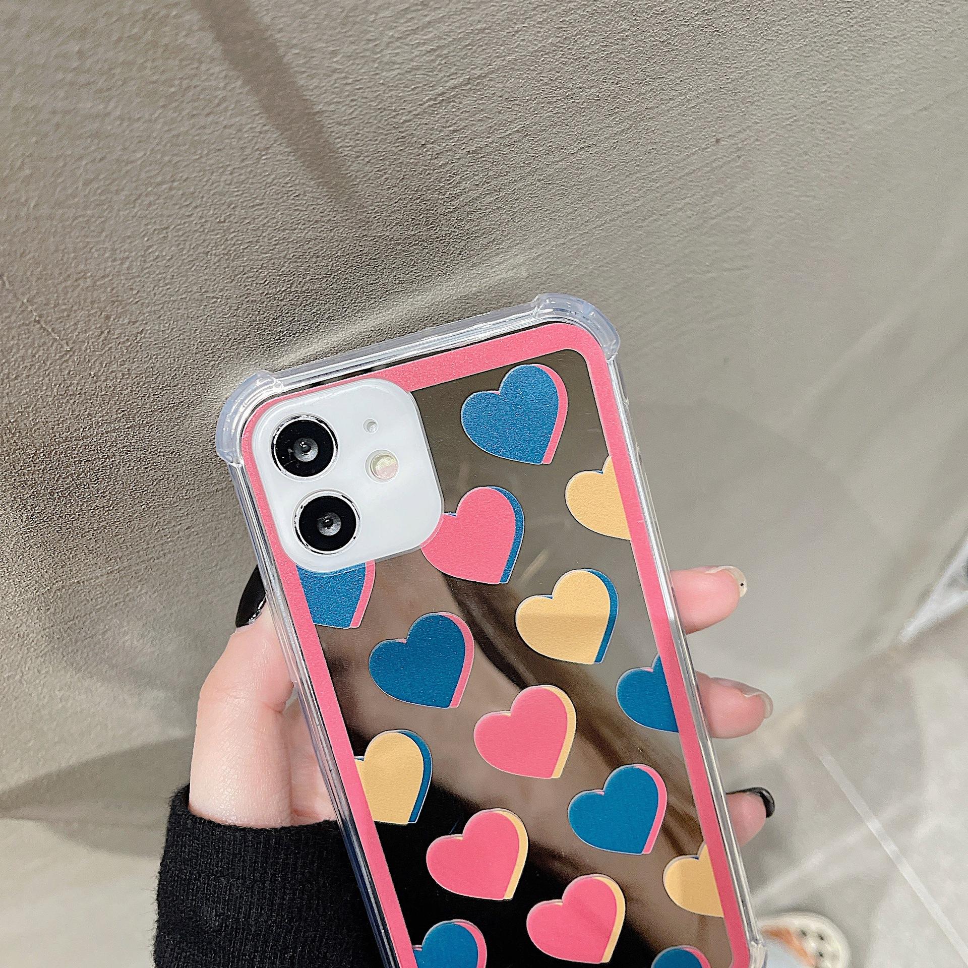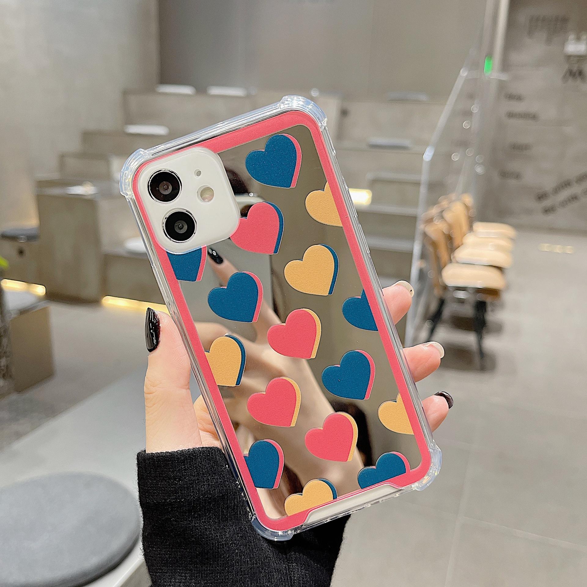 Adequado para 15 Capa de Celular Apple 14Promax Coração Iphone16 Espelho Estilo Ins 12 Huawei P60 Glory 90