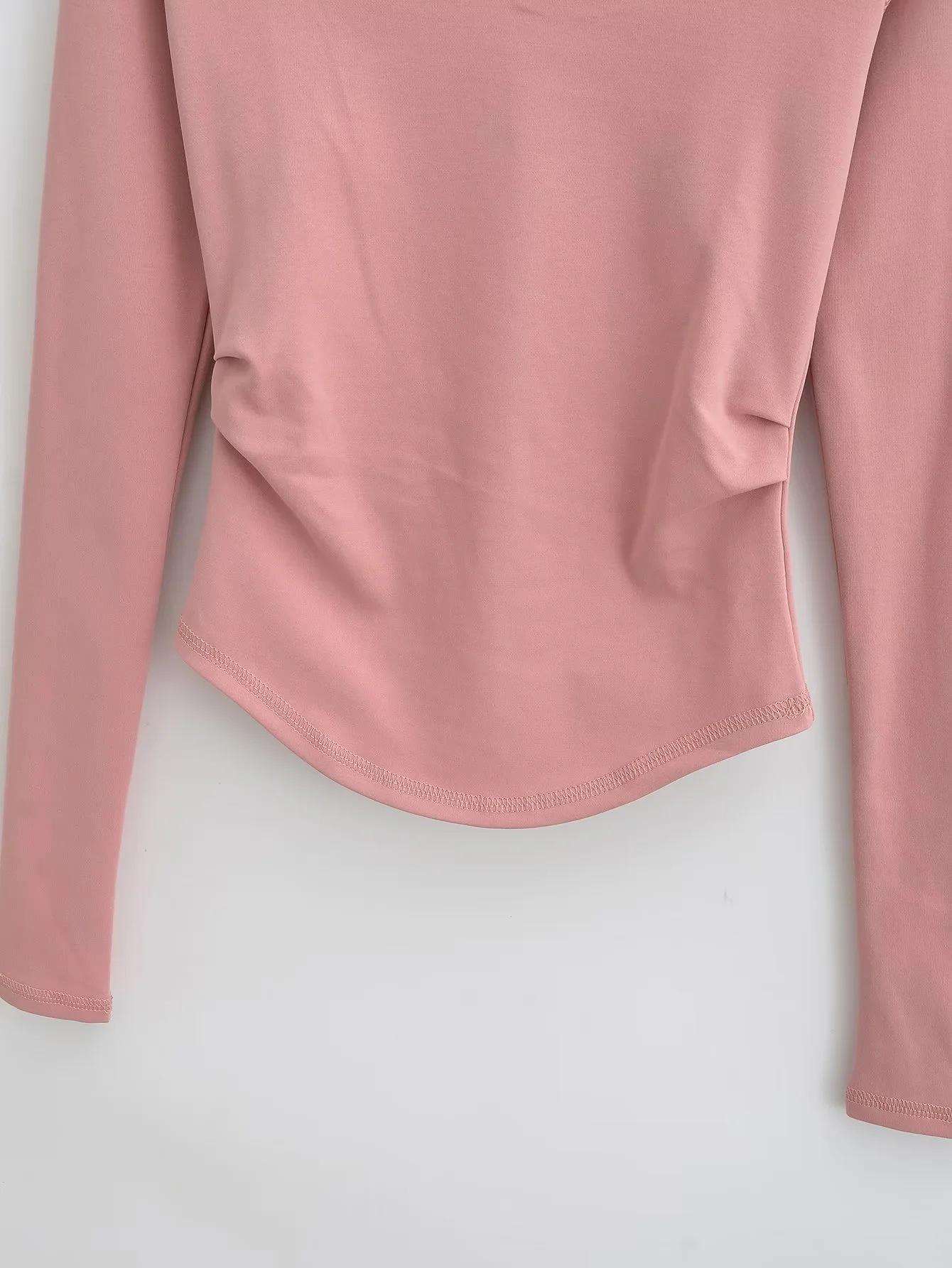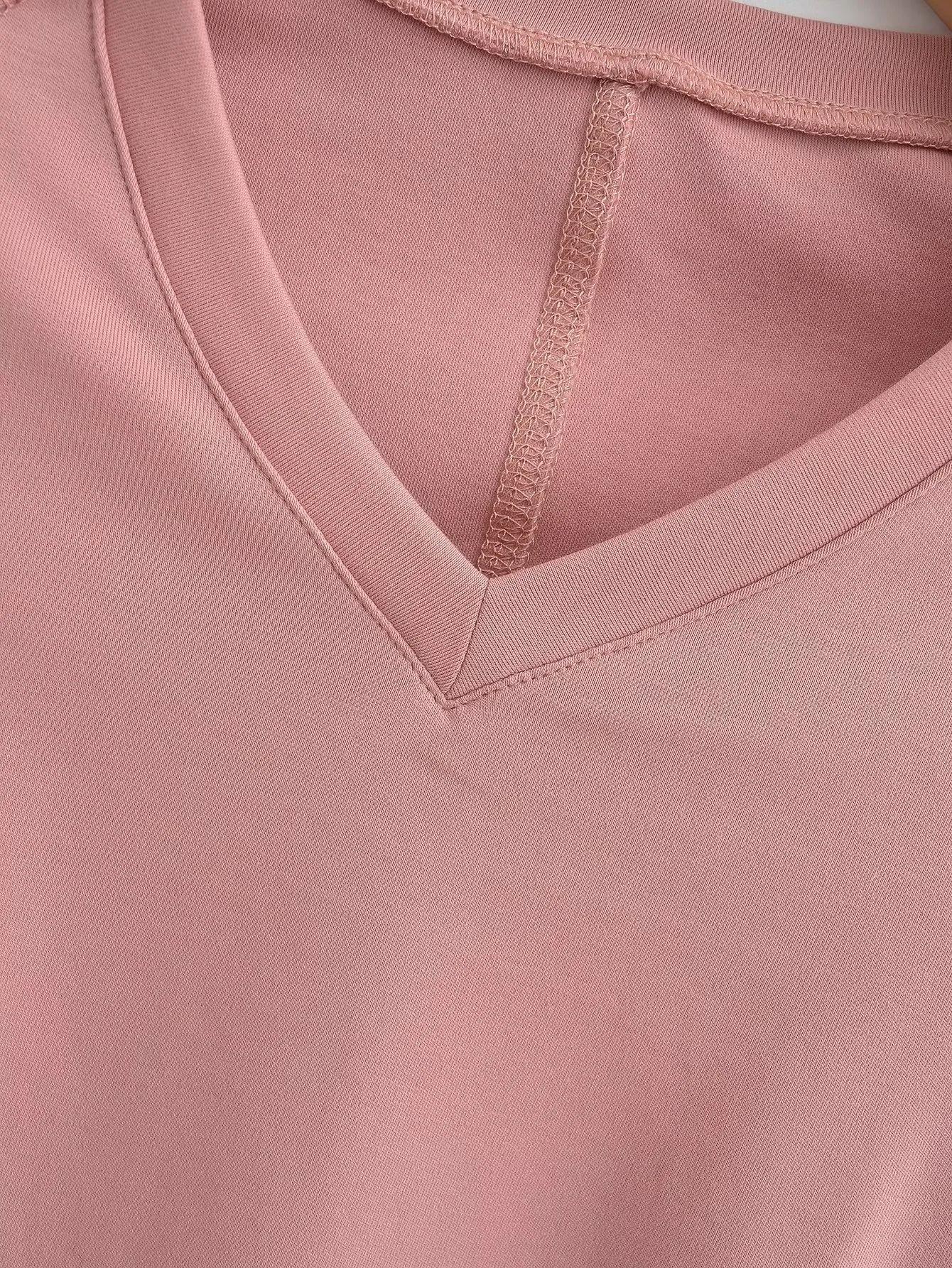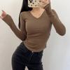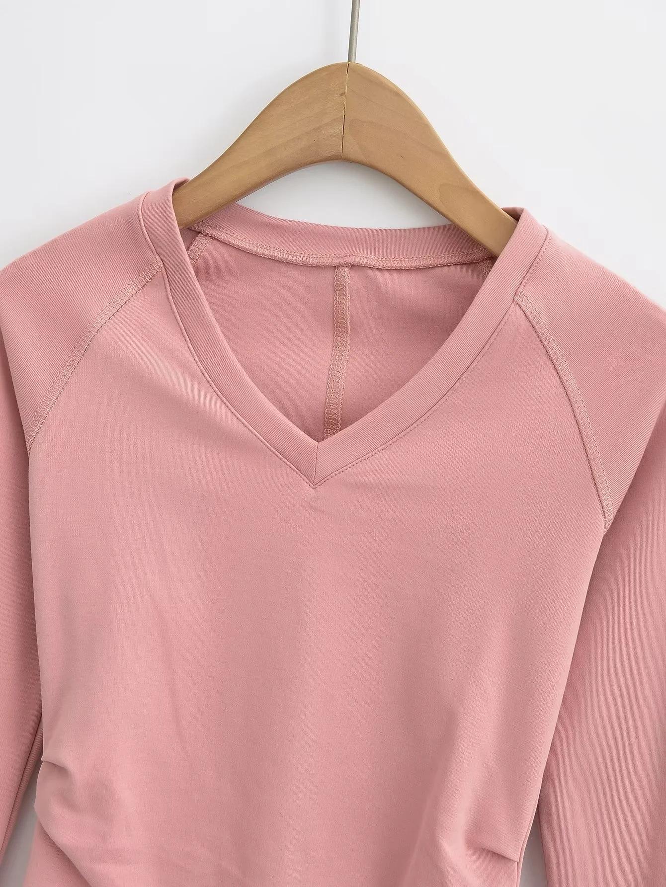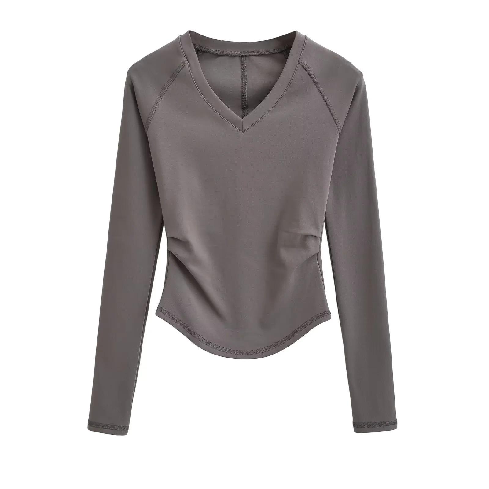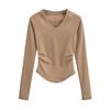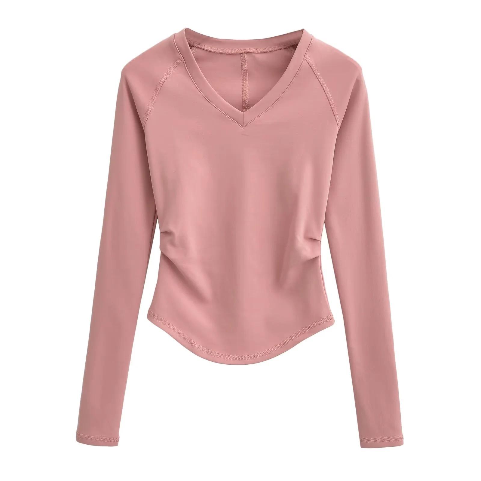 Compre Novo Outono e Inverno 2023 Design Três Agulhas Cinco Linhas Decote em V Plissado Slim-Fit Manga Longa Blusa Cor Sólida Camiseta Básica no atacado no Joom.pro