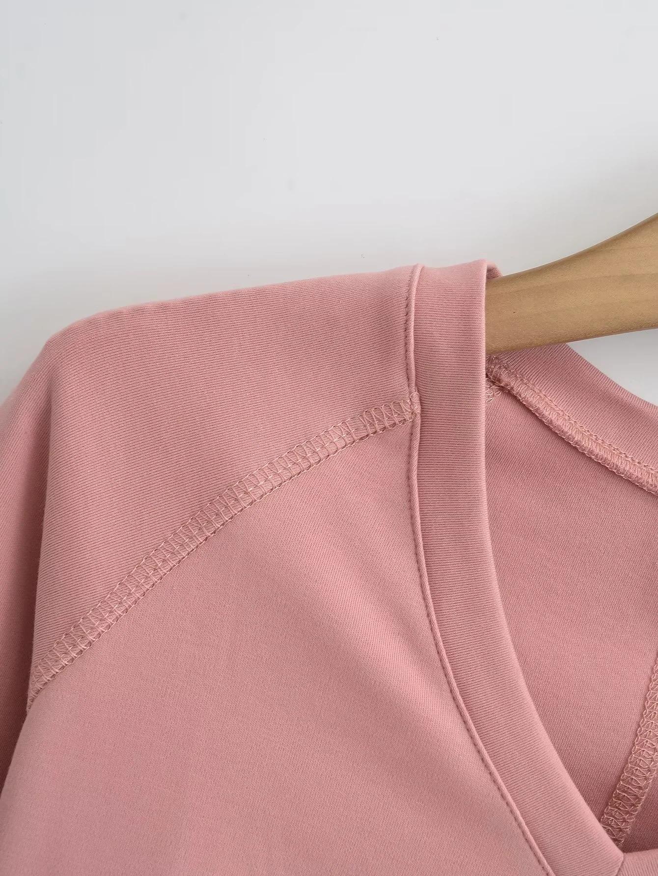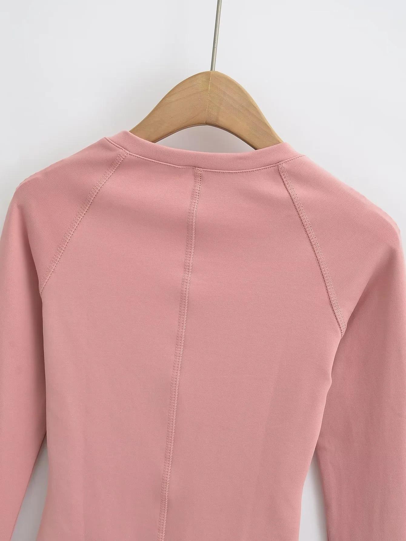 Novo Outono e Inverno 2023 Design Três Agulhas Cinco Linhas Decote em V Plissado Slim-Fit Manga Longa Blusa Cor Sólida Camiseta Básica