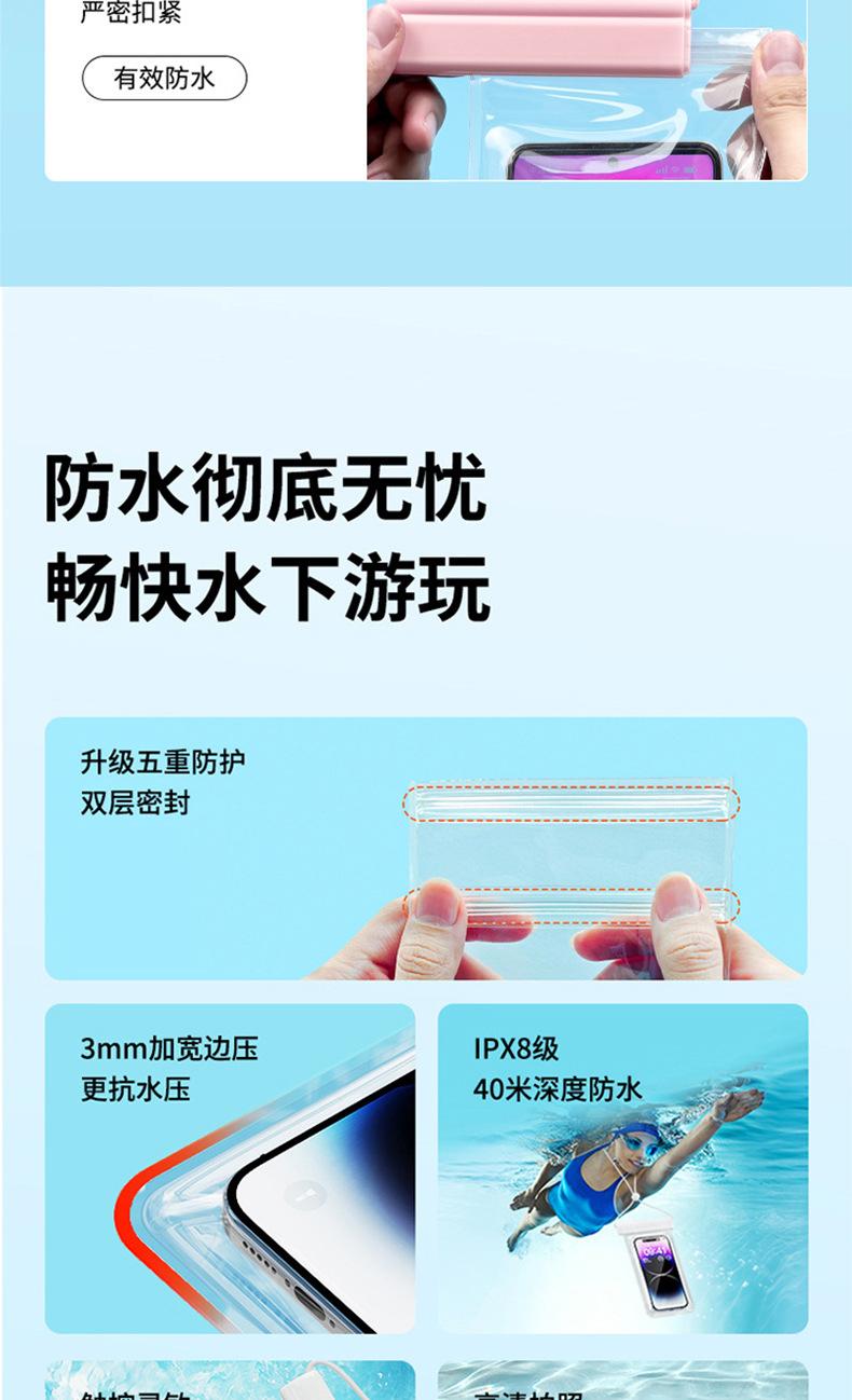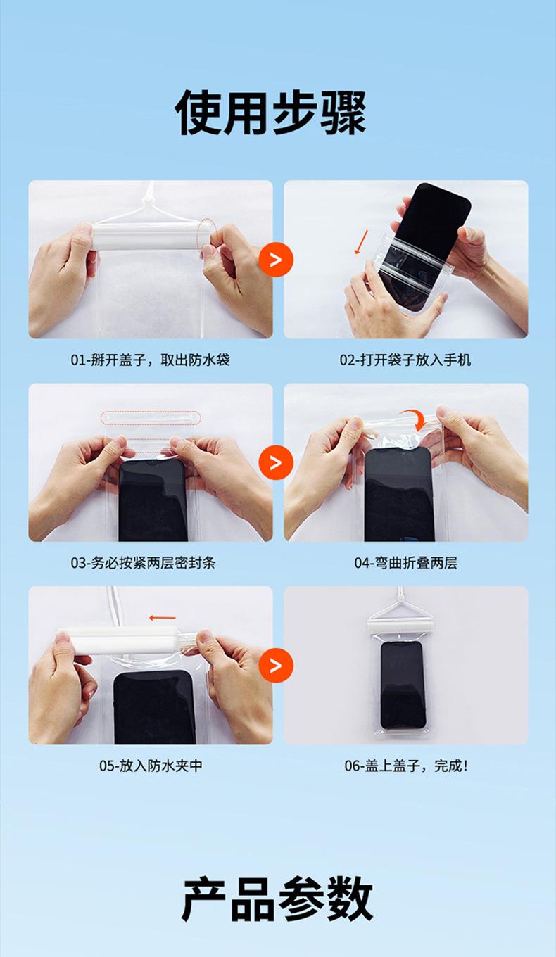 【Descrição】Para impermeabilização de telefones celulares ao nadar, fazer rafting ou brincar na praia