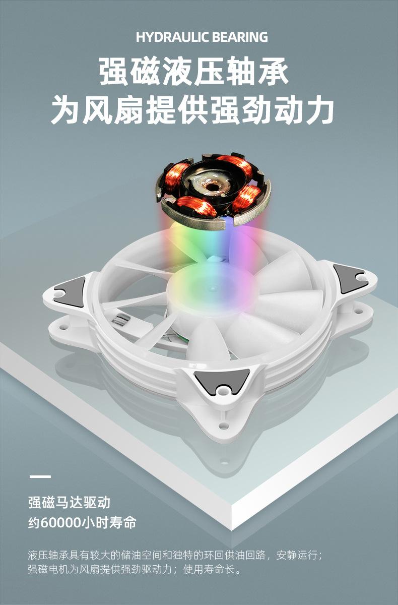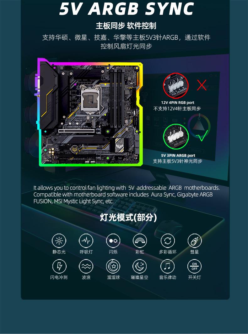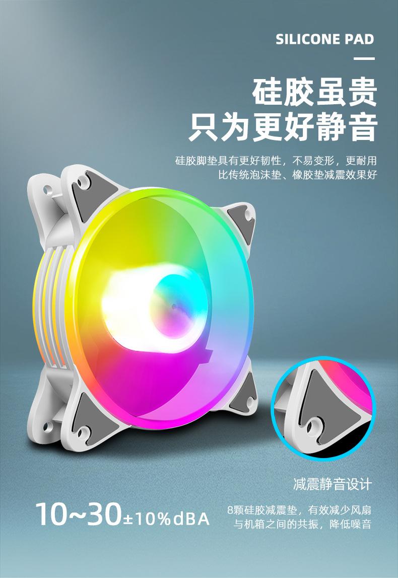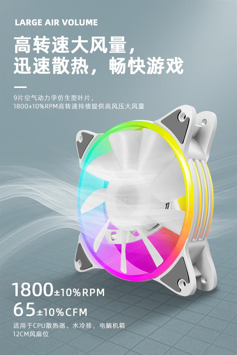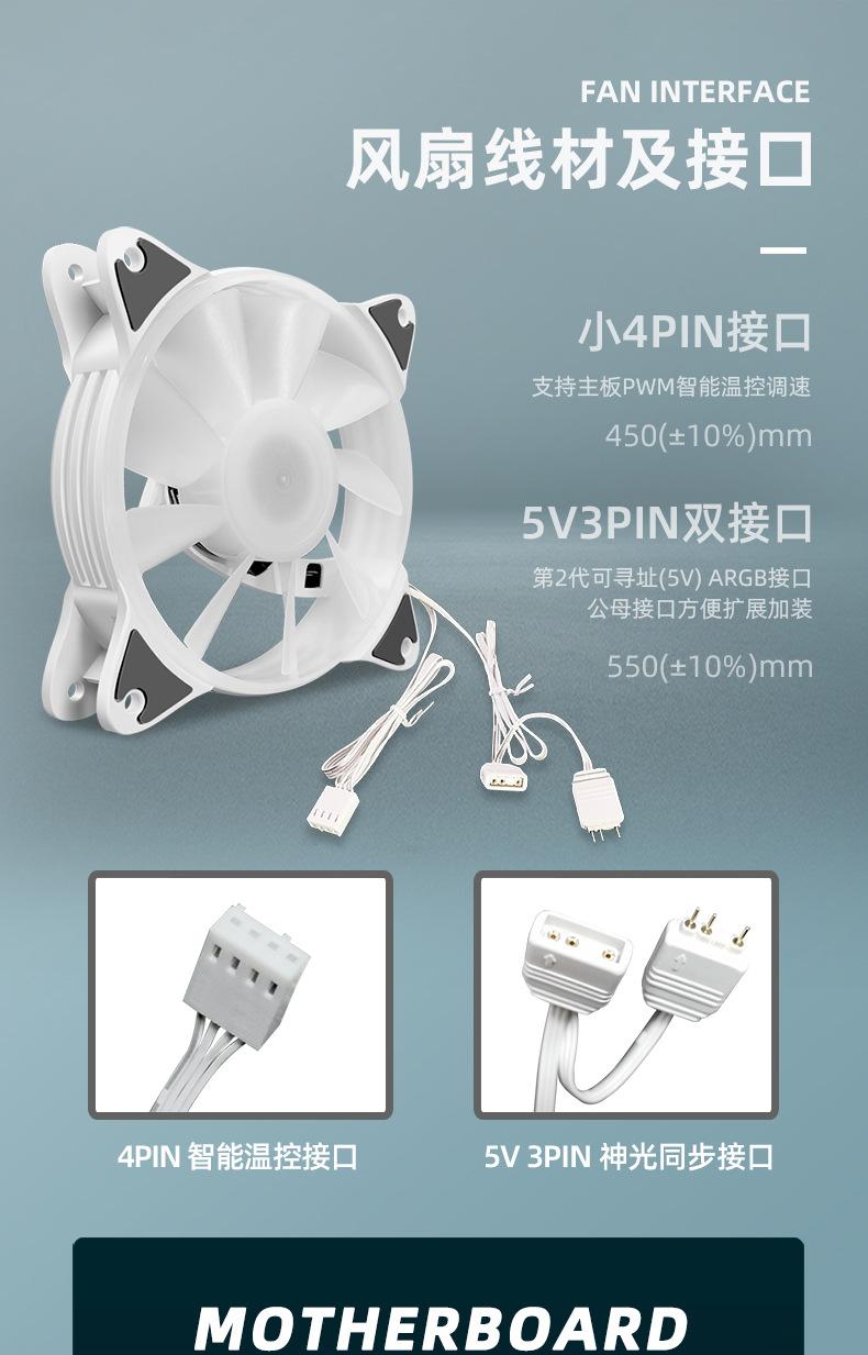 Ventoinha Magic Moon 5V ARGB com controle de temperatura e regulagem de velocidade, usa motor com rolamento de alta qualidade, esferas de lâmpada RGB de alto brilho, alta velocidade 800-1800RPM ajustável, pás grandes e grande volume de ar, adequada para coolers de ar para CPU, coolers de água para CPU, gabinetes de computador, com controlador Cool Moon para controle de temperatura, pode ajustar velocidade, brilho e modo, muito conveniente! A versão branca desta ventoinha tem os pés de borracha alterados para pés de borracha brancos [Suporta vendas internacionais, proteção global de marca registrada para distribuidores, pode fornecer embalagem com imagem em inglês]