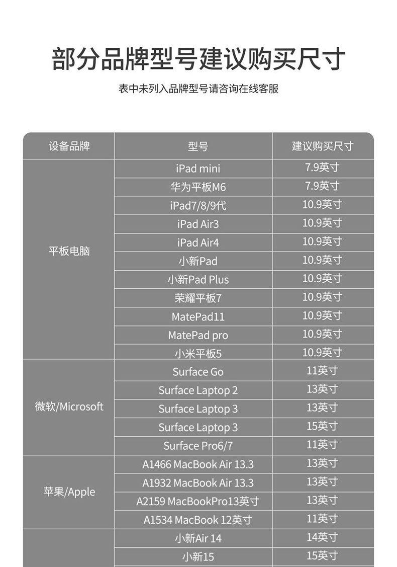 Macbook Air 13.6 inch, 7.9 inch, 10.9 inch, 12 inch, 13 inch, 13.3/14 inch, 15/16 inch