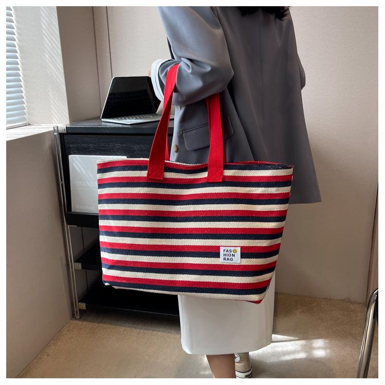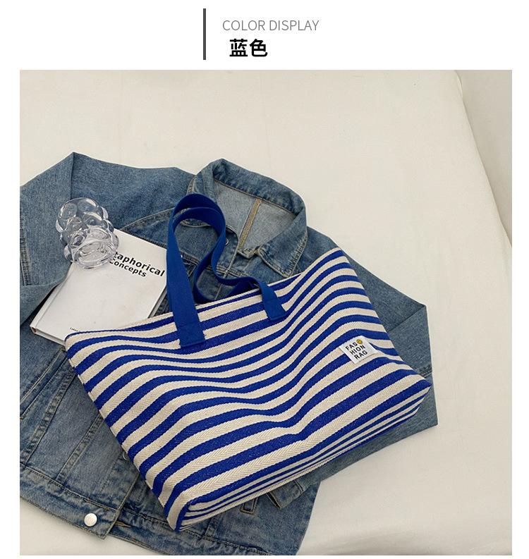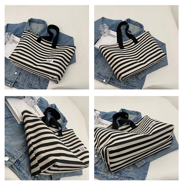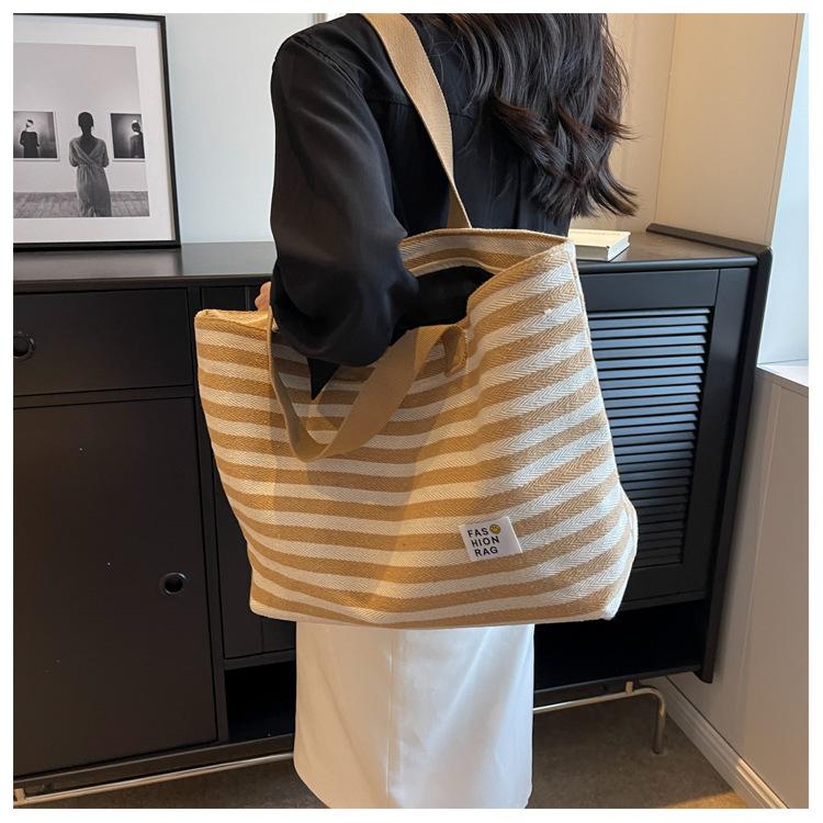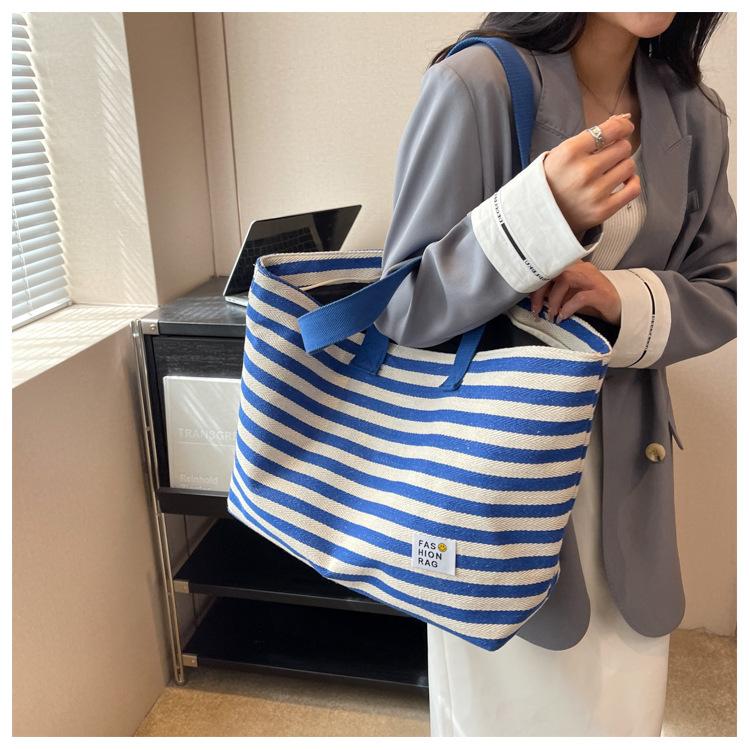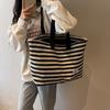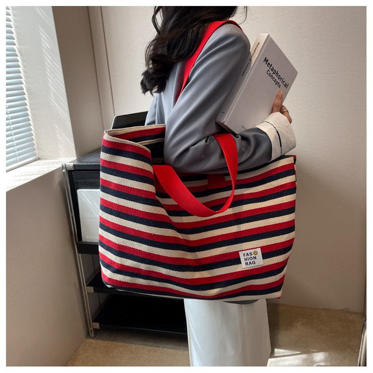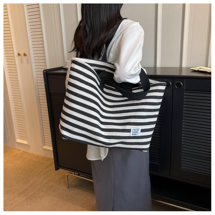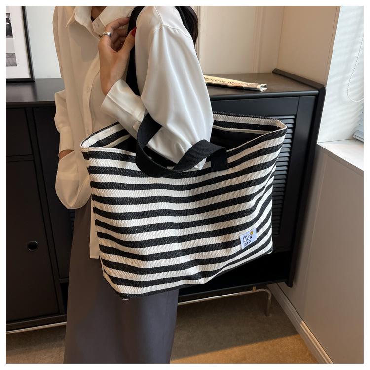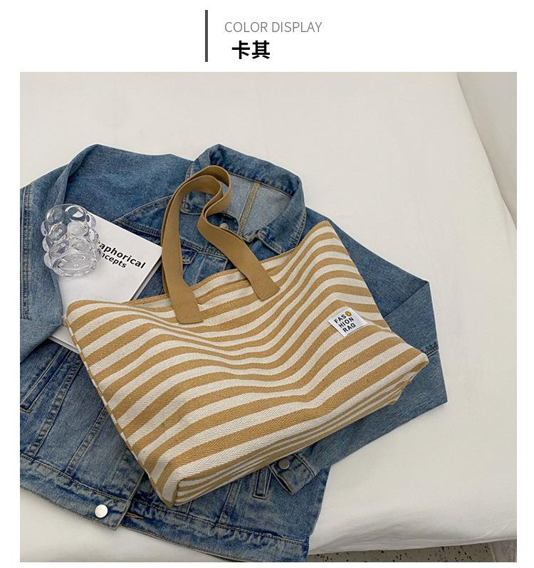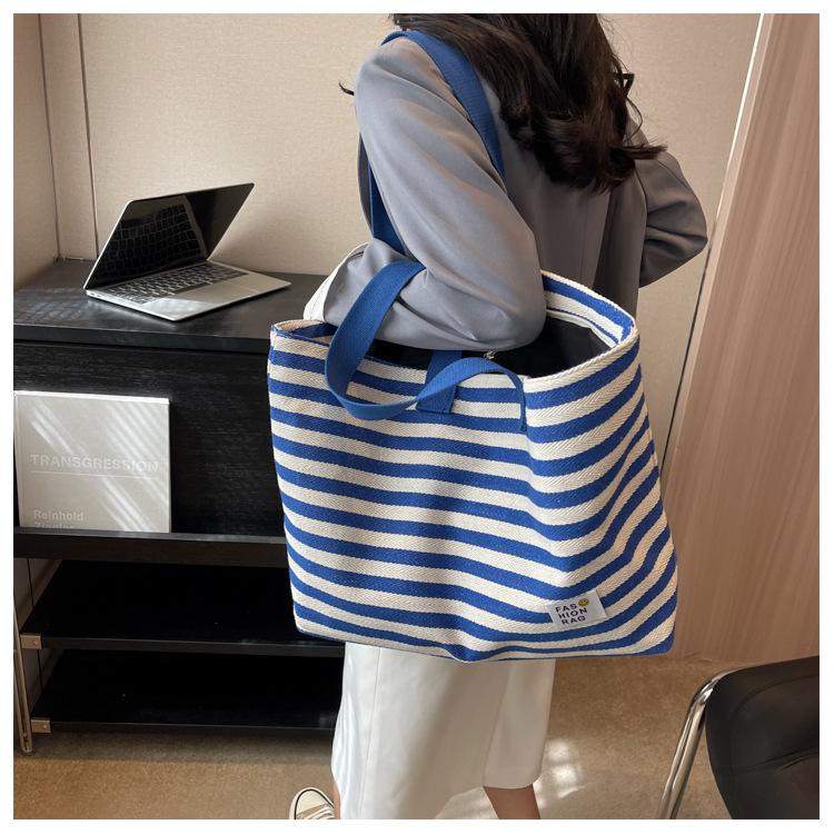 Canvas Moda Grande Capacidade Estudante Bolsa Feminina 2023 Nova Texturizada Listrada Simples Ombro Casual Mão Carregando Bolsa Grande