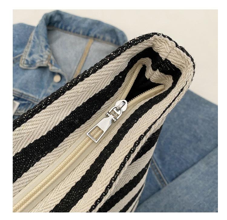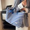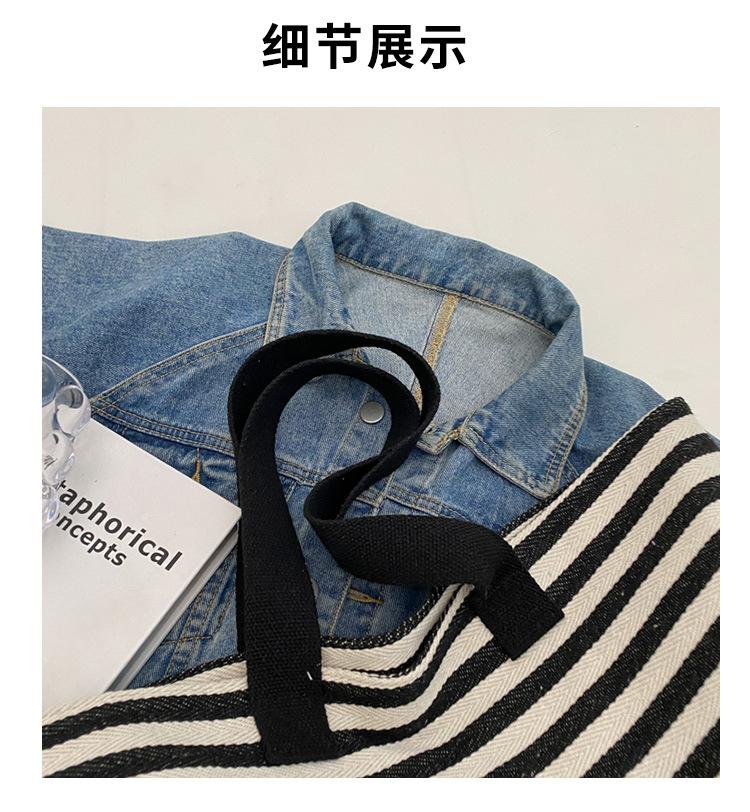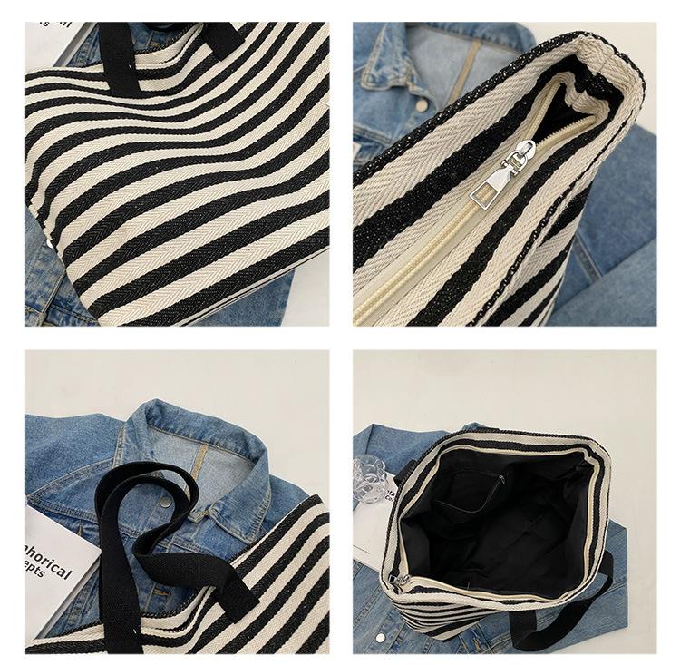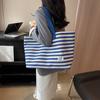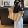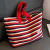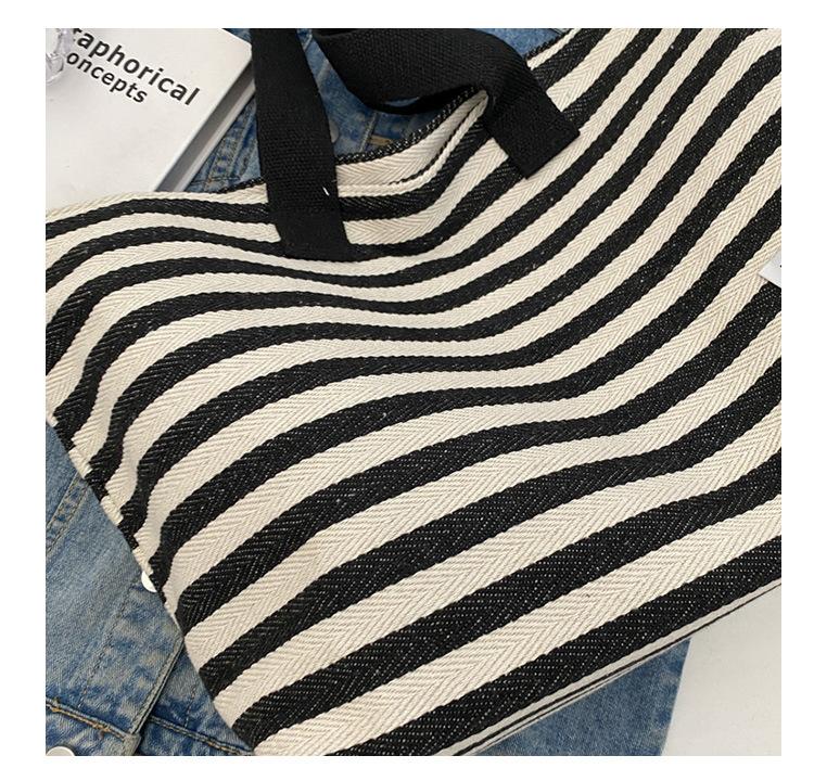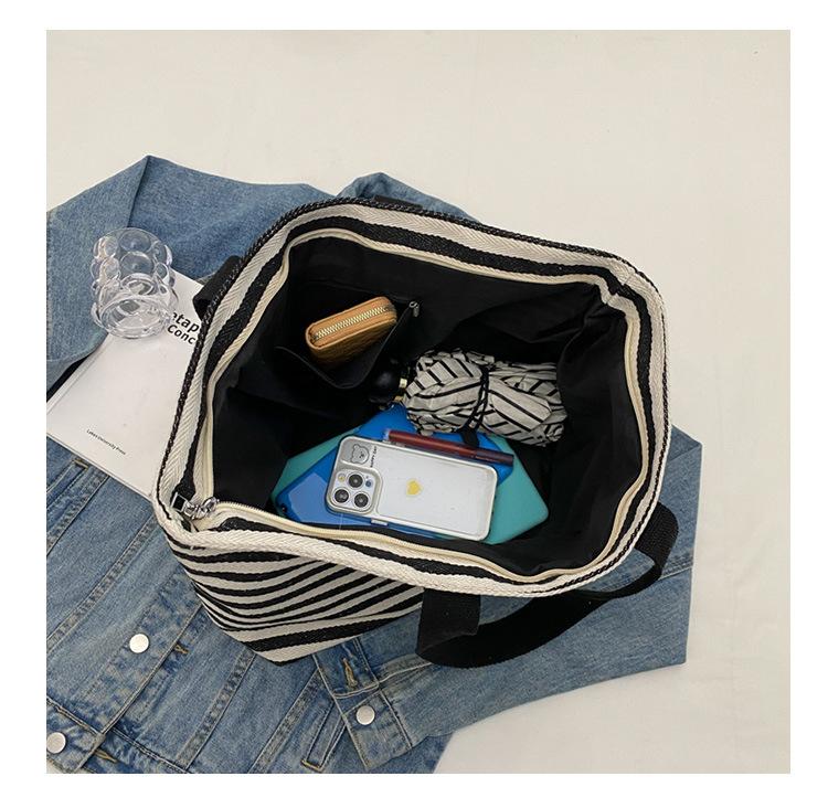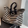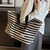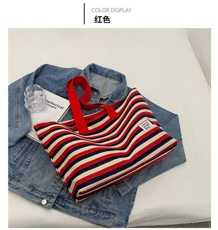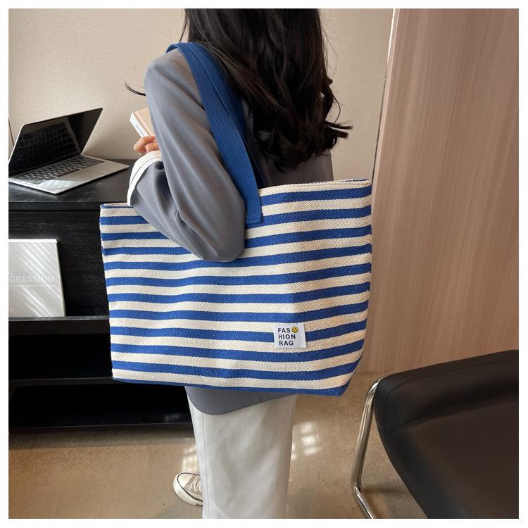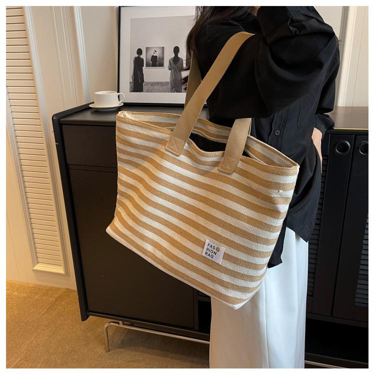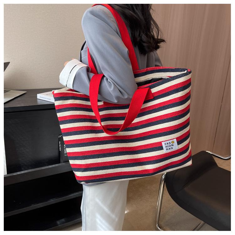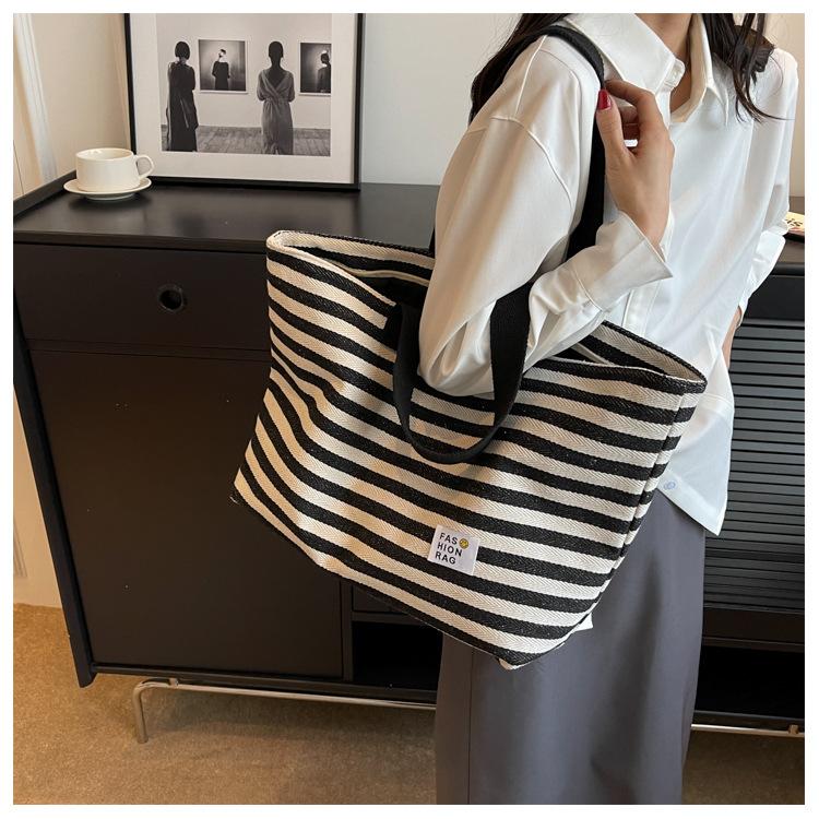 Canvas Moda Grande Capacidade Estudante Bolsa Feminina 2023 Nova Texturizada Listrada Simples Ombro Casual Mão Carregando Bolsa Grande
