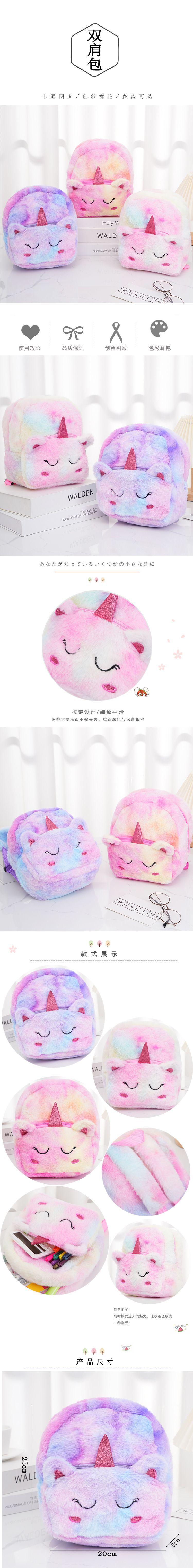 Mochila Escolar Infantil Unicórnio Transfronteiriço Cavalo Colorido Jardim de Infância Ensino Fundamental e Médio Meninos e Meninas Tie-Dye Pelúcia