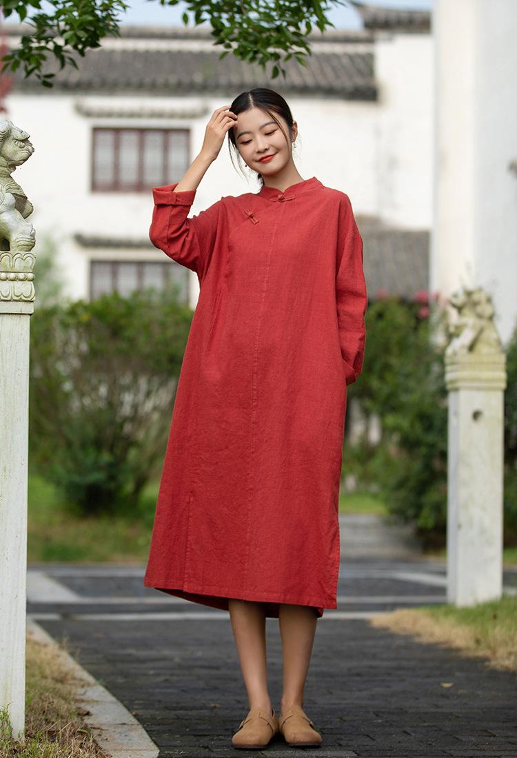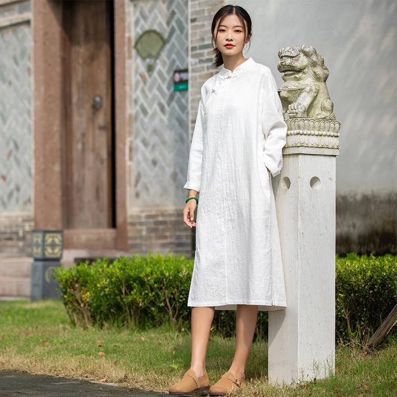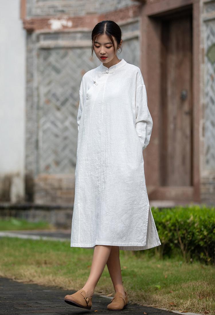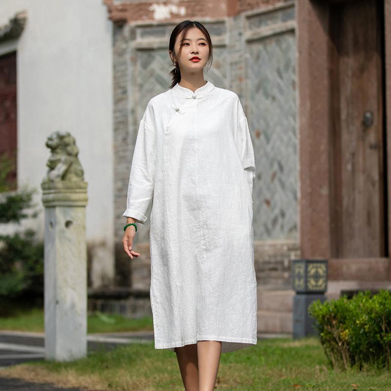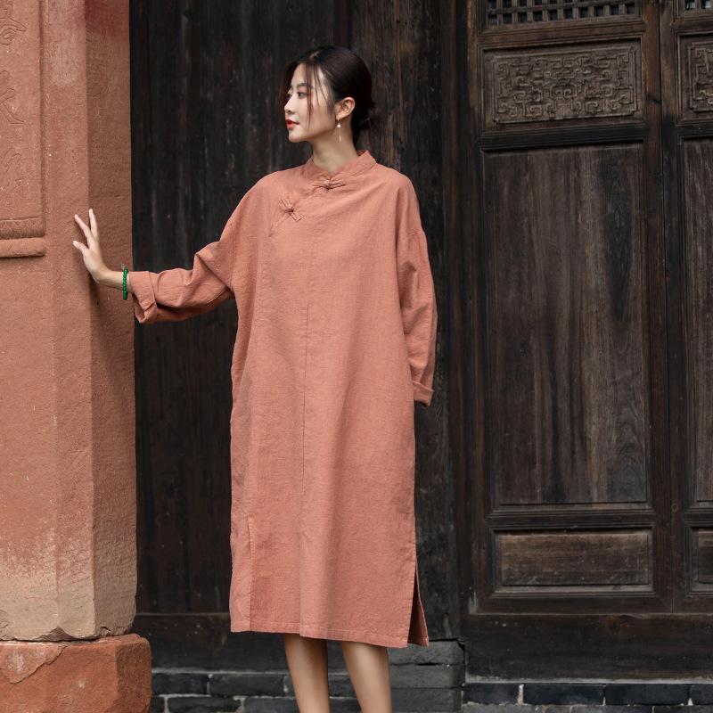 Primavera 2026 Novo Estilo Chinês Feminino Retrô Botões Artesanais Patchwork Inspirado em Zen Vestido Longo Emagrecedor Qipao para Mulheres