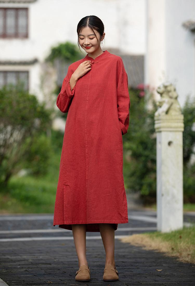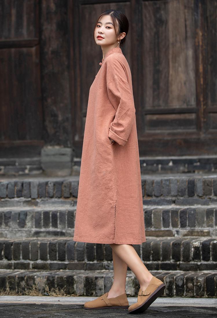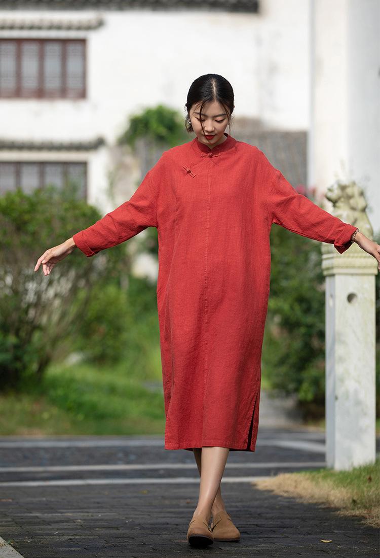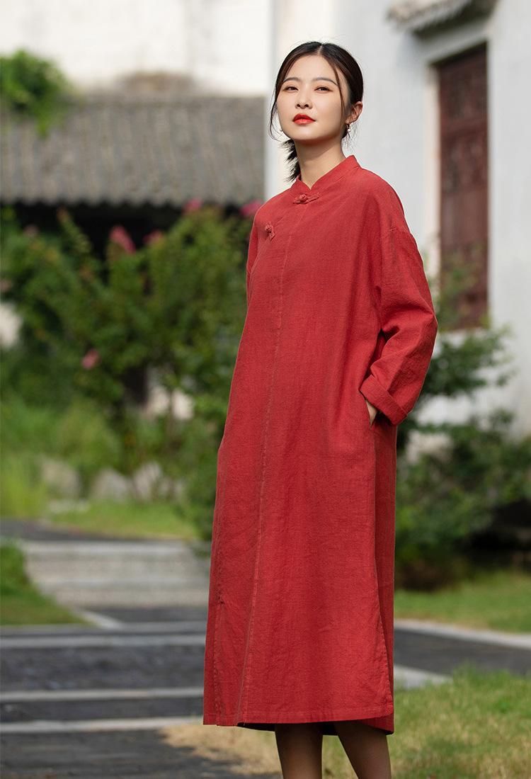Primavera 2026 Novo Estilo Chinês Feminino Retrô Botões Artesanais Patchwork Inspirado em Zen Vestido Longo Emagrecedor Qipao para Mulheres