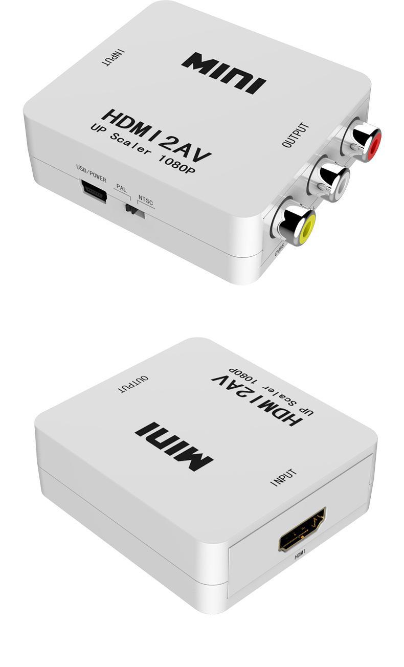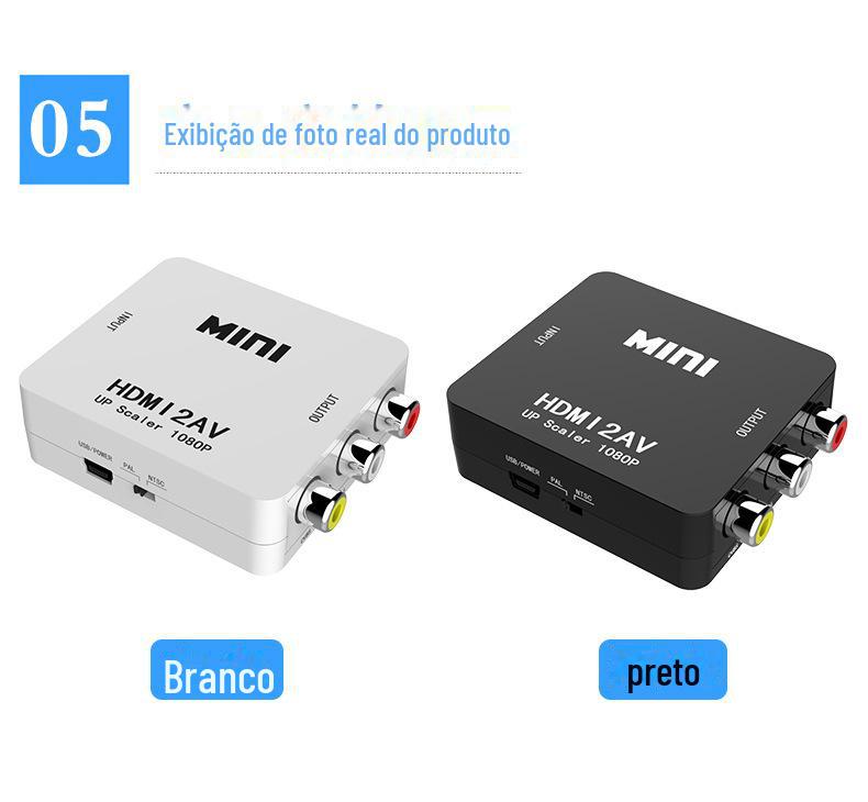 Este conversor HDMI para AV/CVBS pode converter sinais digitais HDMI em sinais de vídeo composto AV (CVBS) e saídas de sinal de áudio estéreo FL/FR, permitindo que os usuários convertam sinais de áudio e vídeo HDMI de alta definição em TVs comuns, tocadores de VHS, gravadores de DVD, etc. que podem receber sinais CVBS (resolução padrão 480i, 576i). O conversor pode suportar dois formatos diferentes, NTSC/PAL (é necessária a troca manual)