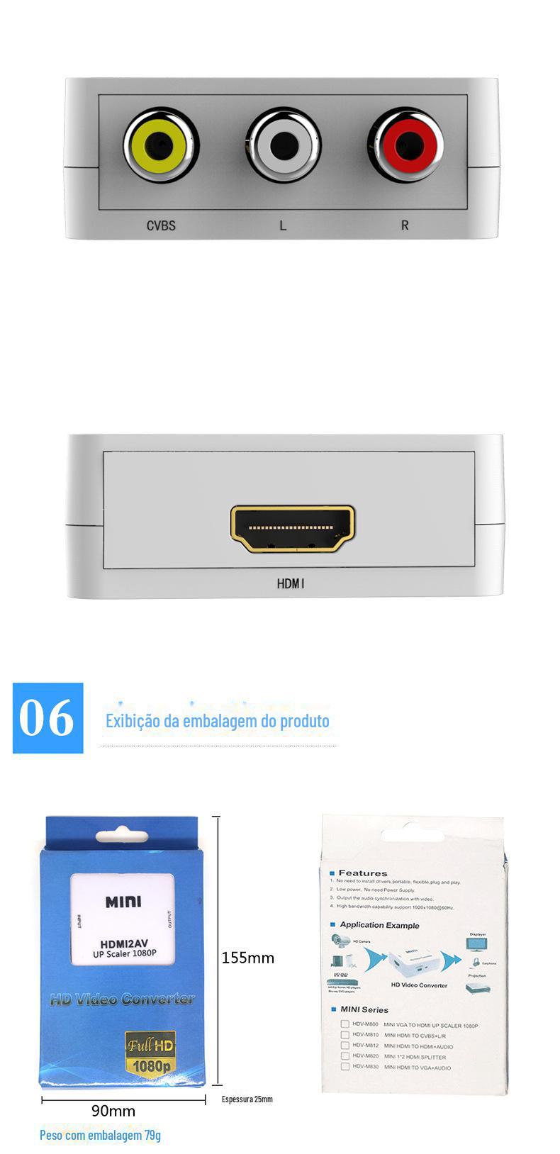 3. Usa tecnologia de processamento de vídeo Scaler: converte sinais HDMI de alta definição em saída CVBS através do Scaler Down