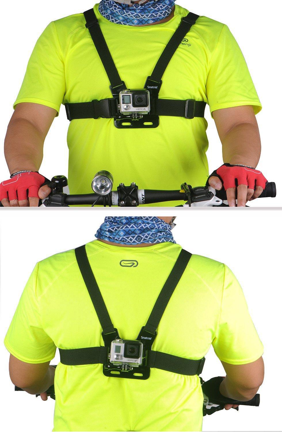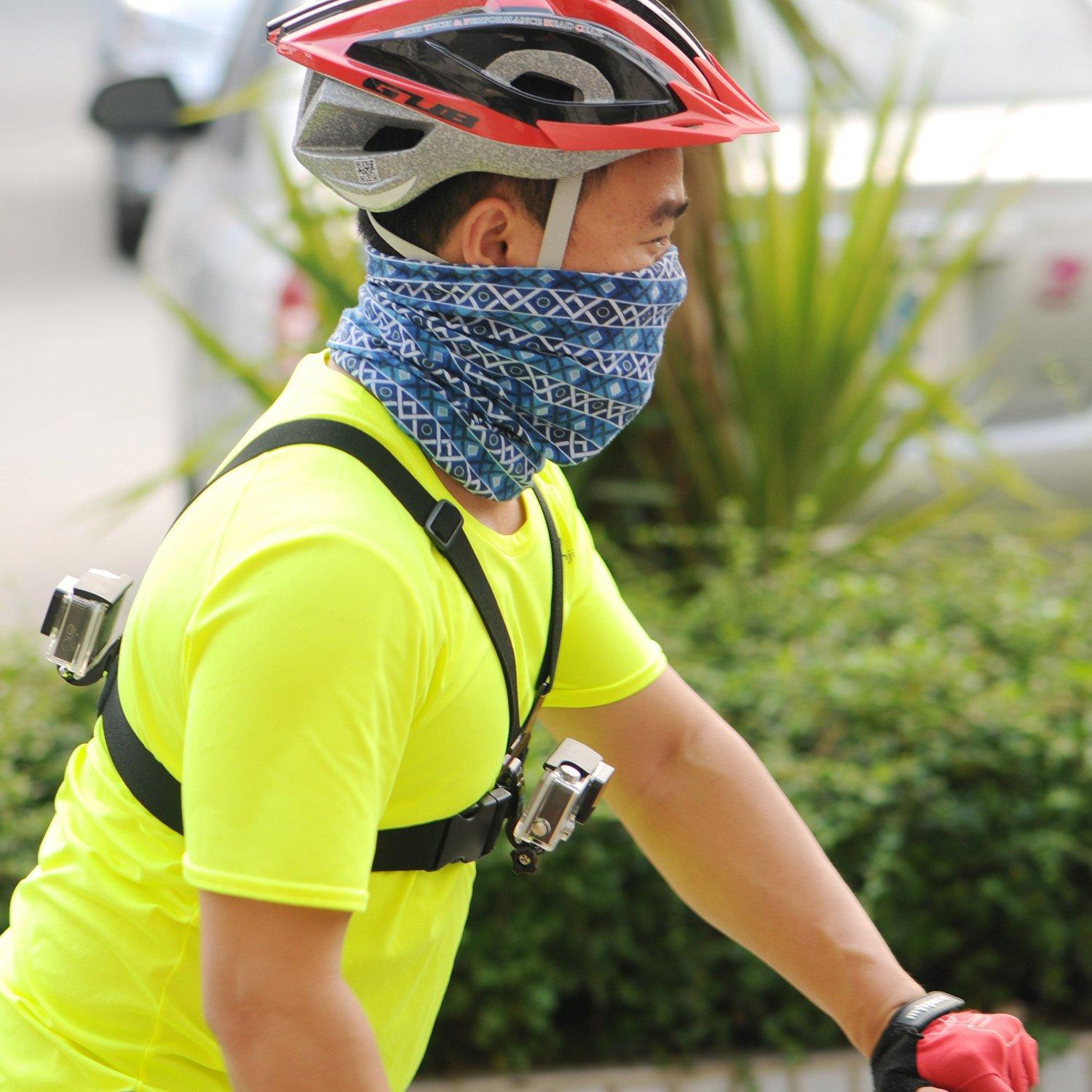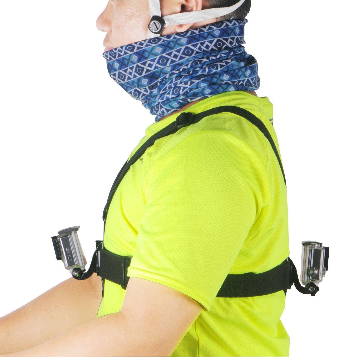 Alça torácica 2 em 1 para fotos frontais e traseiras: As câmeras podem ser instaladas na frente e atrás ao mesmo tempo, além do grande angular da câmera de ação, basicamente conseguindo fotos em 360 graus sem pontos cegos. Adequado para série completa GoPro/Yi/Mountain Dog e outras câmeras de ação.