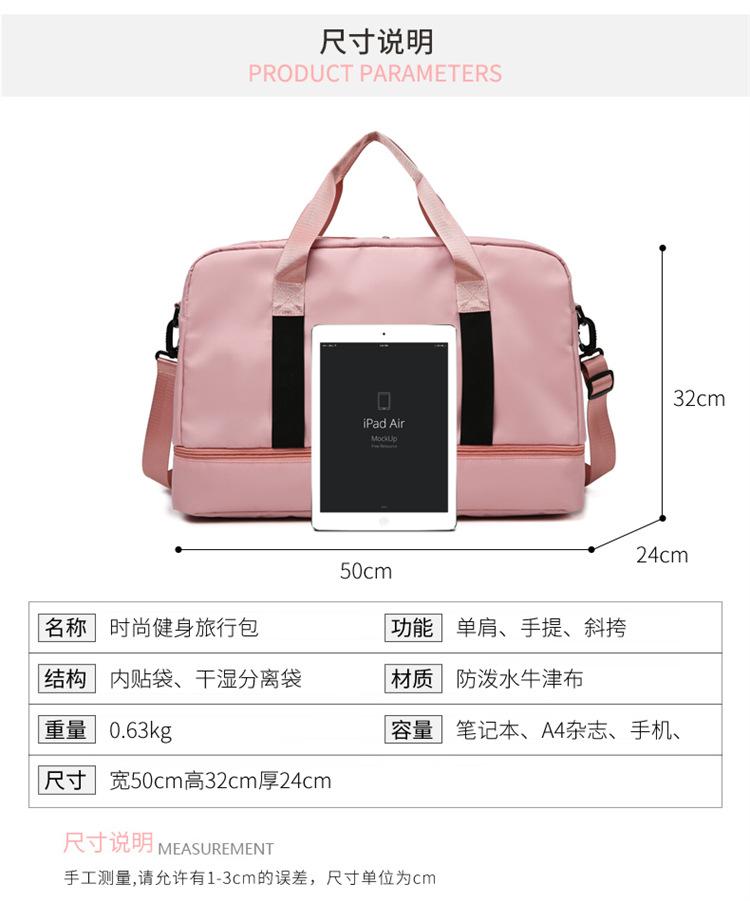 Saco de viagem de grande capacidade, viagem de negócios de curta distância, bolsa portátil, saco de bagagem leve, separação seca e molhada, saco de fitness