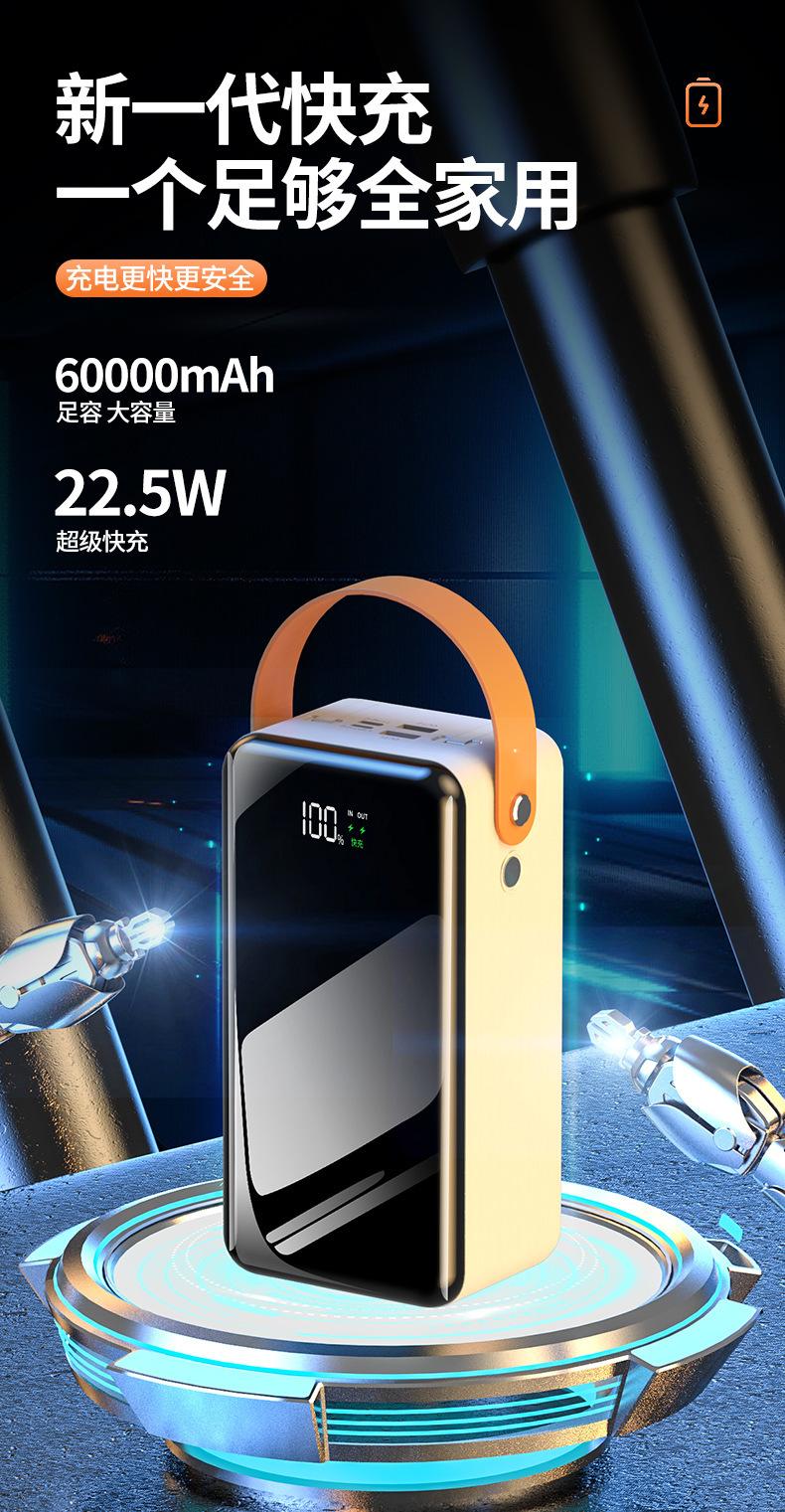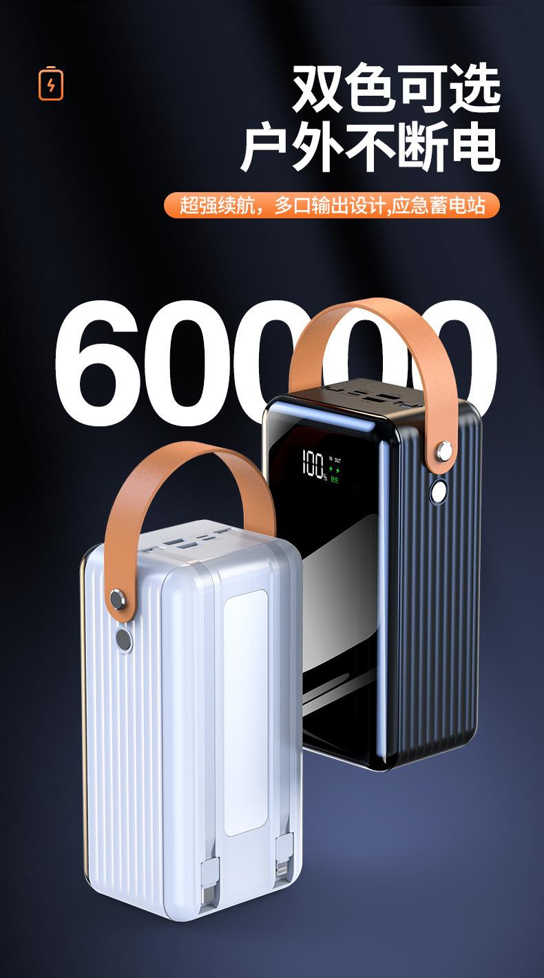 Novo 60000 mA super grande capacidade 22.5W super rápido carregamento móvel de energia com tesouro de carregamento de corda dupla