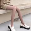 Stewardess cinza uma peça transparente meias pretas perna clara falso artefato transparente fêmea primavera outono e inverno lã forrado de lã grossas leggings meias