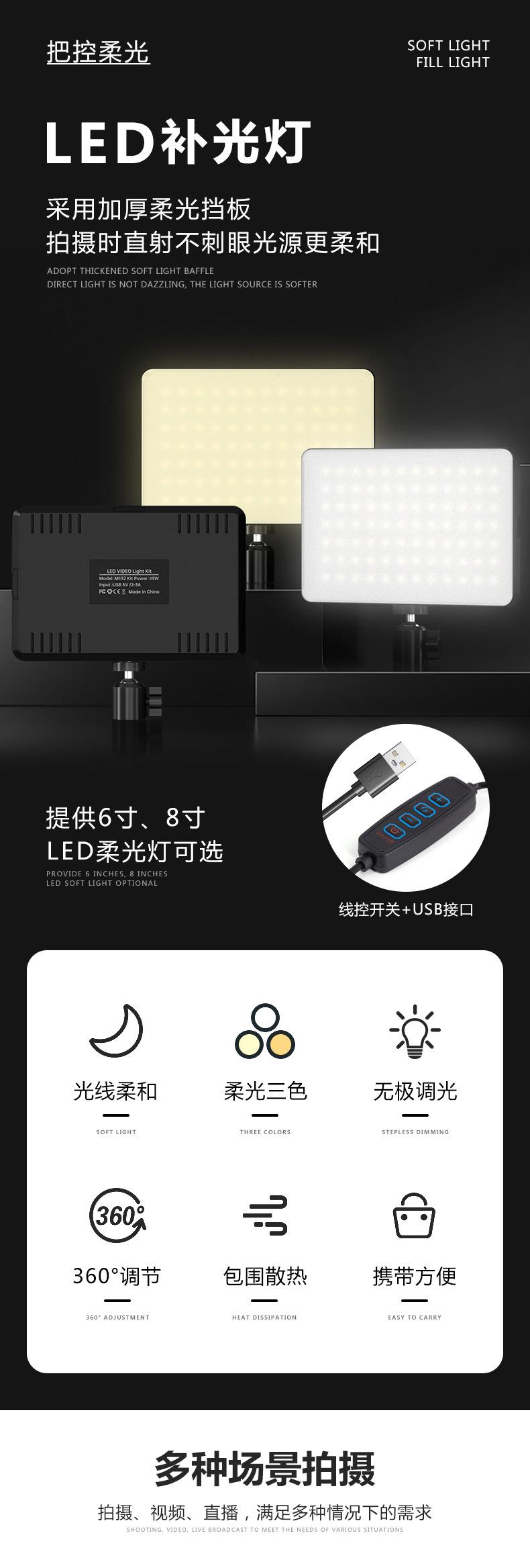 Luz de Preenchimento LED 6 polegadas Luz de Painel para Fotografia Luz para Beauty Live Streaming Iluminação para Videoconferência Luz Suave Escurecimento Contínuo