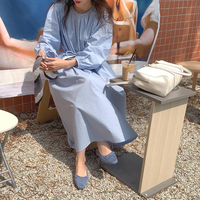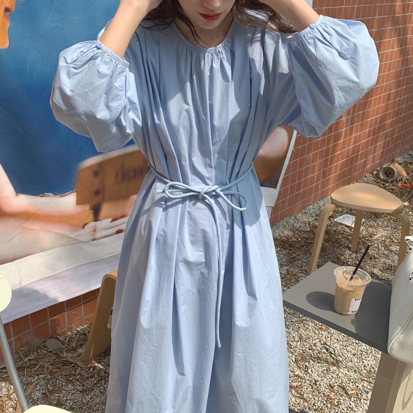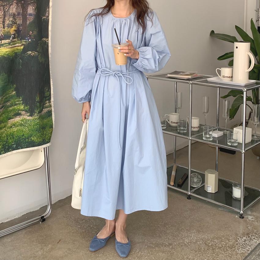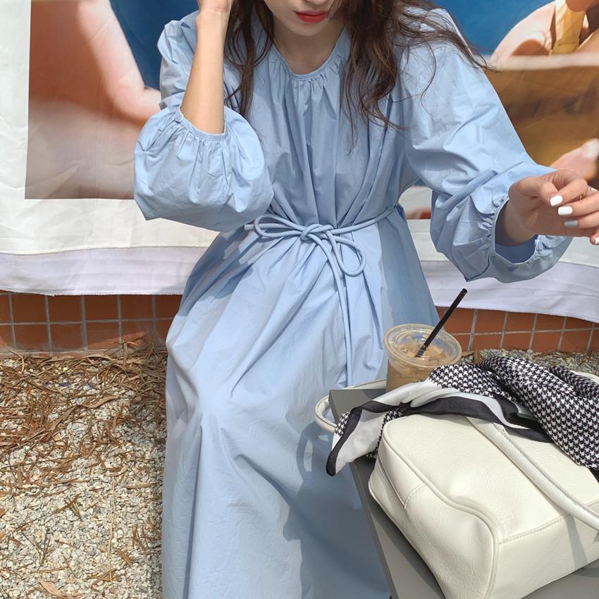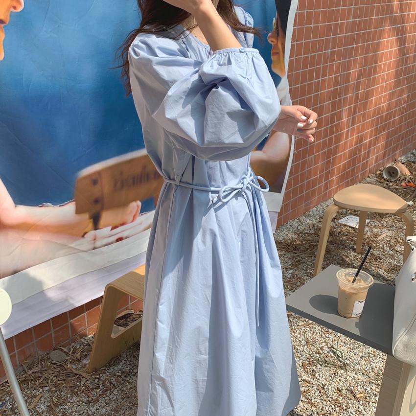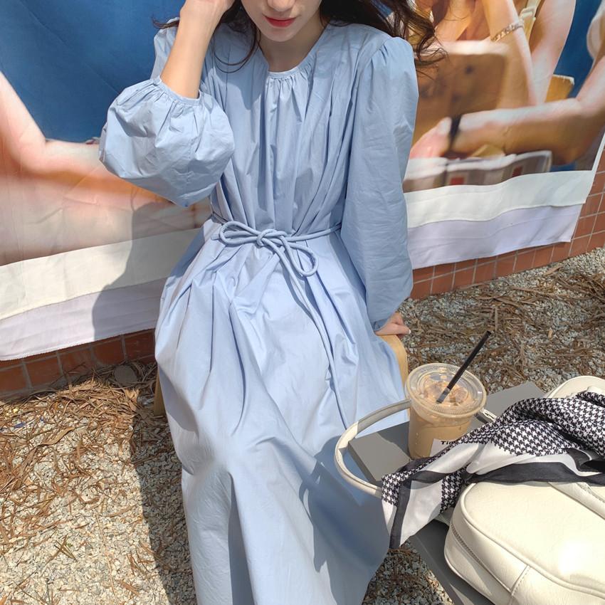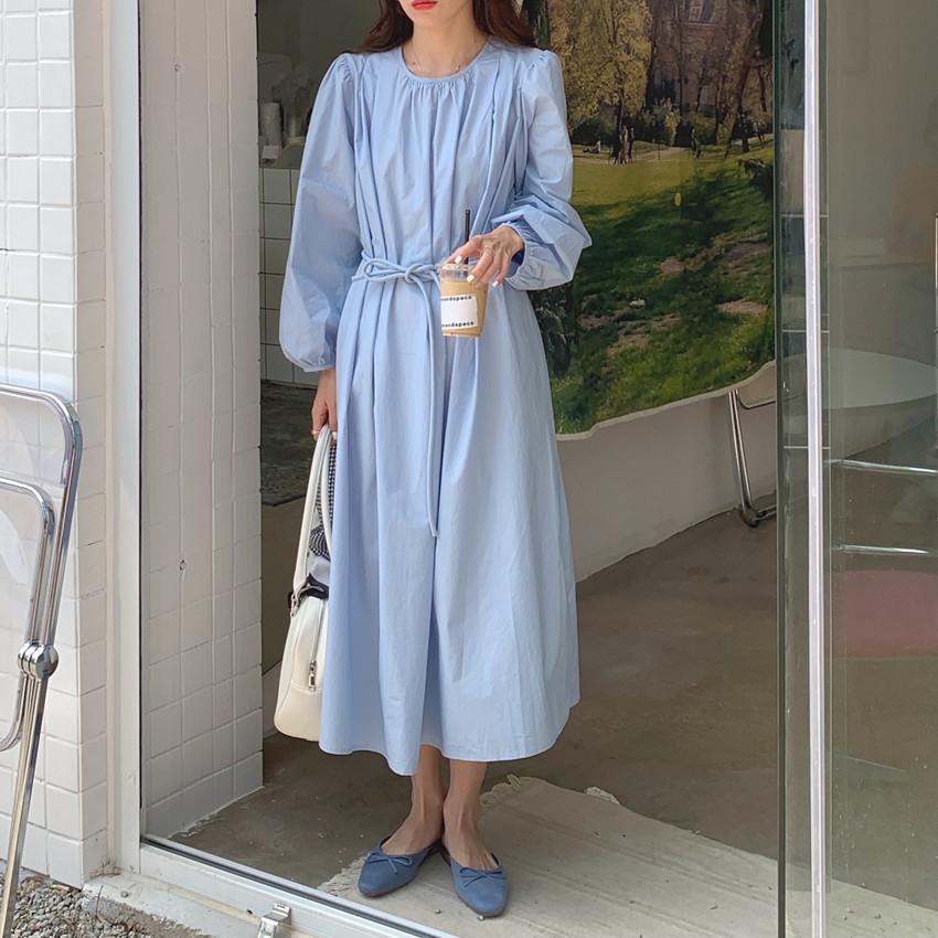 Compre Foto Real 2025 Primavera Novo Estilo Francês Elegante Elegante Suave Azul Leite Retrô Manga Lanterna Vestido Plissado para Mulheres no atacado no Joom.pro