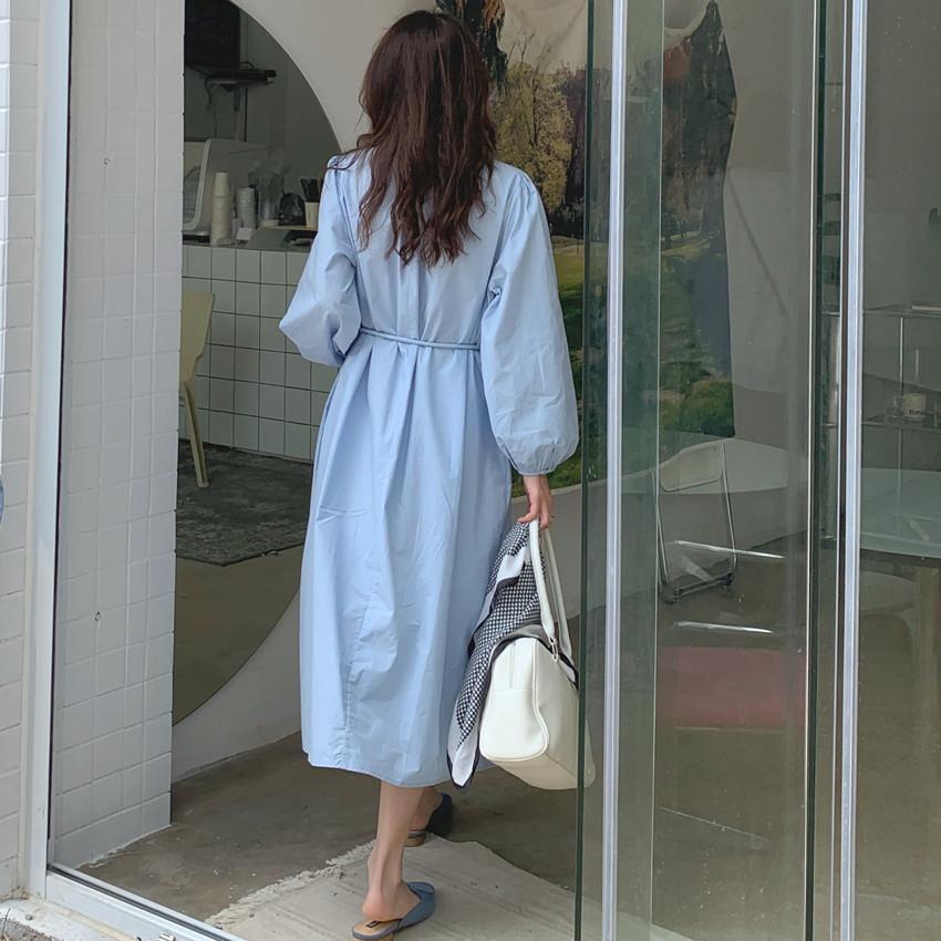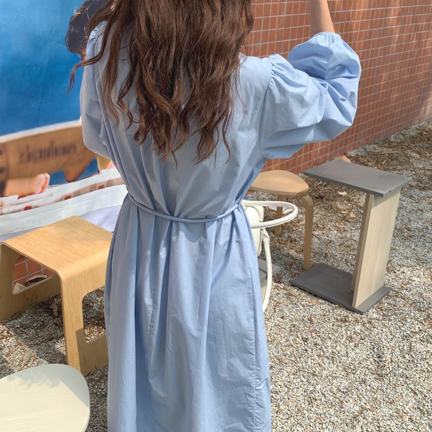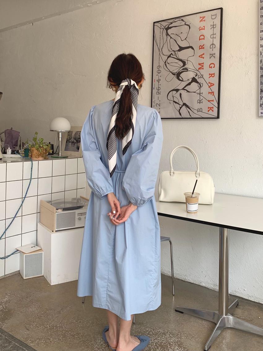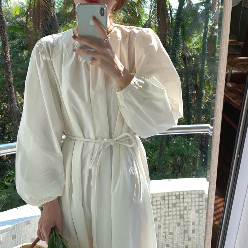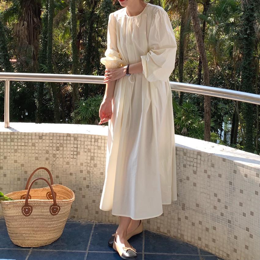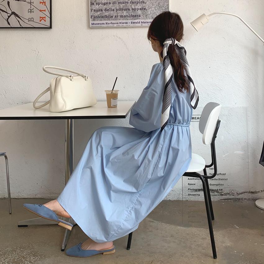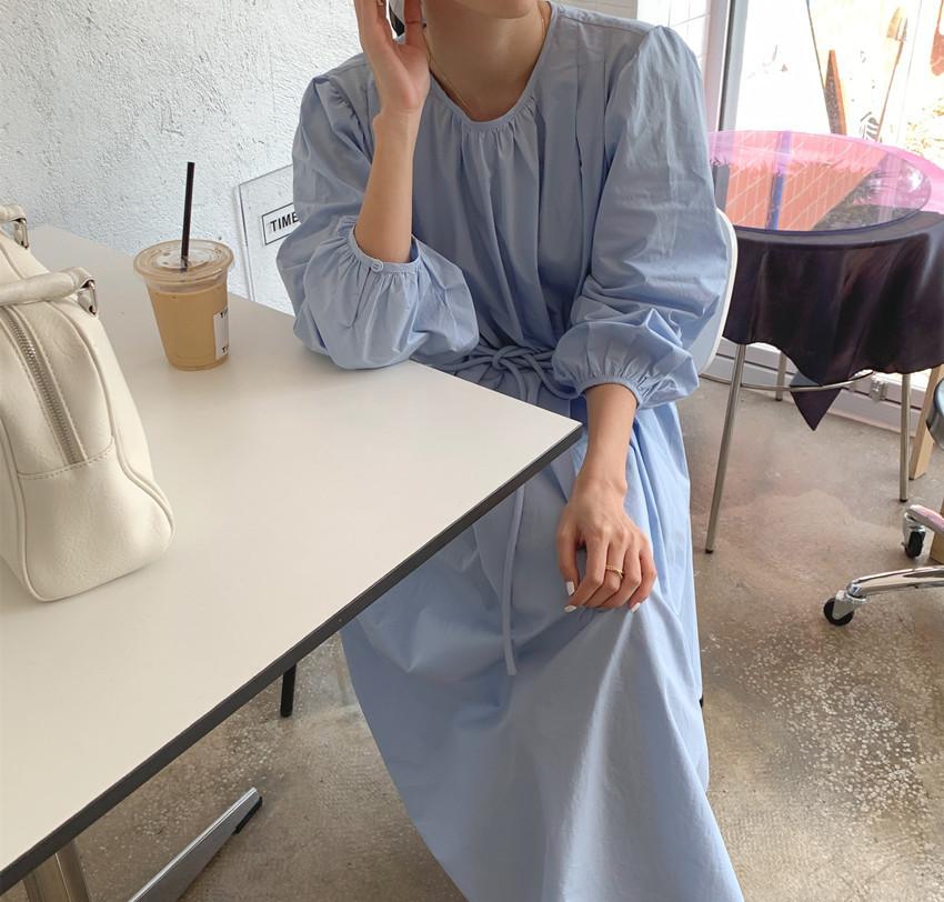 Compre Foto Real 2025 Primavera Novo Estilo Francês Elegante Elegante Suave Azul Leite Retrô Manga Lanterna Vestido Plissado para Mulheres no atacado no Joom.pro