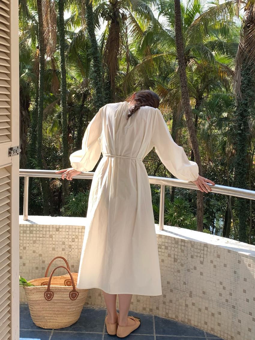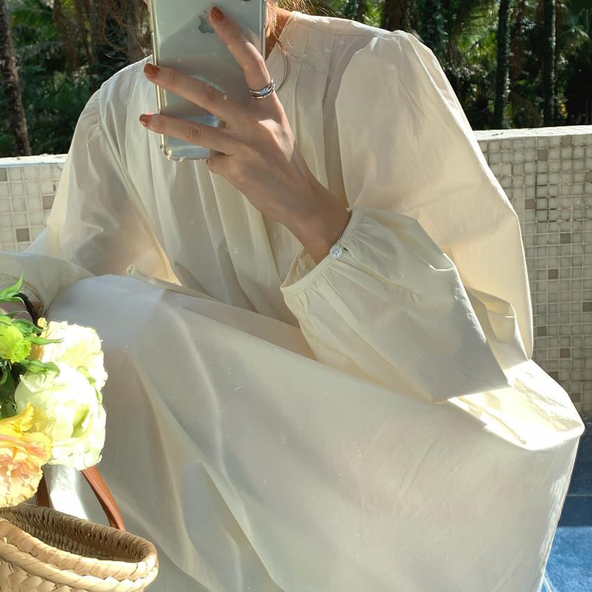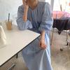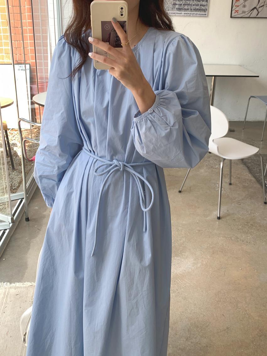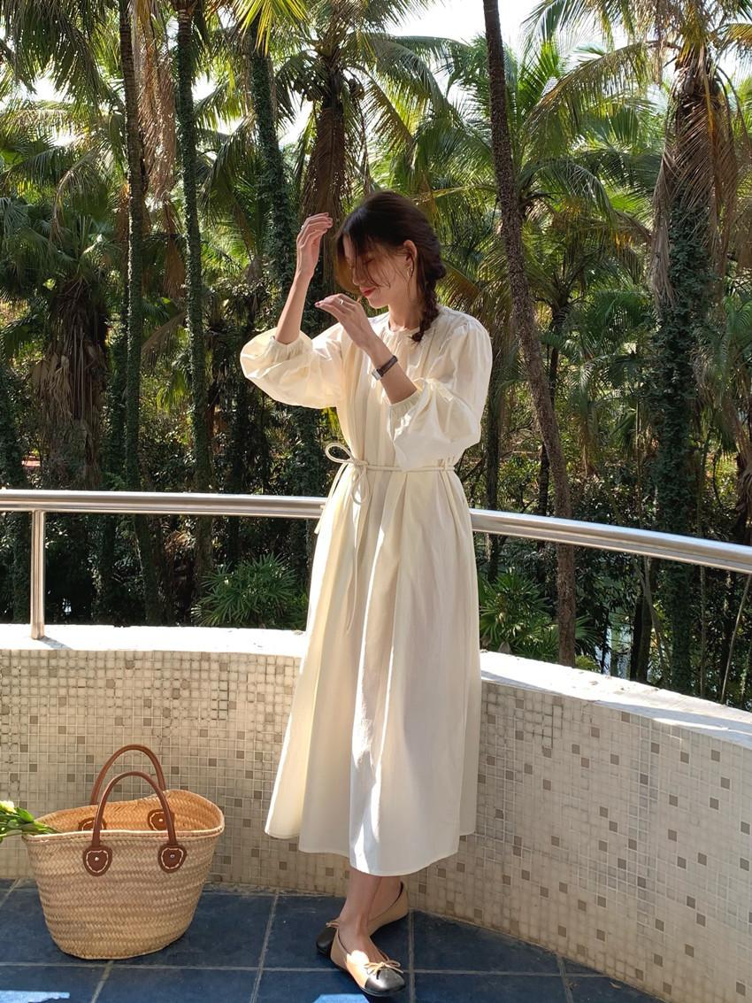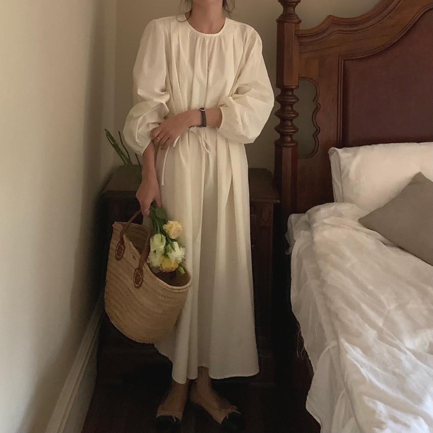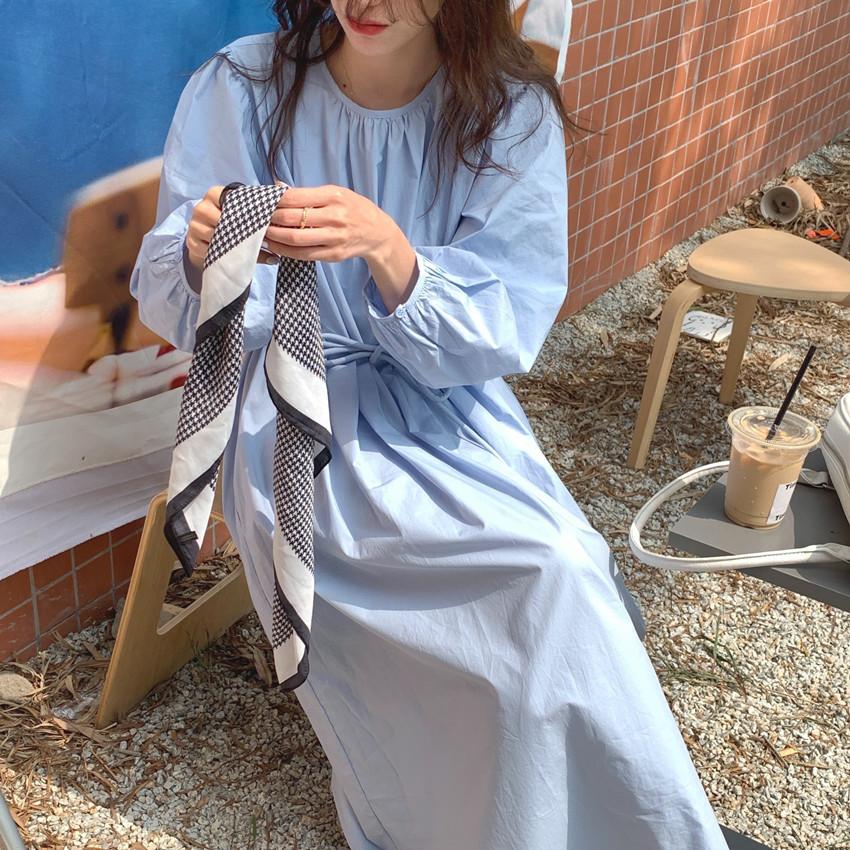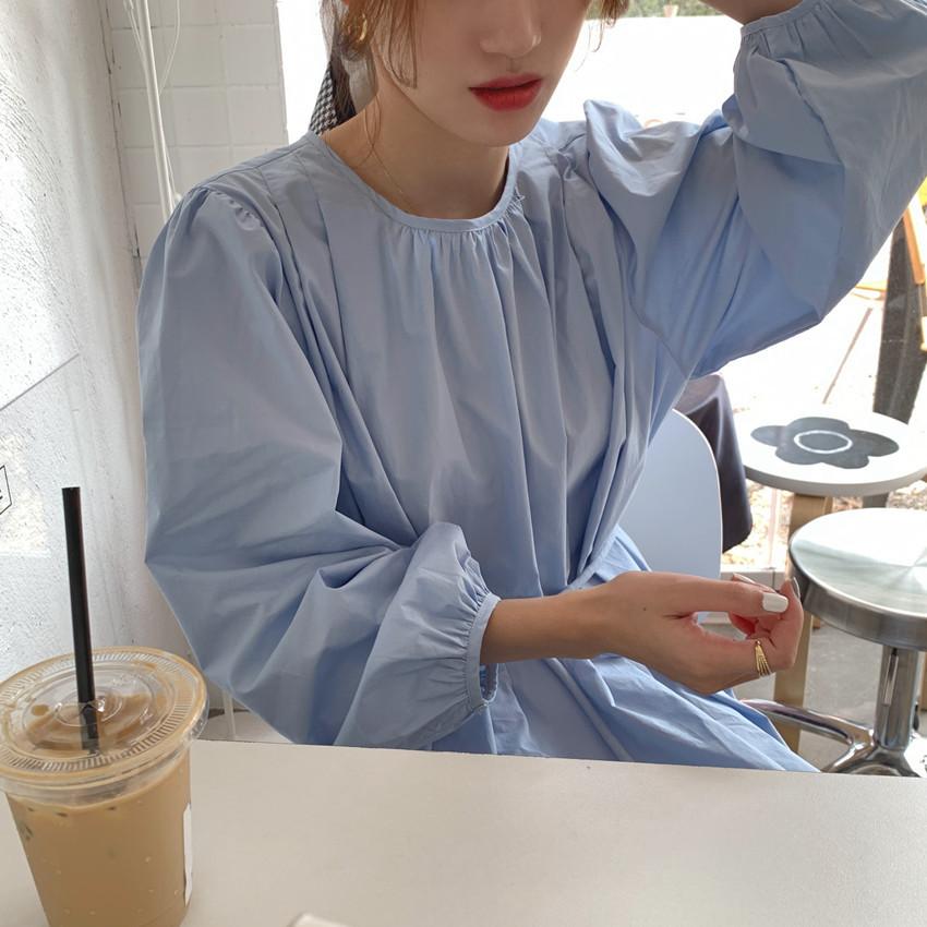 Compre Foto Real 2025 Primavera Novo Estilo Francês Elegante Elegante Suave Azul Leite Retrô Manga Lanterna Vestido Plissado para Mulheres no atacado no Joom.pro