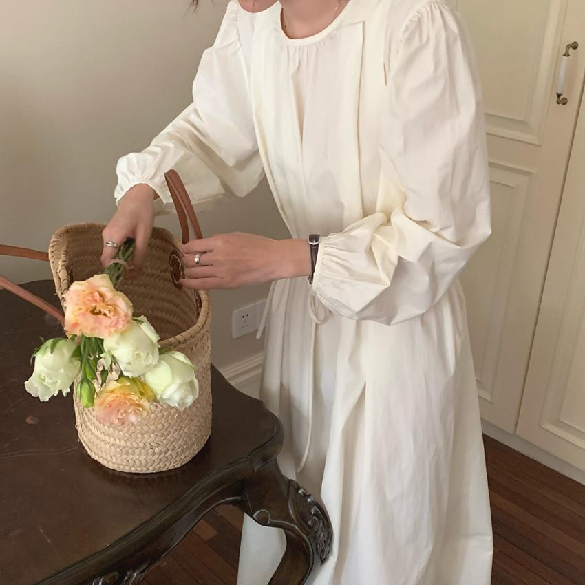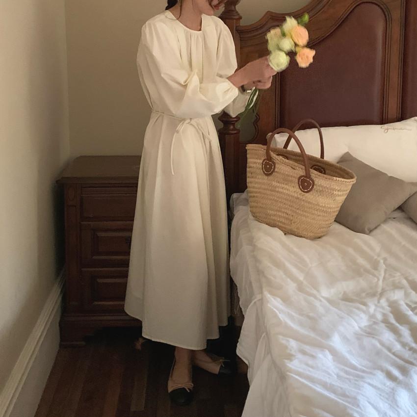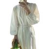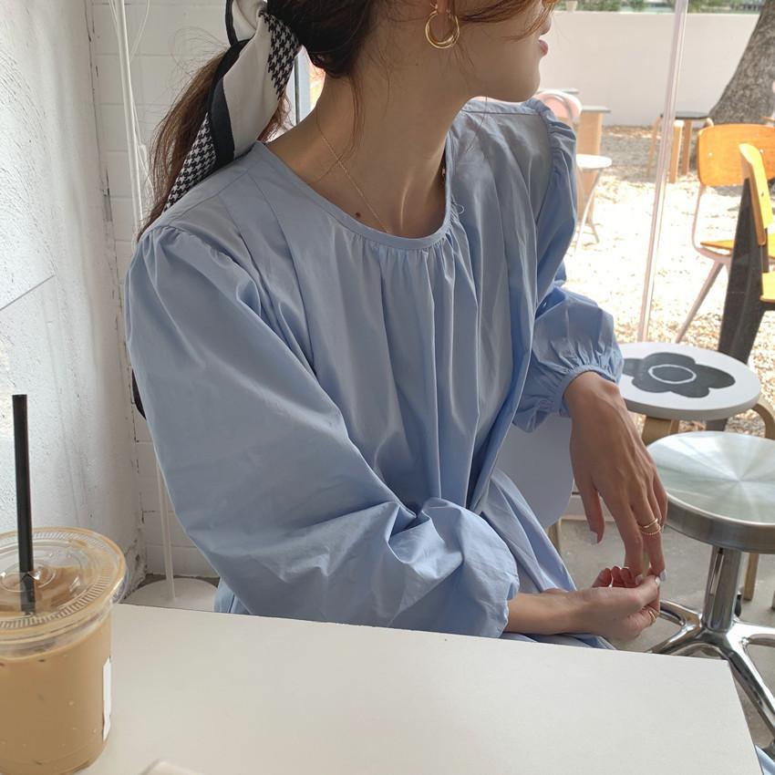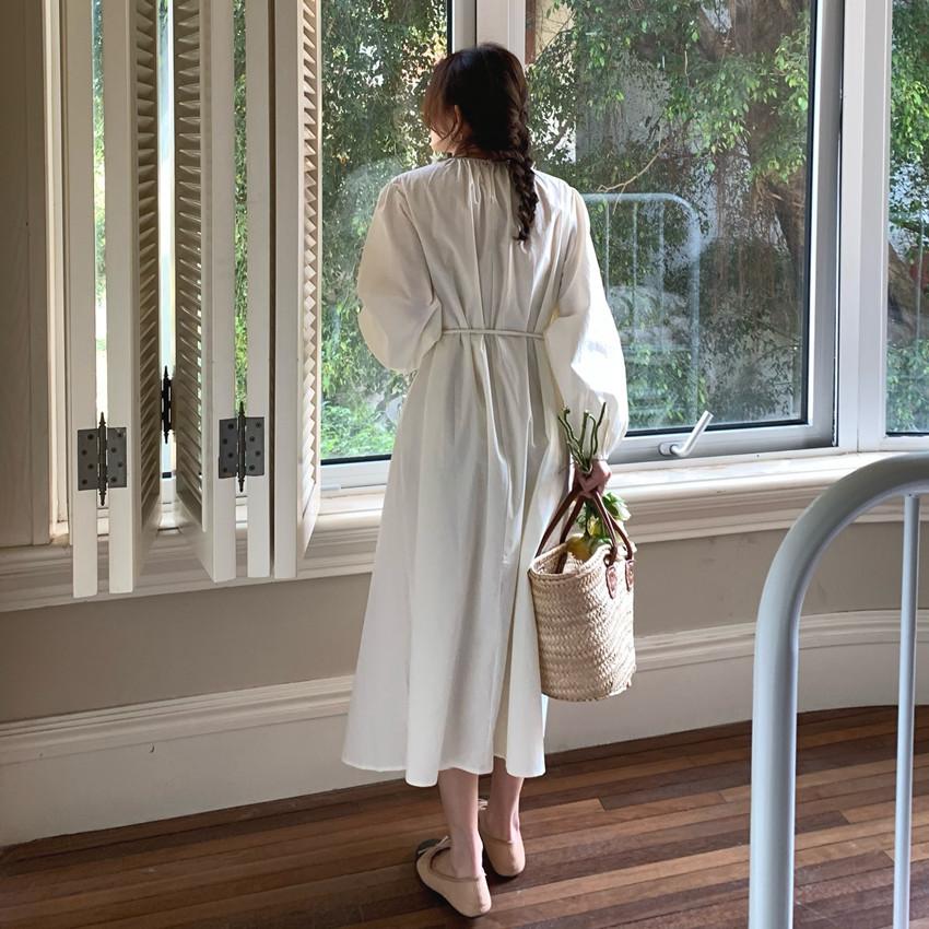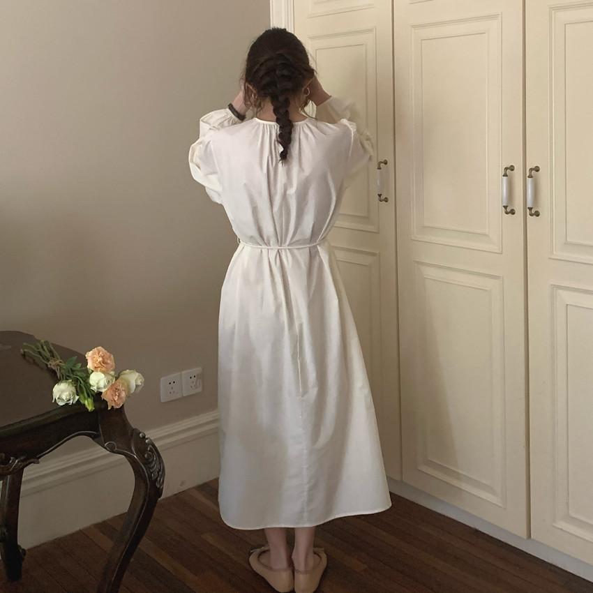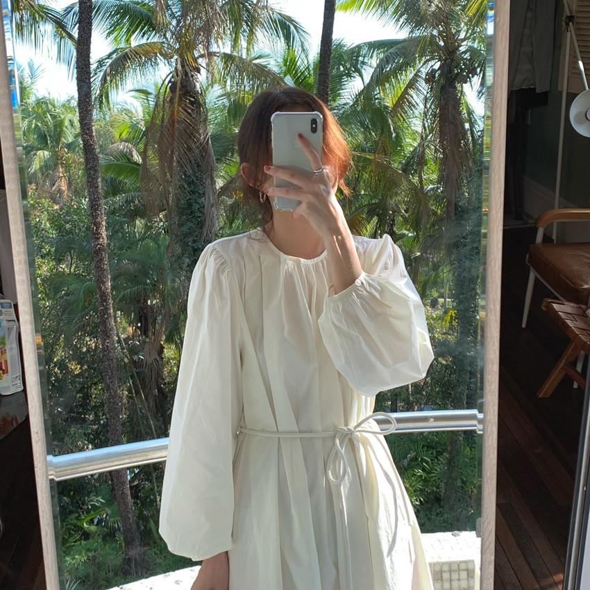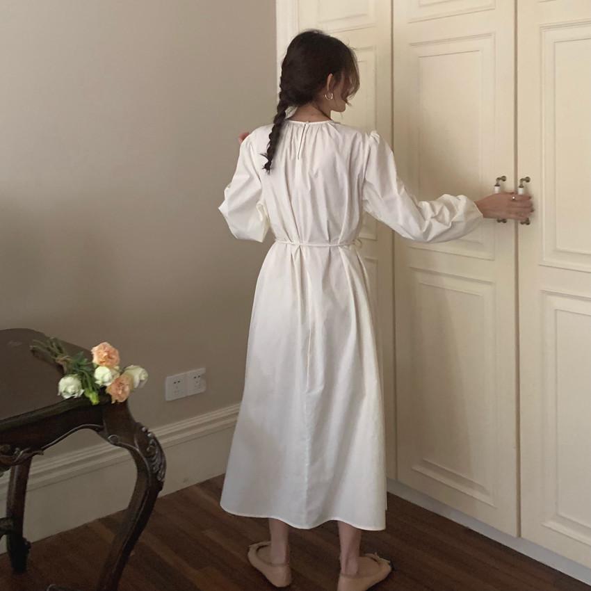 Compre Foto Real 2025 Primavera Novo Estilo Francês Elegante Elegante Suave Azul Leite Retrô Manga Lanterna Vestido Plissado para Mulheres no atacado no Joom.pro