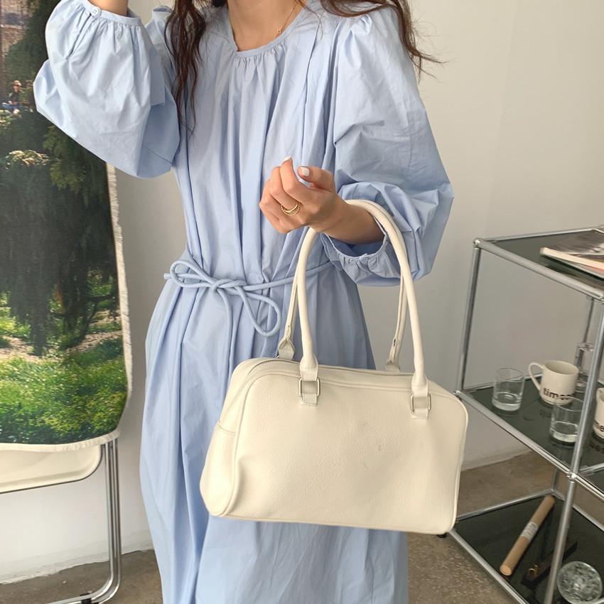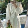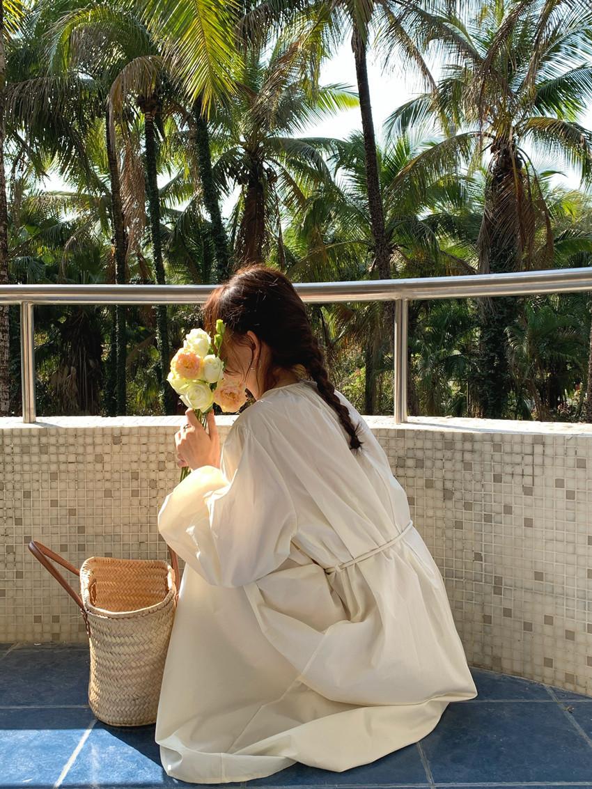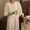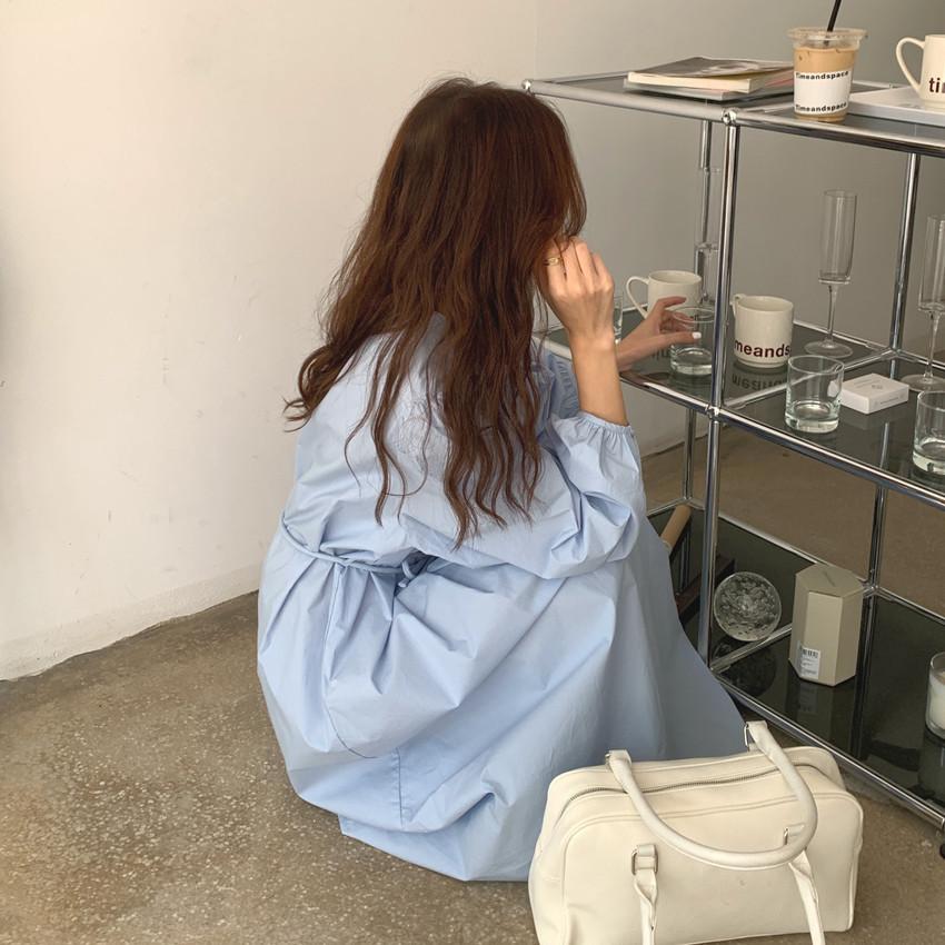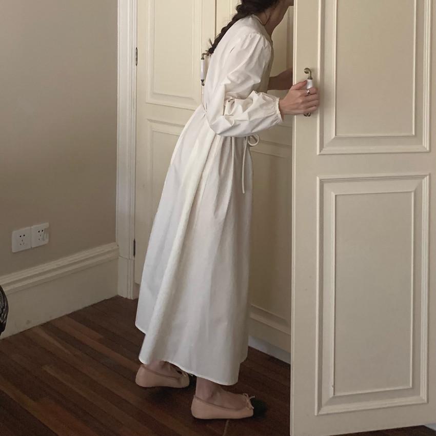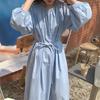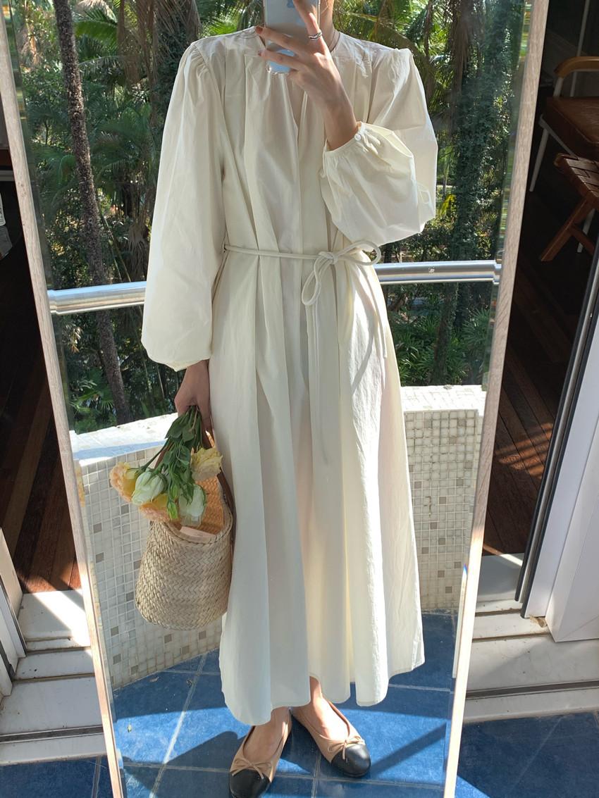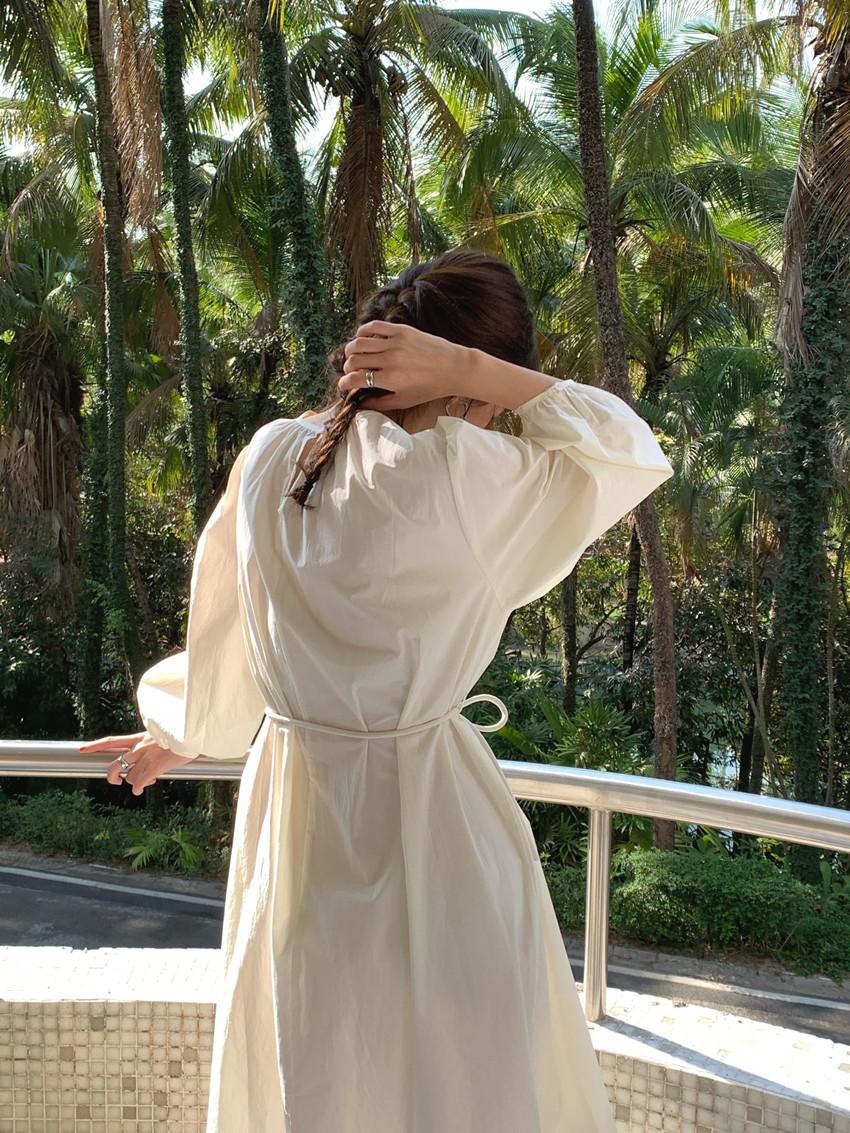 Compre Foto Real 2025 Primavera Novo Estilo Francês Elegante Elegante Suave Azul Leite Retrô Manga Lanterna Vestido Plissado para Mulheres no atacado no Joom.pro