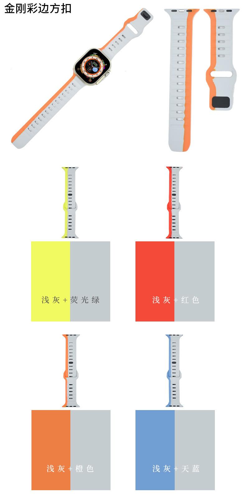 Adequado para Apple Watch Diamond Color Edge Square Buckle Watch Strap Sport Silicone Smart Watch Strap