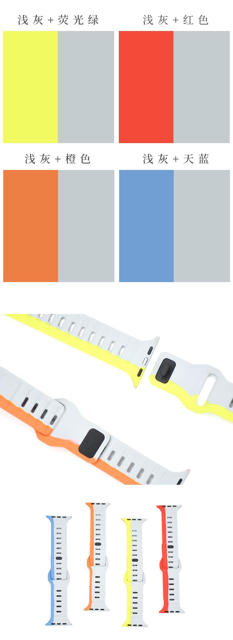Light gray+red, Light gray+orange, Light gray + sky blue, Light gray + fluorescent green