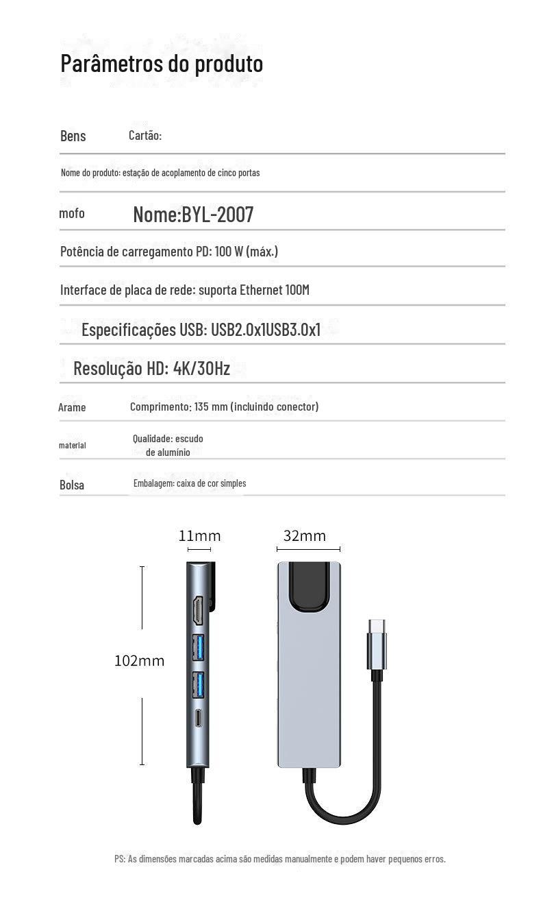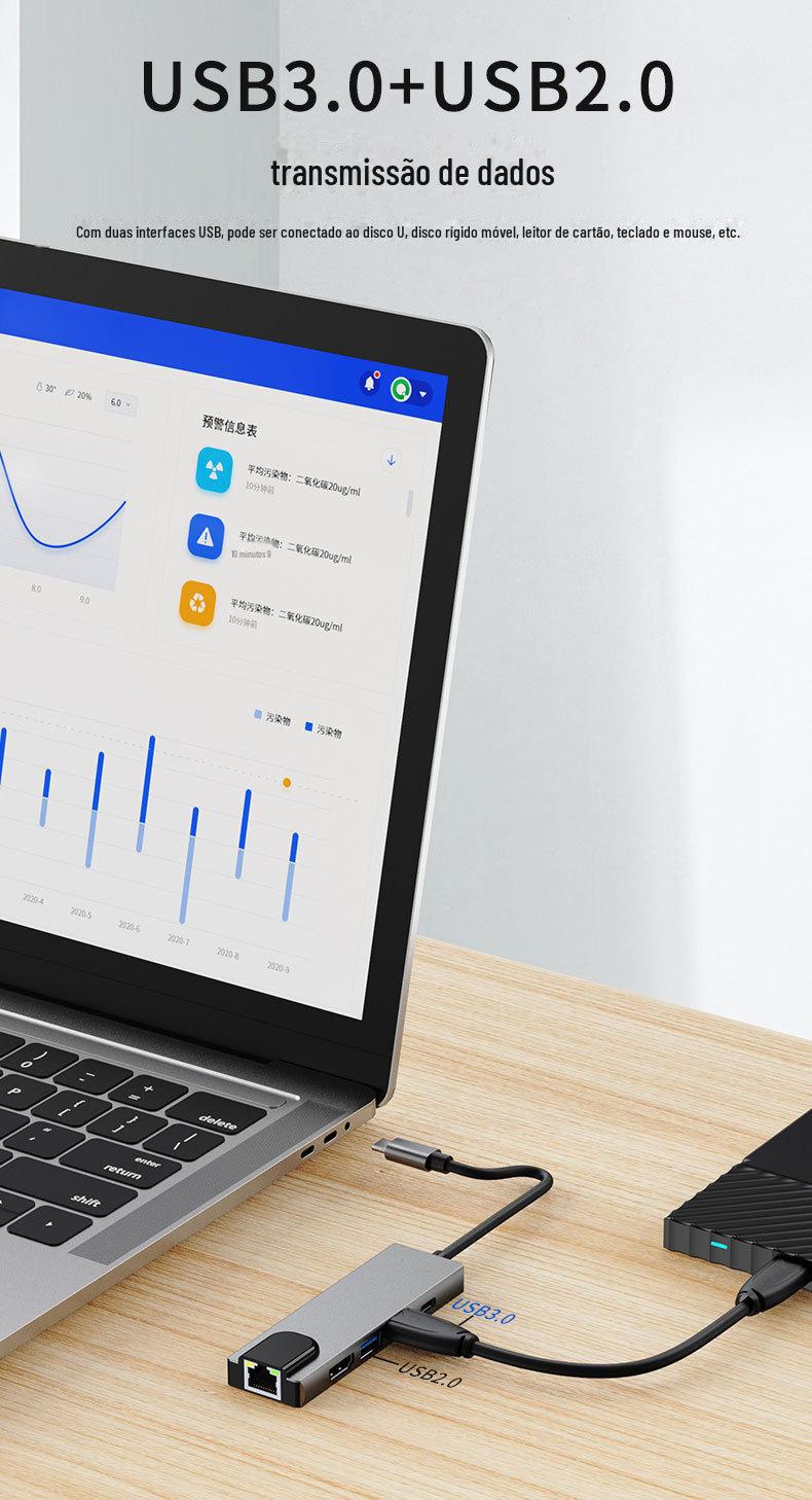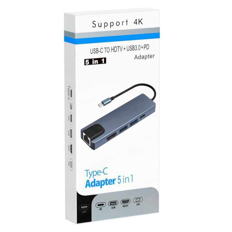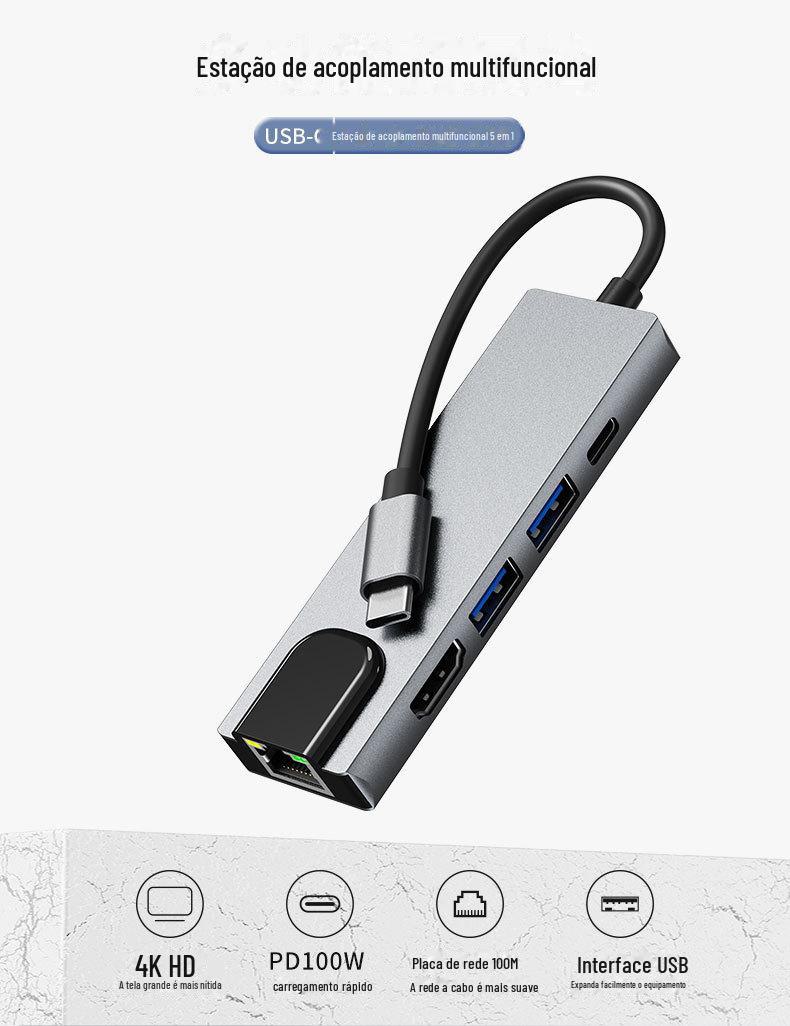 Estação de encaixe cross-border typec usbhub hub + placa de rede é adequada para switch 5 em 1 estação de encaixe 5 em 1