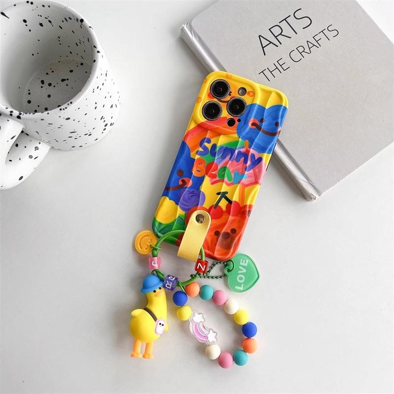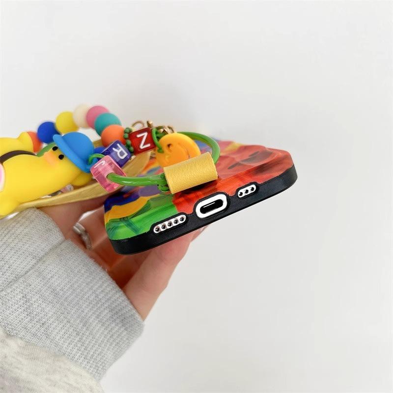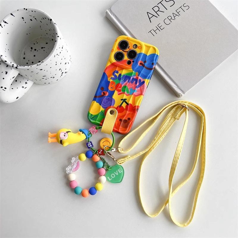 Striped Rainbow Bear Duck Hand Rope Leather Yellow Crossbody Rope, Striped Rainbow Bear Duck Beads Hand Rope, ...