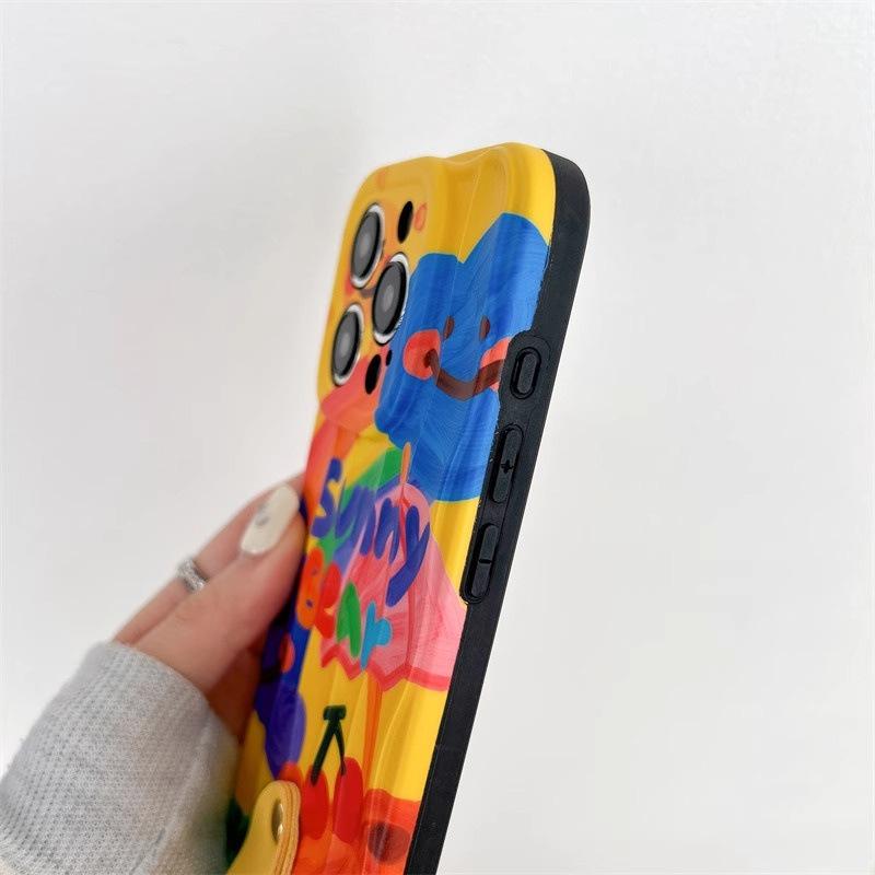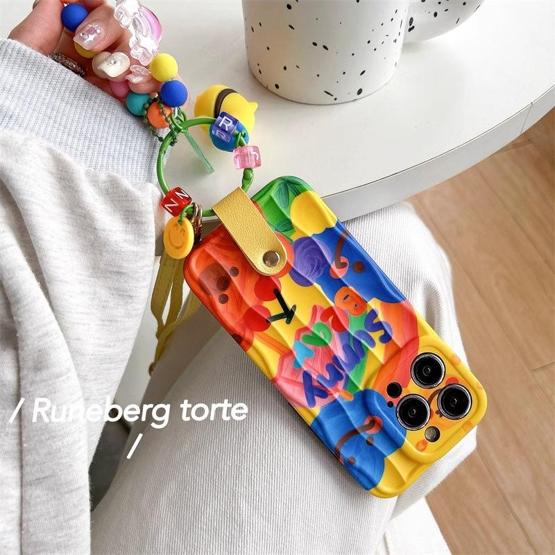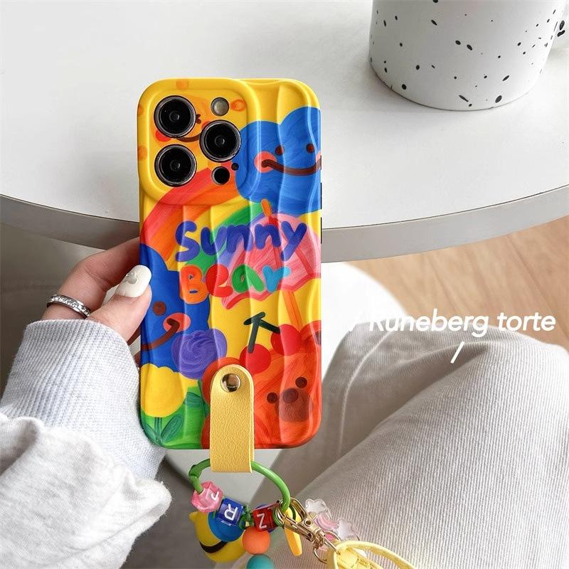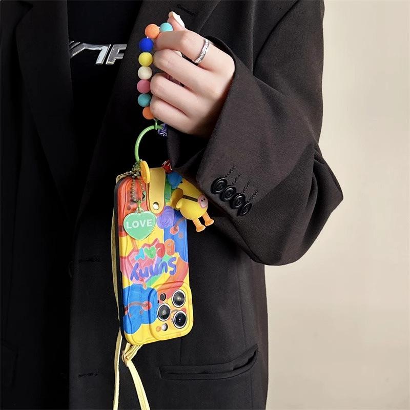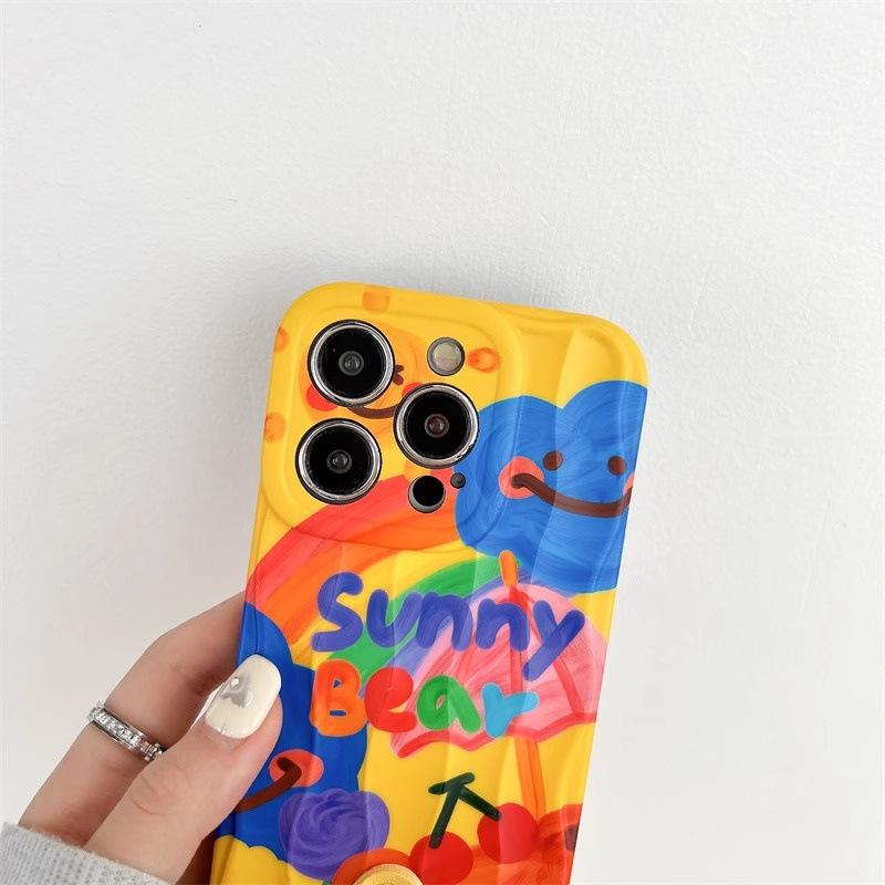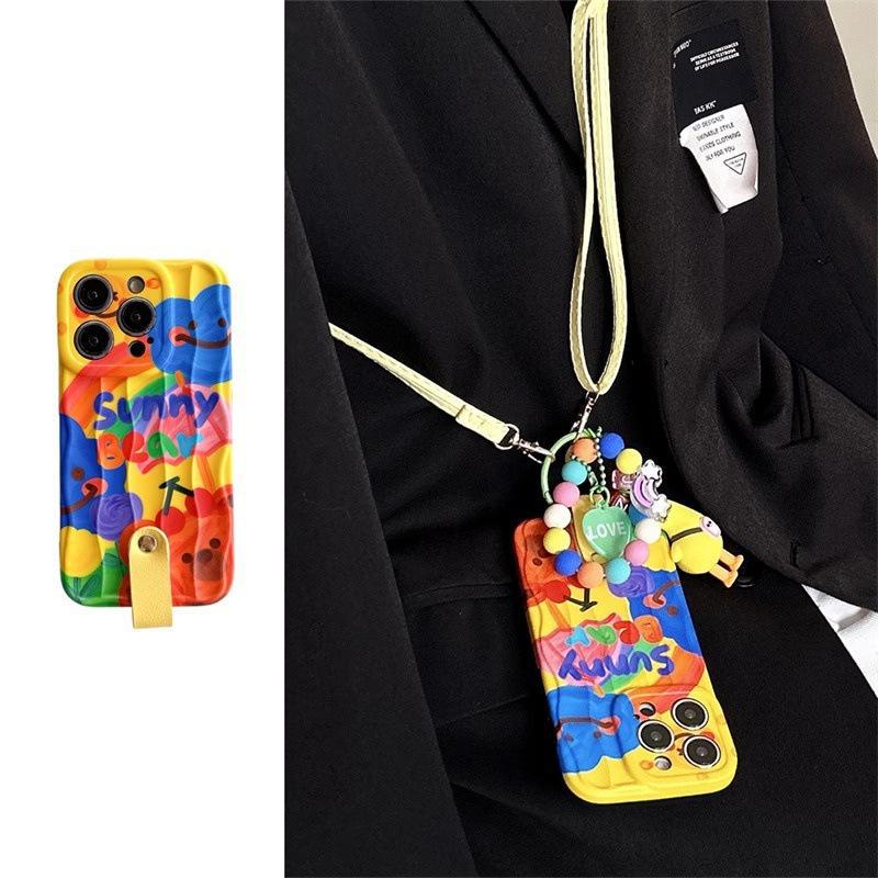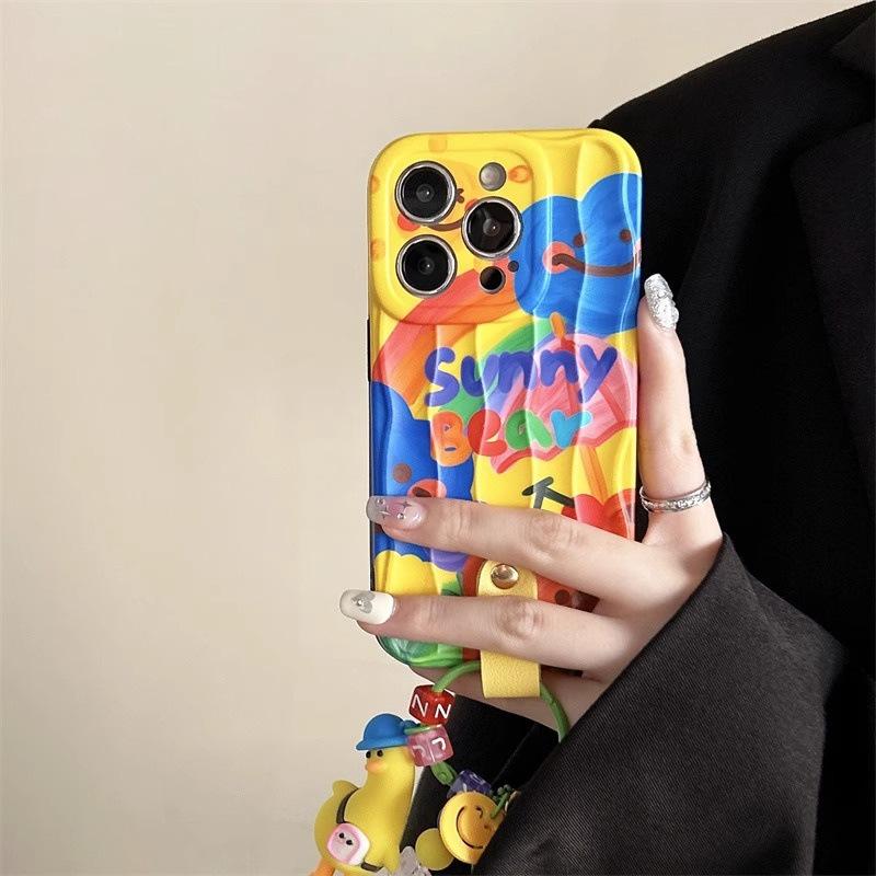 Cartoon Rainbow Bear iPhone15promax Phone Case Apple 14 Pingente Crossbody Strap 13pro Mulheres