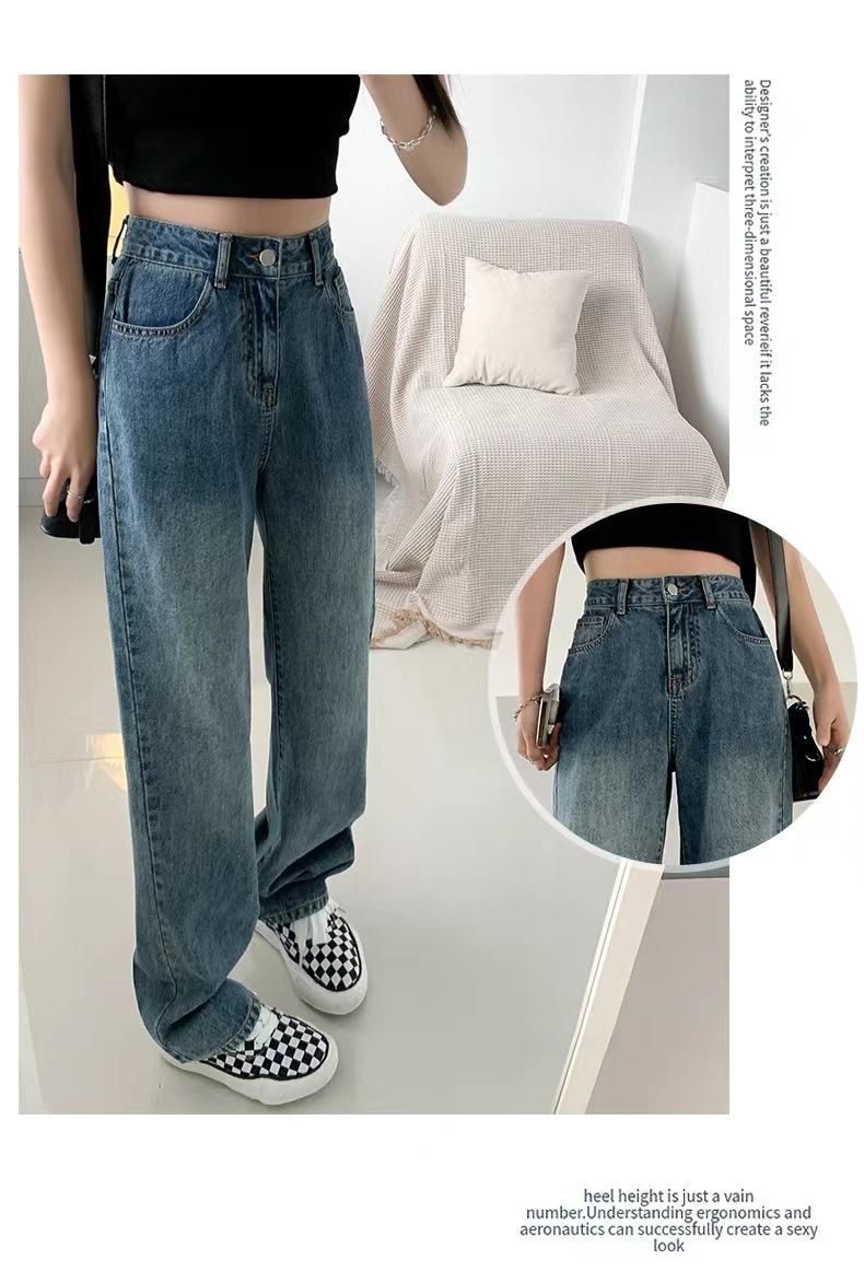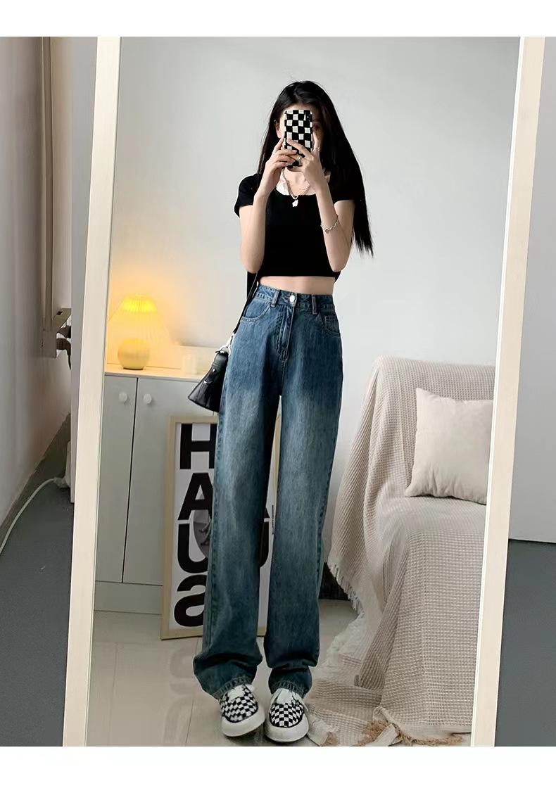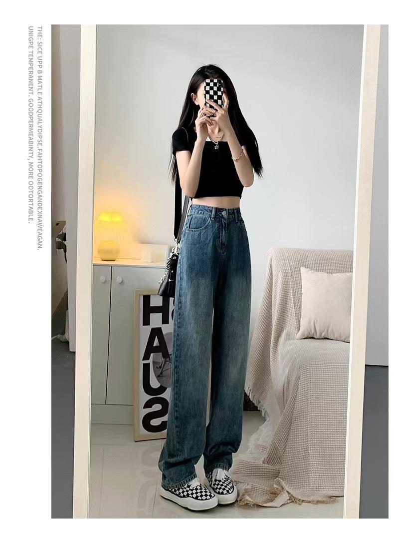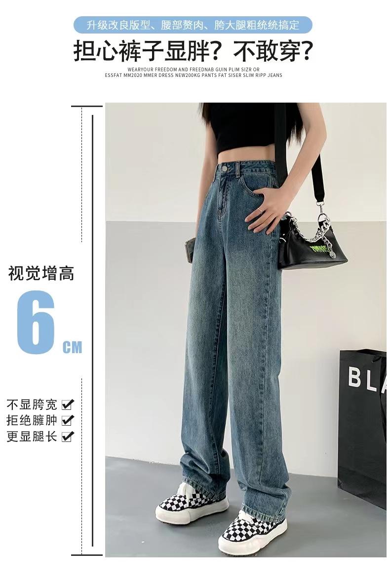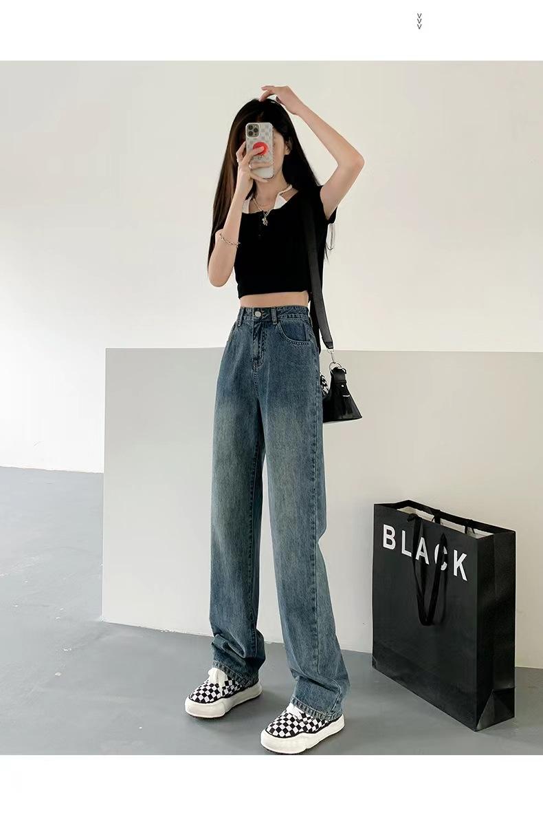 Compre Cintura alta jeans retrô solto perna larga jeans cintura alta feminina 2024 Primavera Nova calça de esfregão reto no atacado no Joom.pro