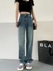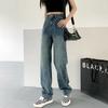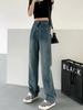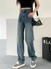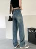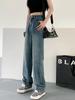 Cintura alta jeans retrô solto perna larga jeans cintura alta feminina 2024 Primavera Nova calça de esfregão reto