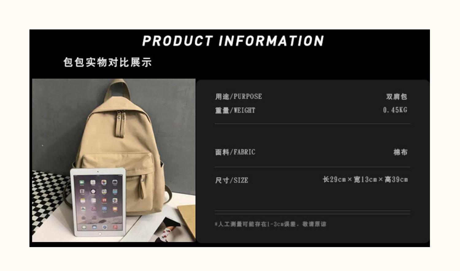 Mochila Feminina All-match Bolsas de grande capacidade Mochila de lona de viagem para estudantes do ensino médio e universitário Leve Schoolbag