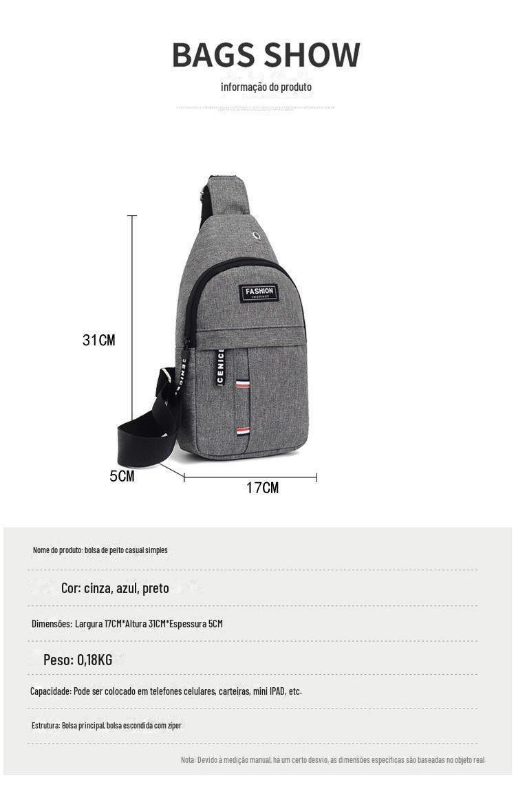 Bolsa de Peito 2025 Nova Tecido de Nylon com Letras Simples Business Casual Masculina Esportiva Juvenil Transversal Moderna Bolsa de Marca Moderna