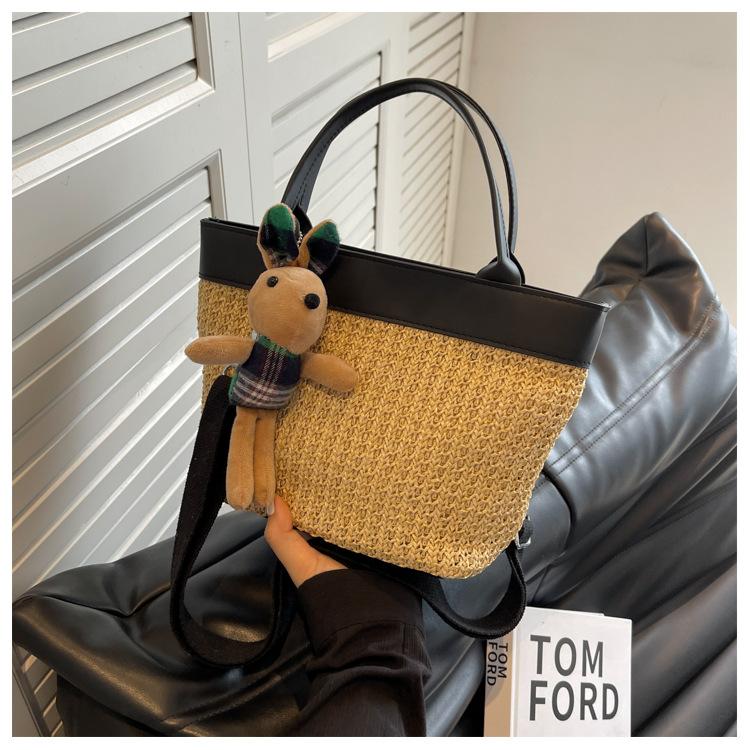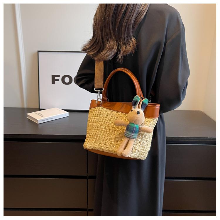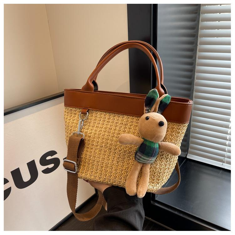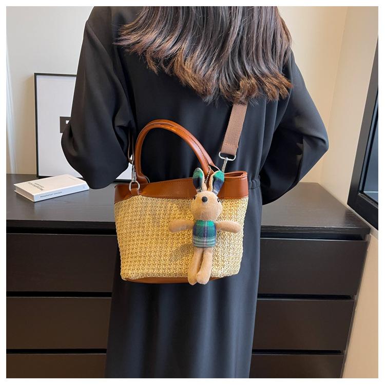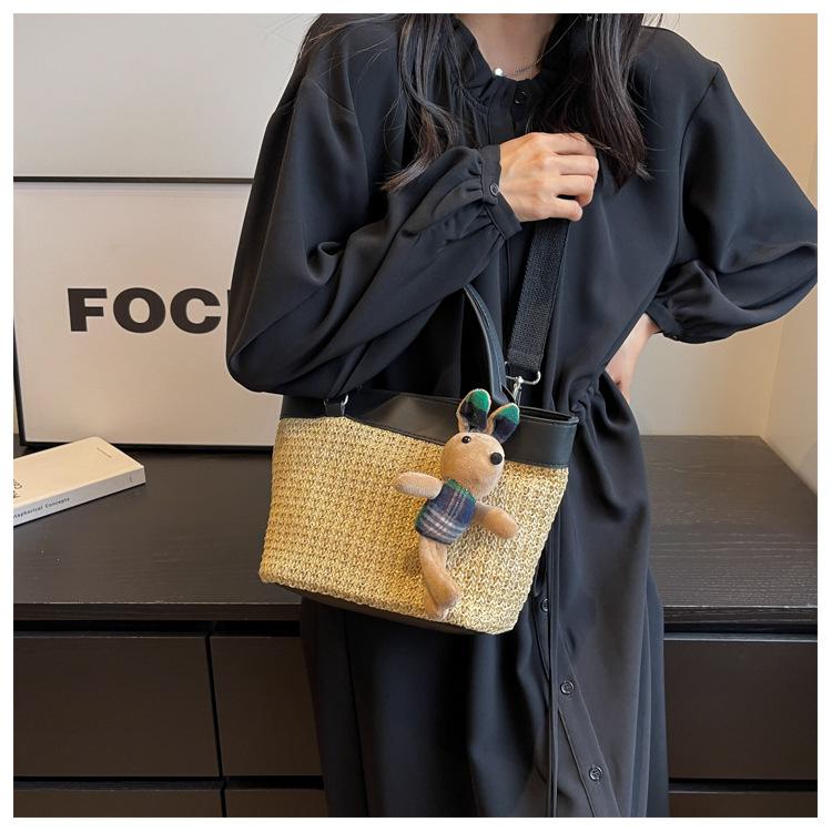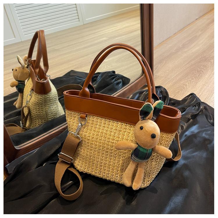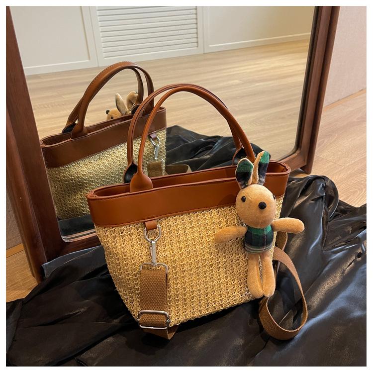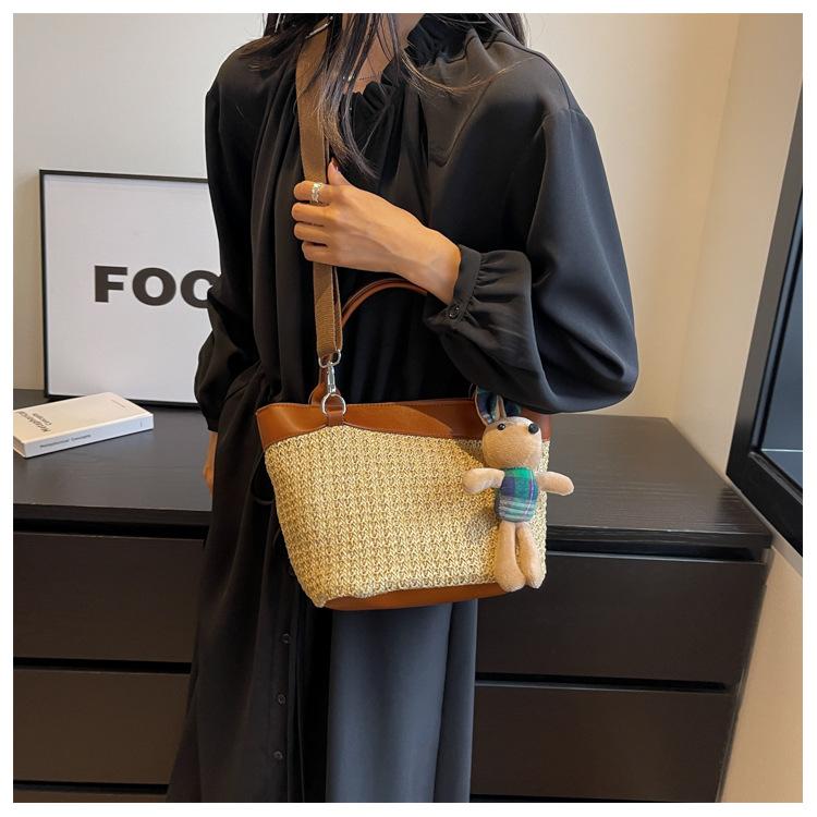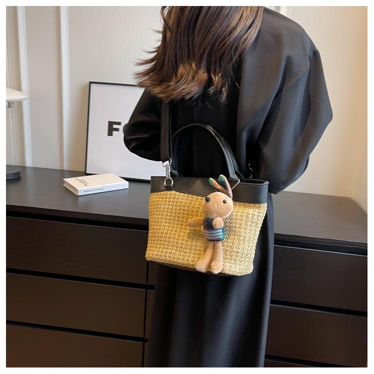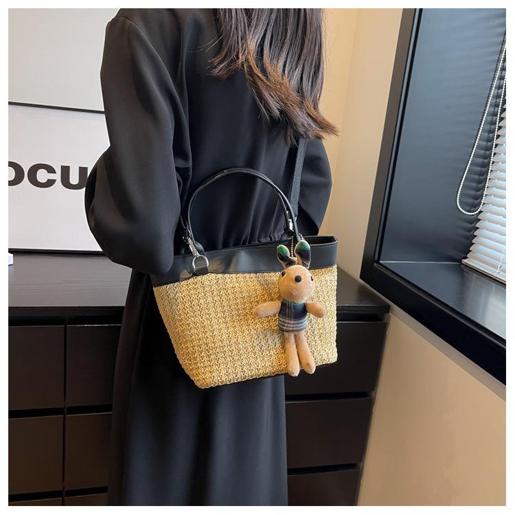 Bolsa de Palha Trançada Feminina Grande Capacidade 2025 Nova Bolsa Transversal de Verão Textura Versátil Bolsa Satchel Bolsa de Praia para Beira-Mar