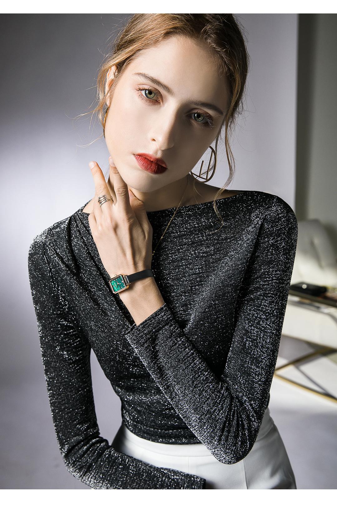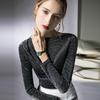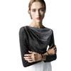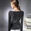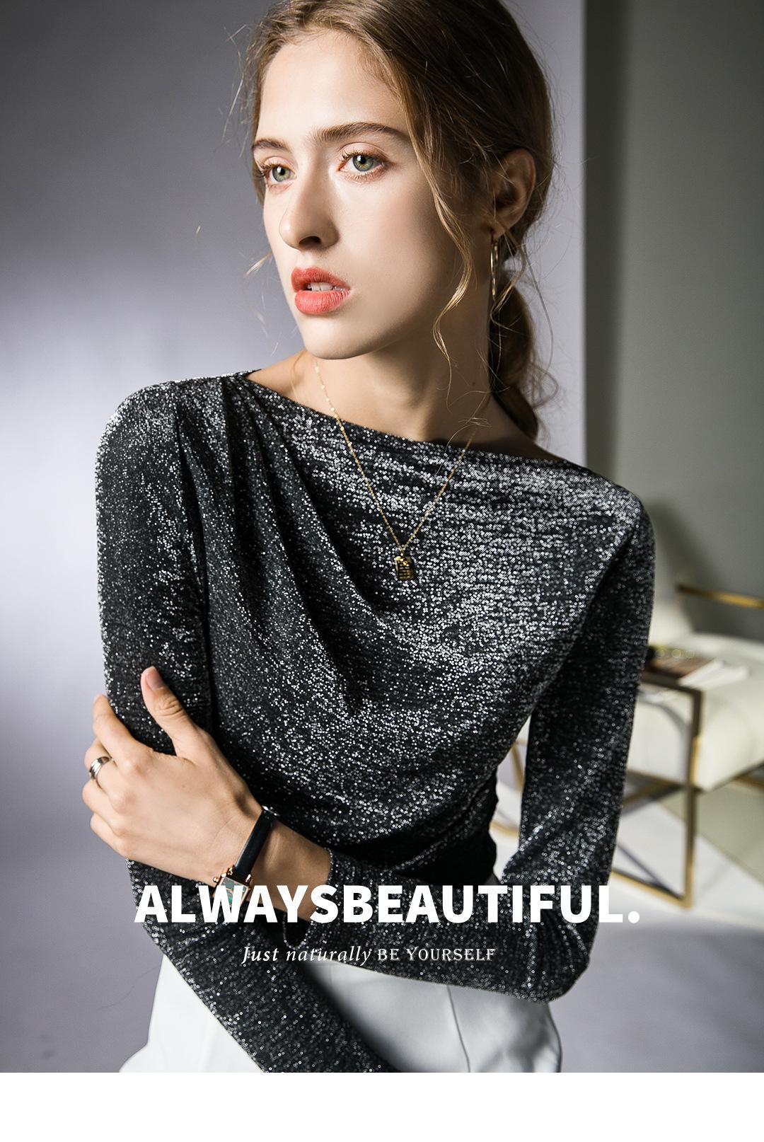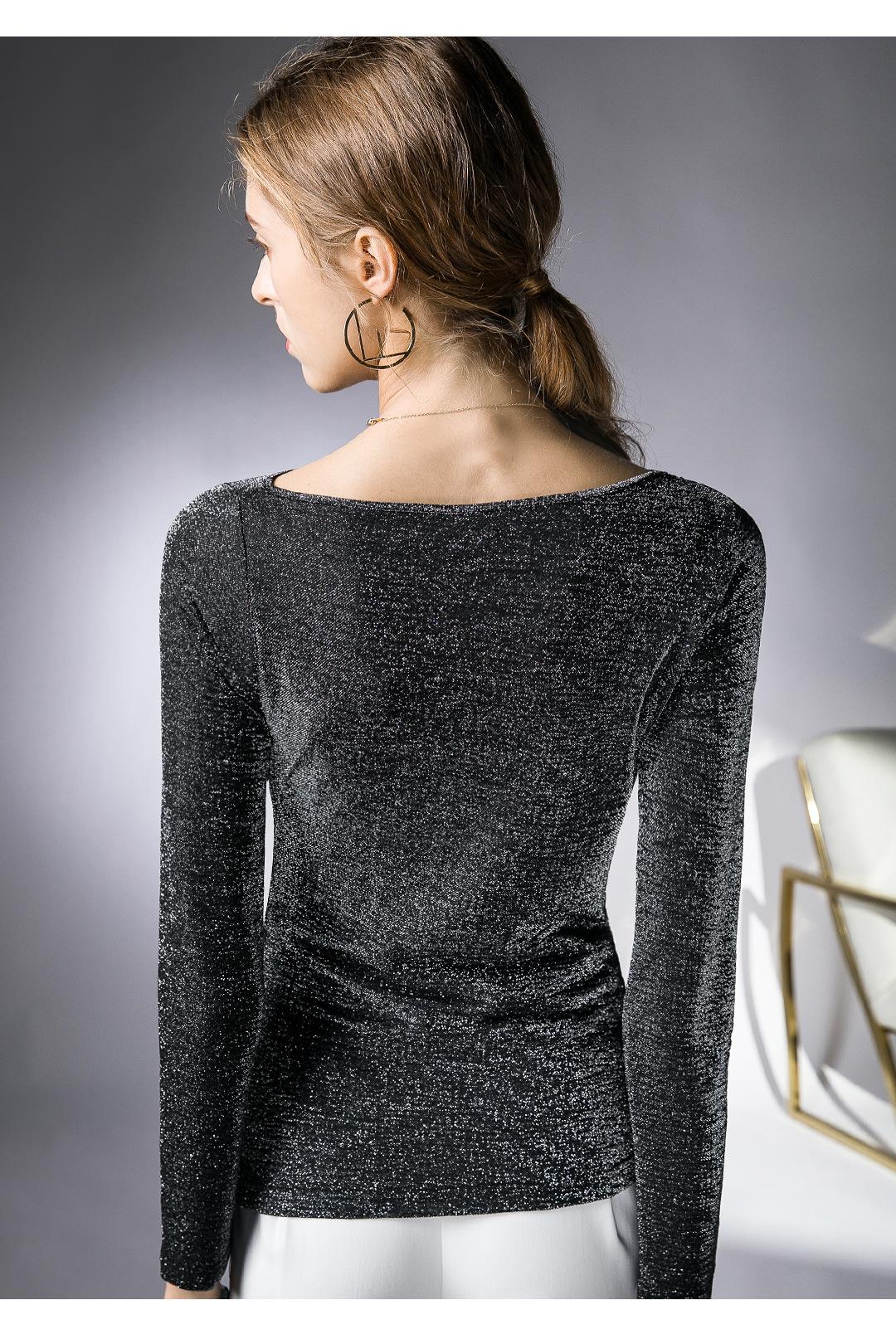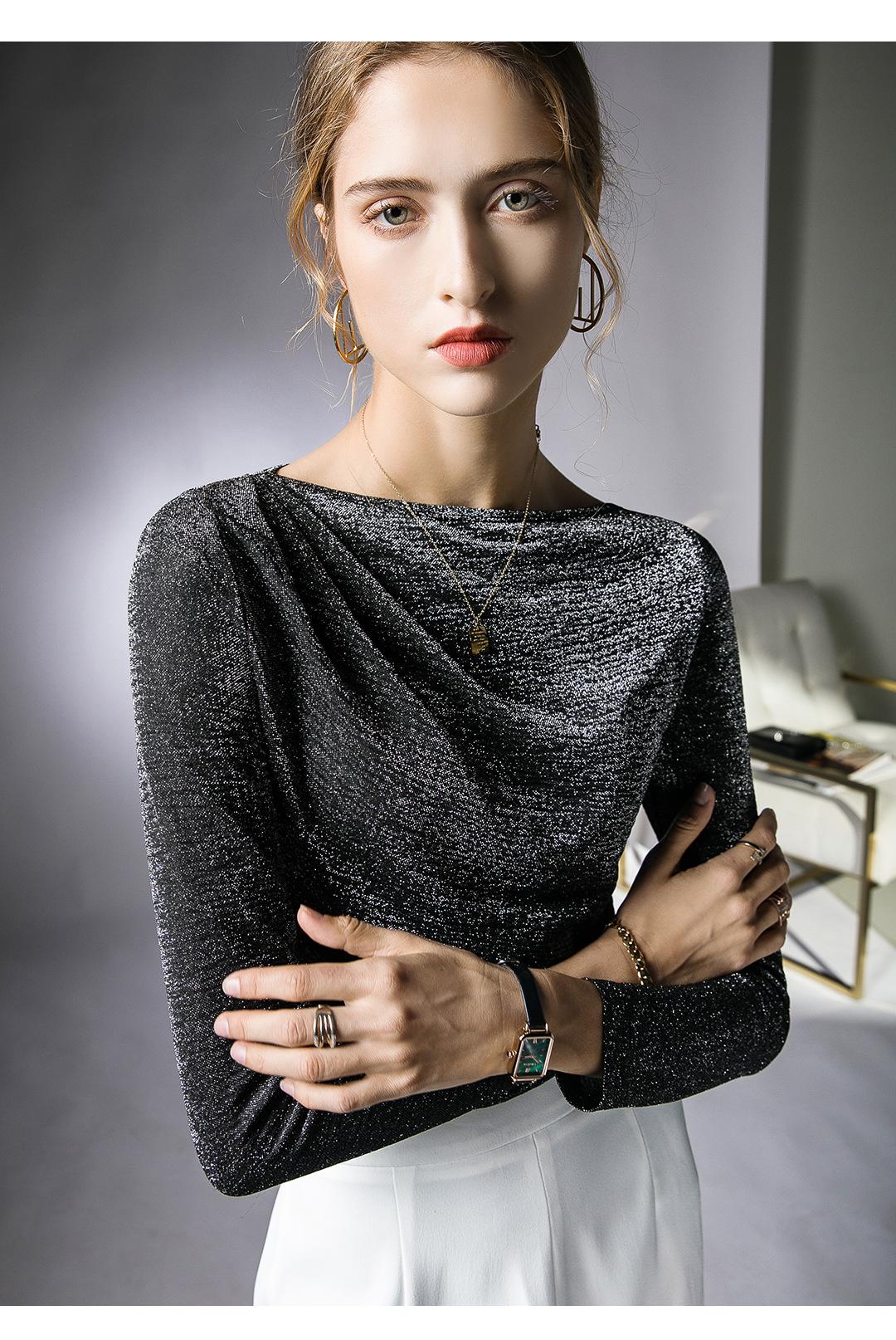T-shirt de seda brilhante de alta qualidade off-neck top outono novo design plissado camisa pequena temperamento emagrecimento camisa inferior
