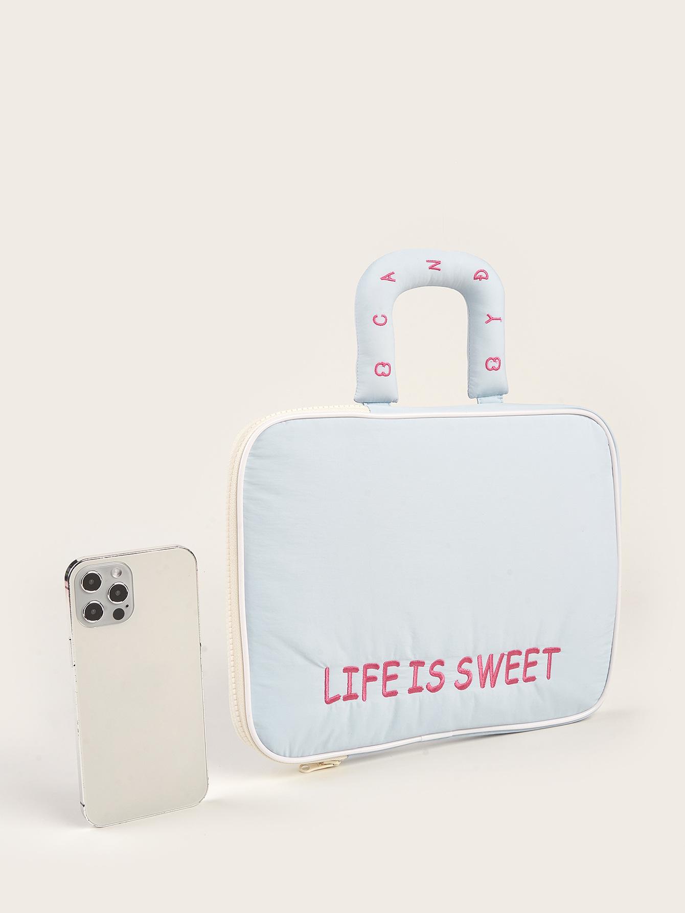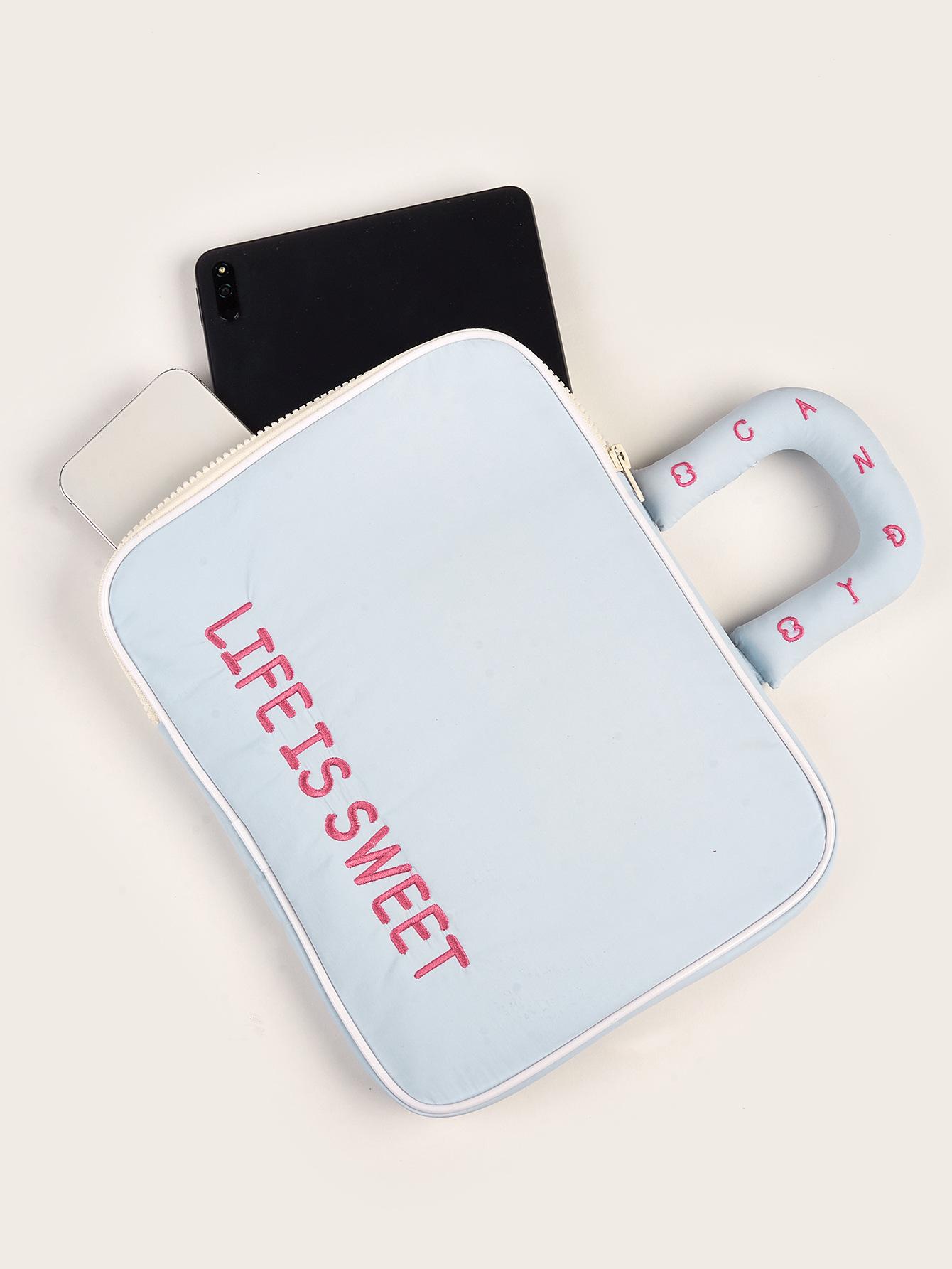 Bolsa de armazenamento portátil para iPad, capa protetora para tablet e notebook, estilo coreano, com letras criativas de alta aparência e enchimento de algodão