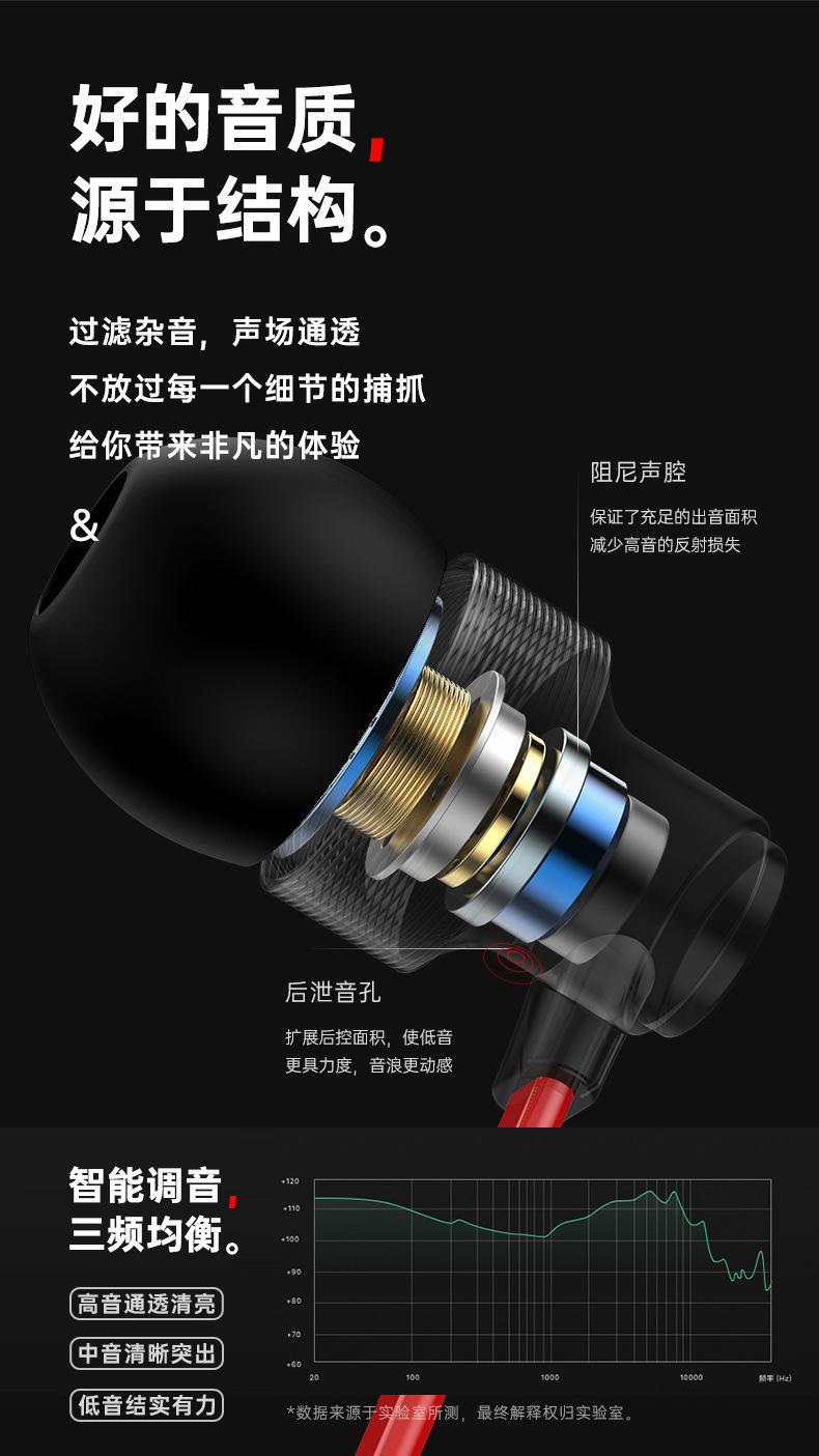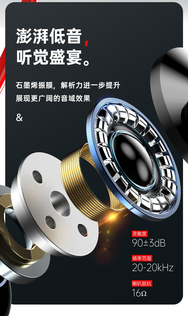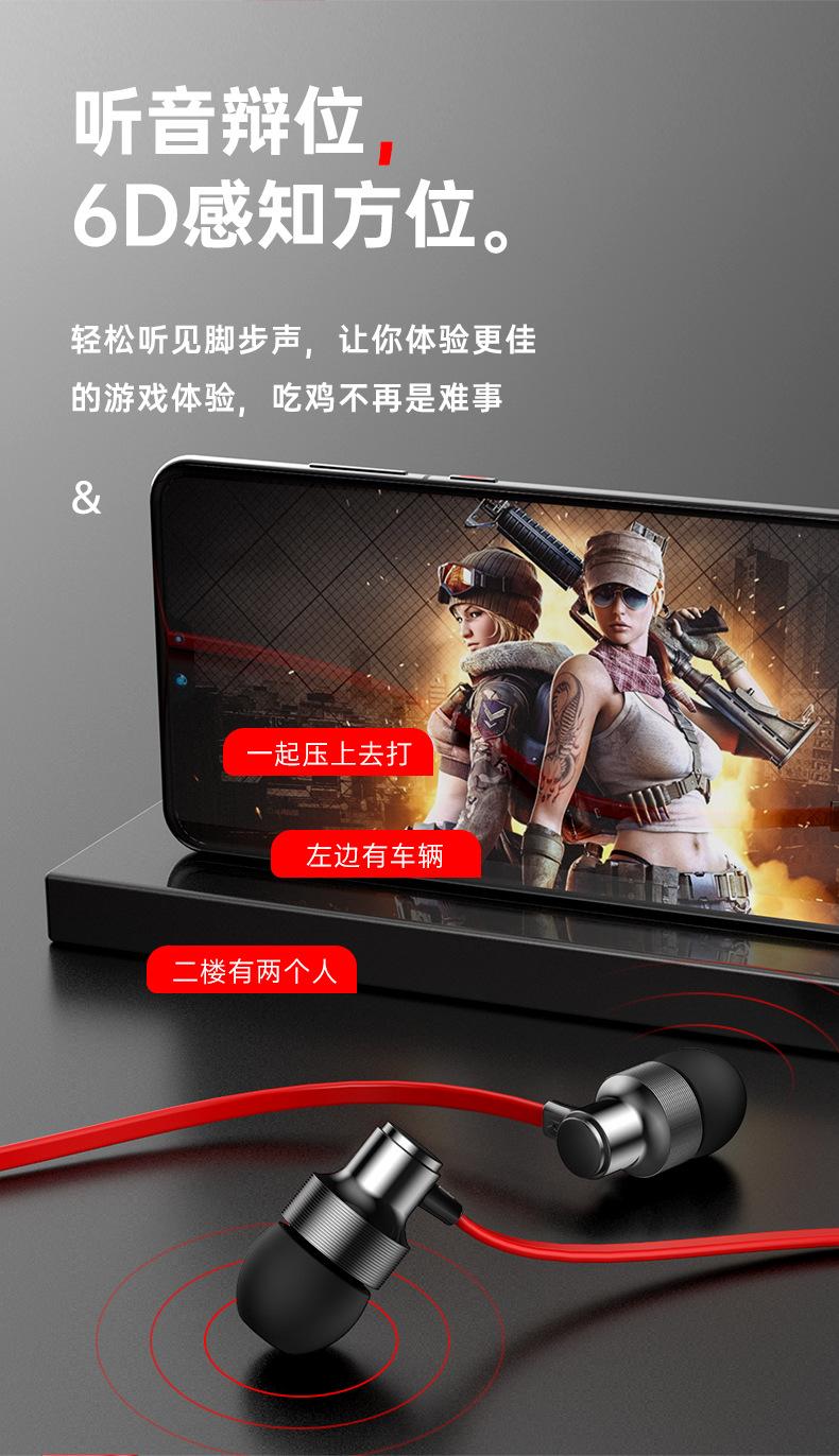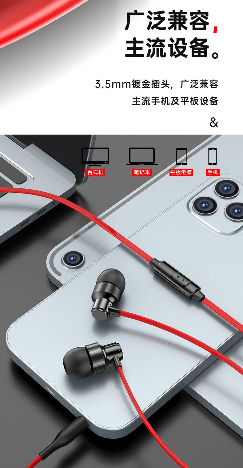 Cross-border metal in-ear Noodle line linha plana telefone móvel fone de ouvido com fio subwoofer karaokê jogo de karaokê controle de fio com microfone