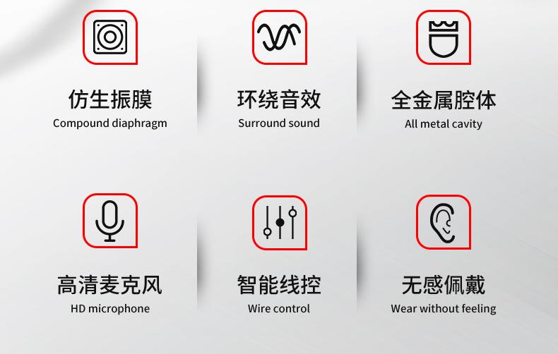 Compre Cross-border metal in-ear Noodle line linha plana telefone móvel fone de ouvido com fio subwoofer karaokê jogo de karaokê controle de fio com microfone no atacado no Joom.pro