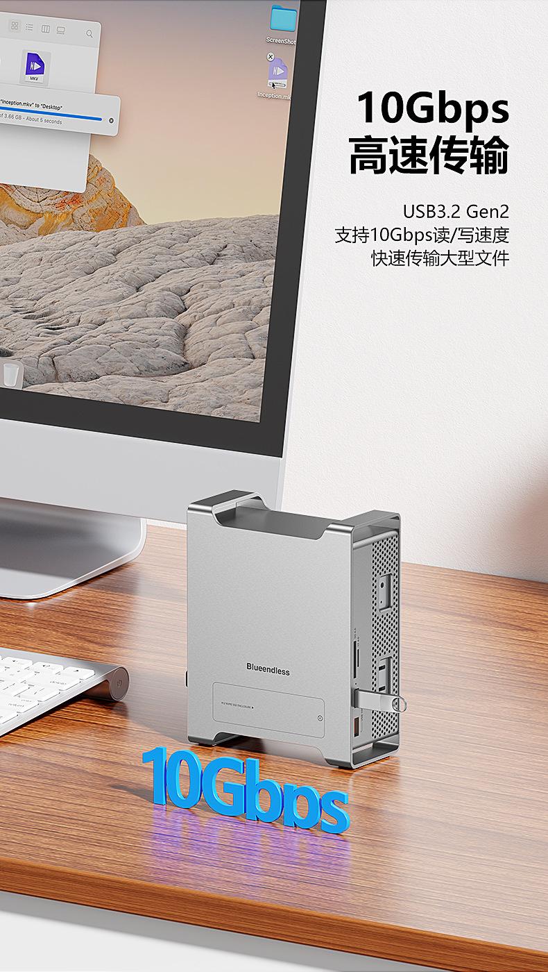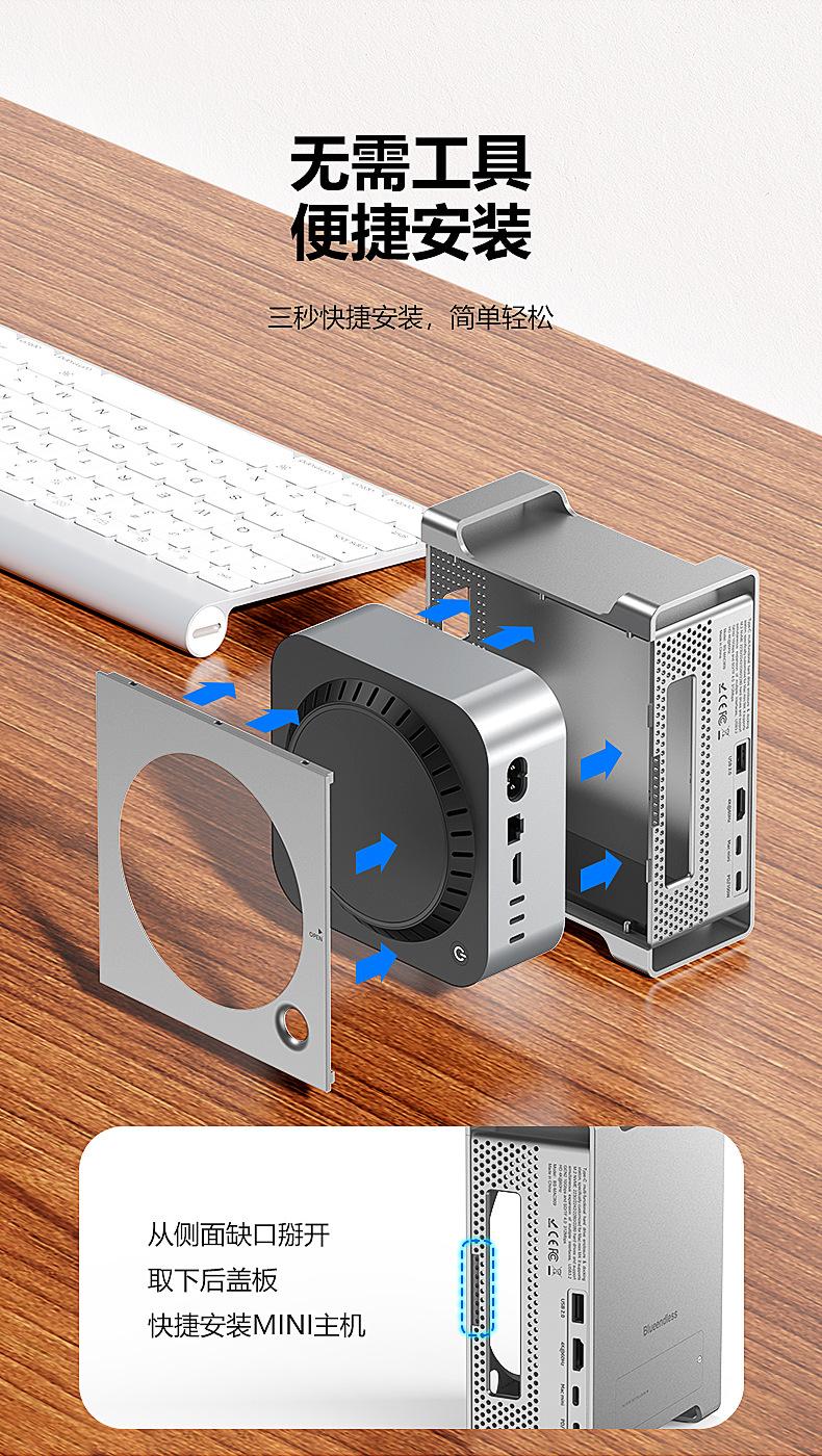 Caixa de Expansão para Disco Rígido Nvme Mac Mini Estação de Acoplamento Type-c Suporte para Chassi M4 Conversor Multifuncional SD4.0