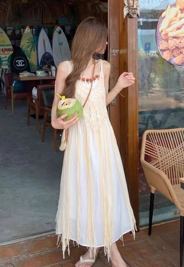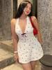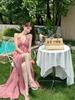 Sling backless chiffon cintura alta doce princesa vestido verão praia sexy vestido roupas femininas