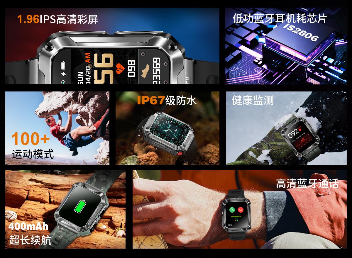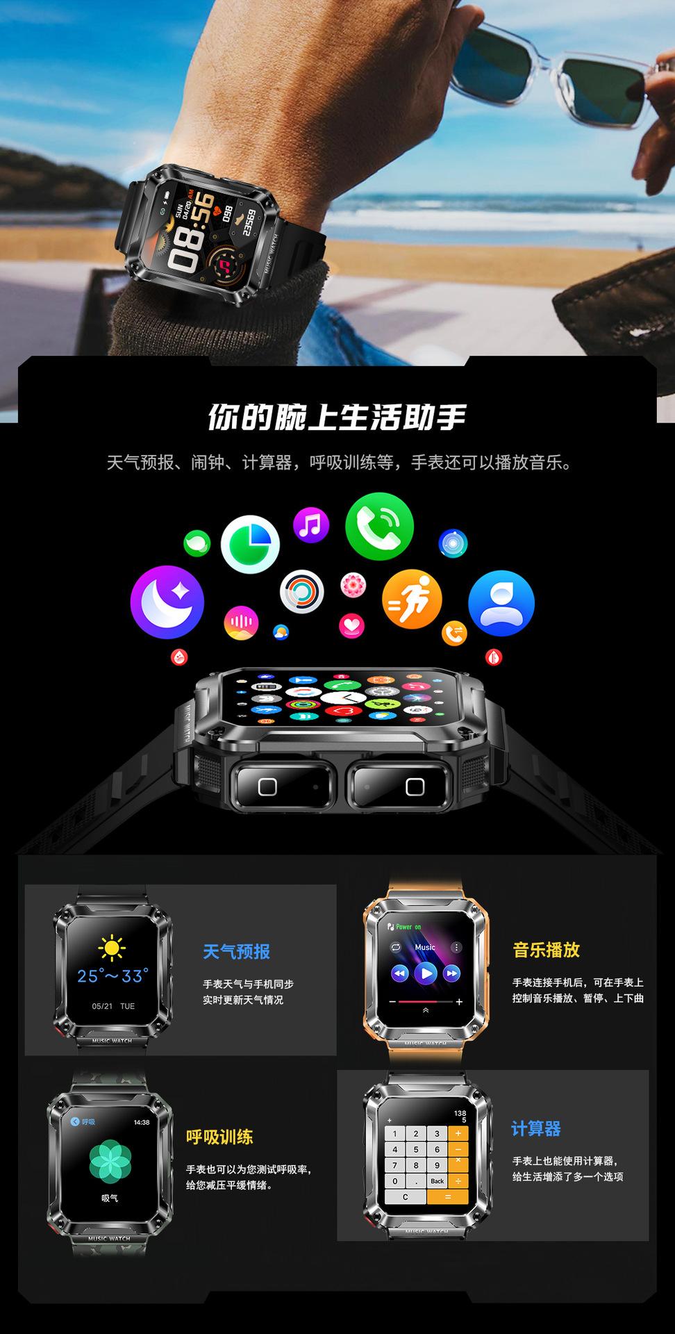 Blood pressure measurement, Social Entertainment, Bluetooth call, NFC function, Smart Reminder, Remote control...