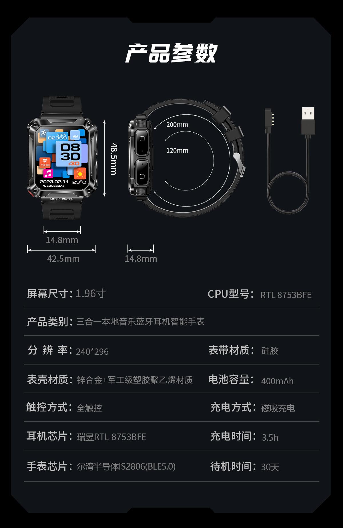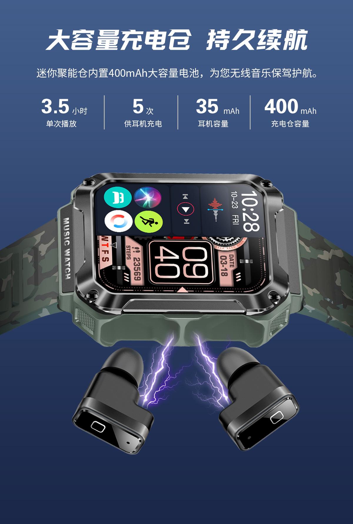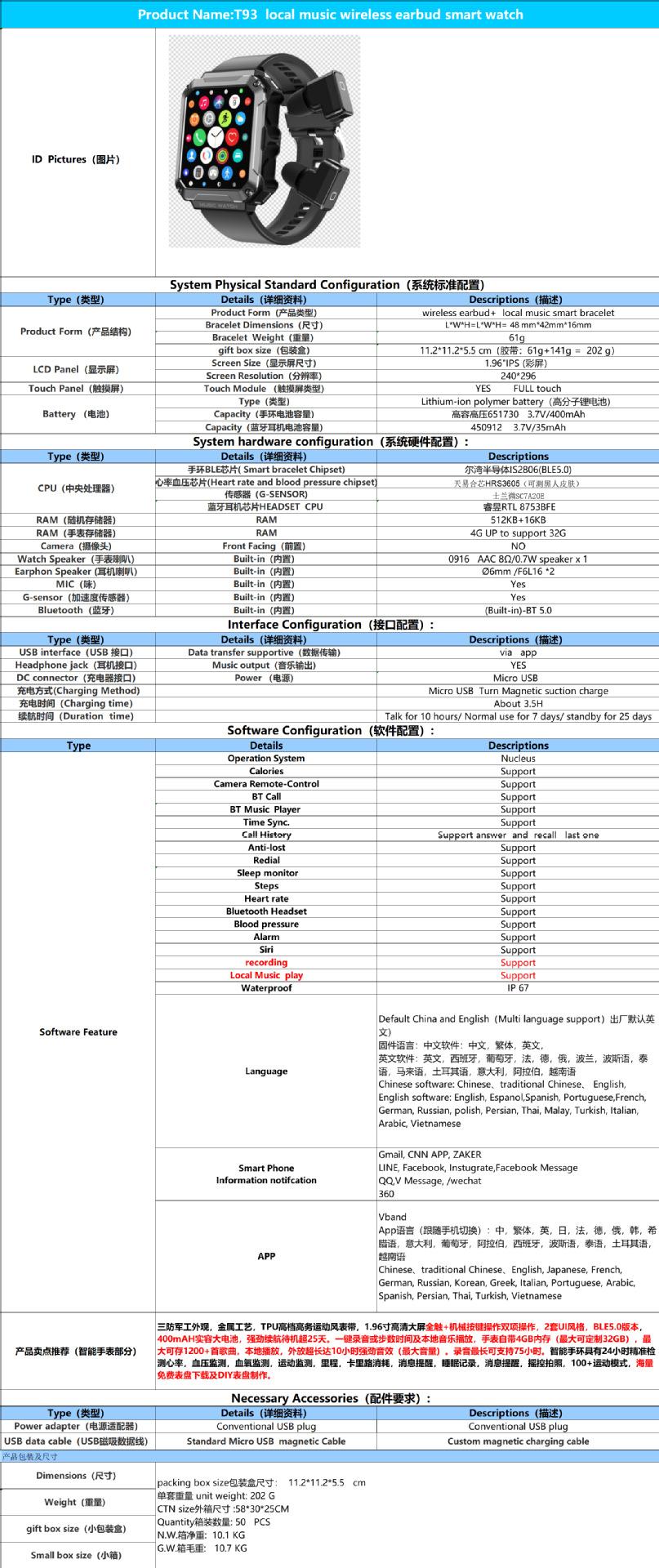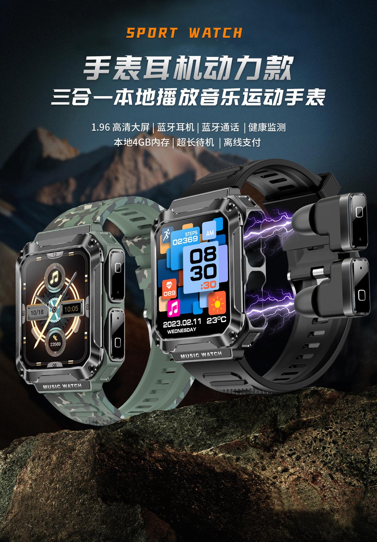 T93 relógio inteligente novo três à prova dois-em-um fone de ouvido Bluetooth gravação de chamadas de saúde monitoramento exercício medidor de passo
