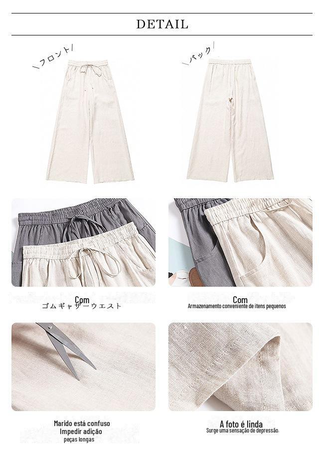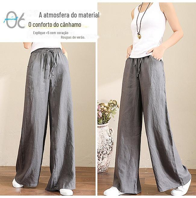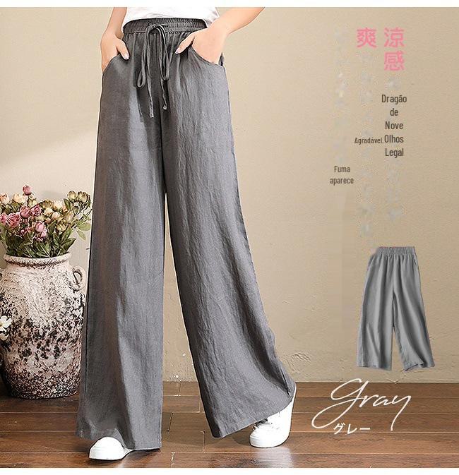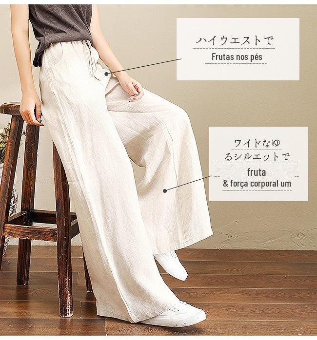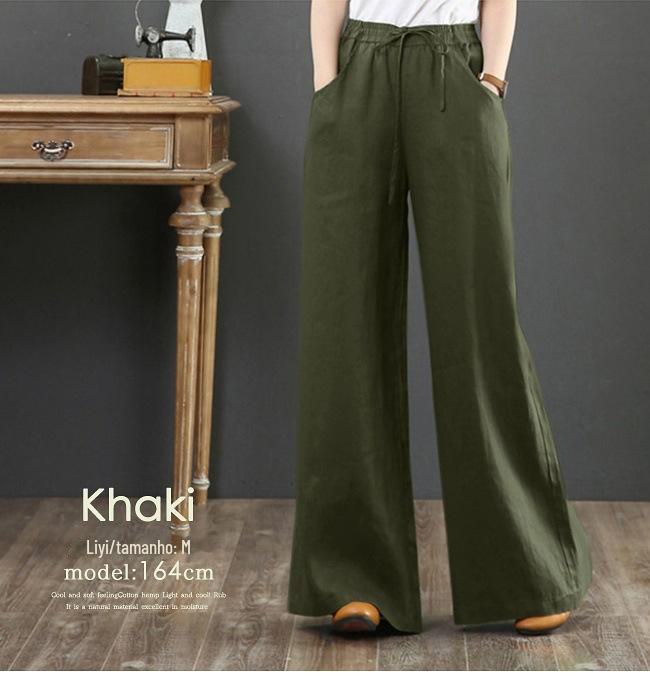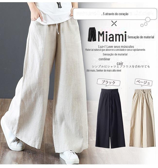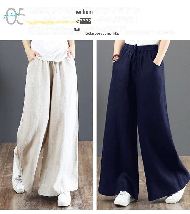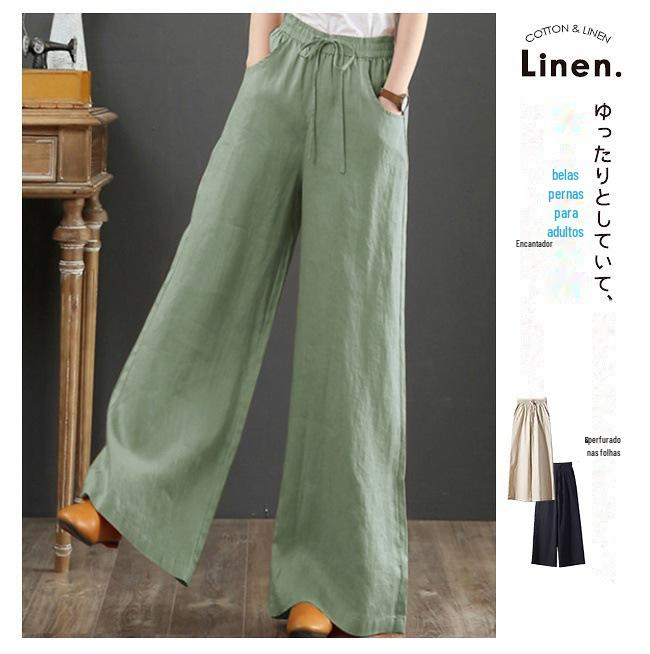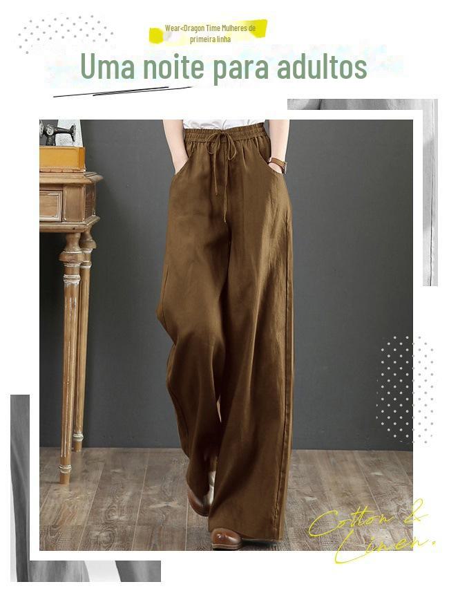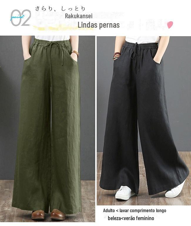 Calças largas de algodão e linho coreanas, primavera e verão, tamanho grande, calças de cintura alta, calças retas, calças femininas casuais de linho