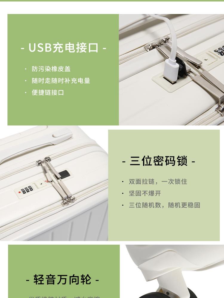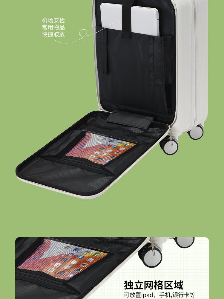 Multi-funcional Internet celebridade abertura frontal bagagem bagagem de roda universal 20 polegadas caixa de embarque caixa de interface de carregamento USB